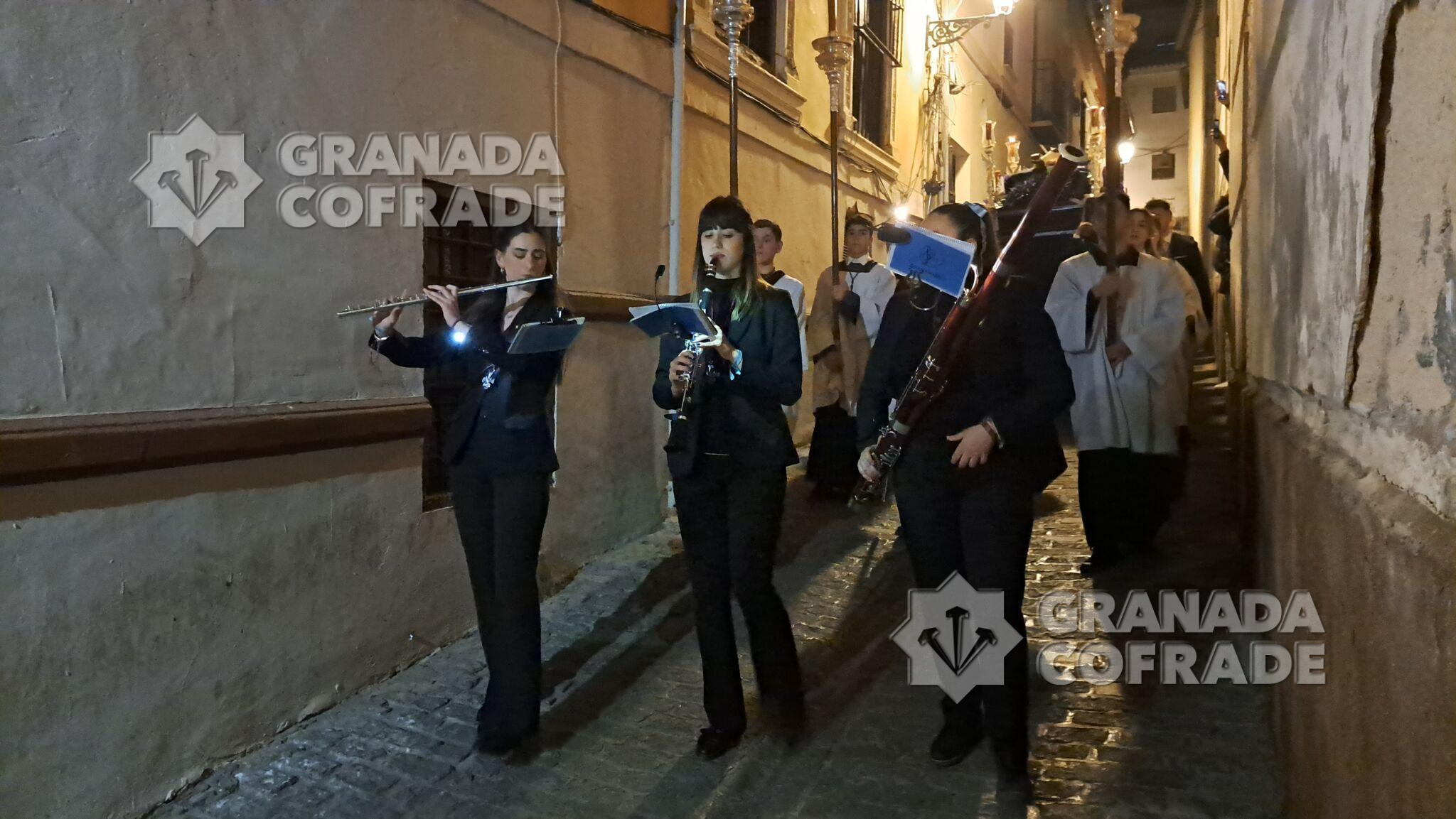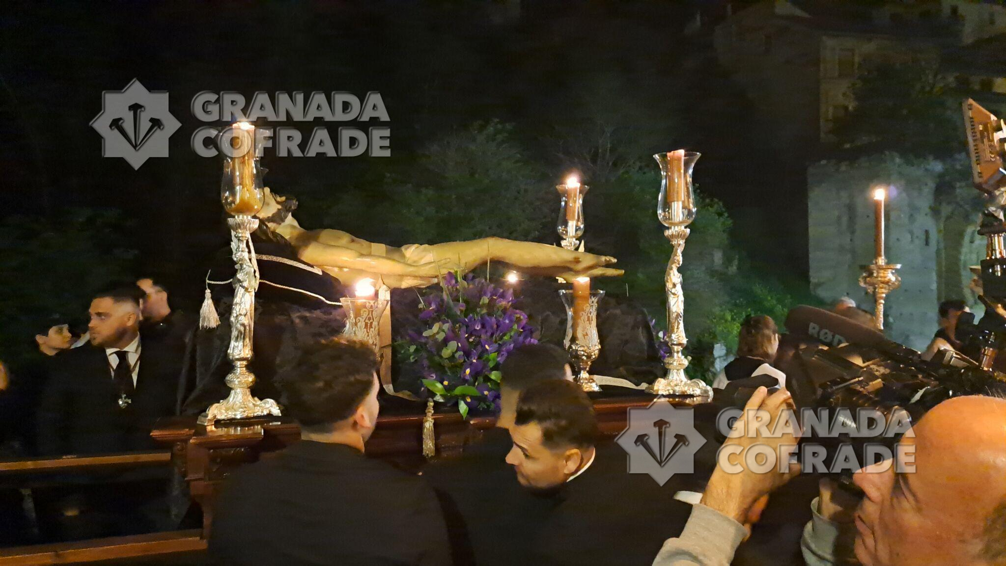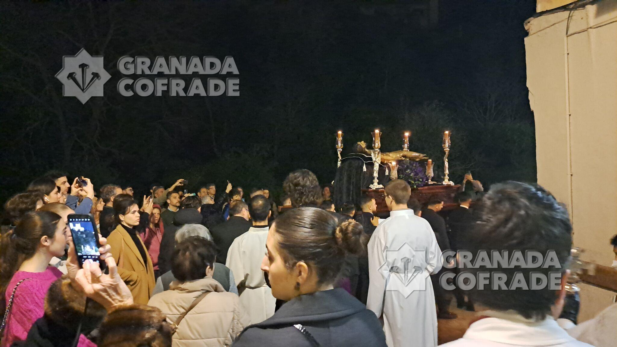 El rezo de las estaciones se inició a las siete de la tarde y regresaba ya cercanas las nueve menos cuarto de la noche a su sede, participando en el mismo la Diputada Autonómica Rosa Fuentes Pérez y el concejal de Mantenimiento y Presidente de la Junta Municipal del Albaicín, Francisco Almohalla Noguerol. También en la presidencia la hermana mayor, Blanca Sánchez-Agesta, siendo dirigido el rezo de las estaciones por el párroco y consiliario, Manuel García Gálvez. Ponía los sones musicales el trio de capilla musical «GranaMusic» y cerraba el cortejo el Cuerpo de Caballeros del Santo Sepulcro, de la hermandad oficial granadina, con su decano al frente.