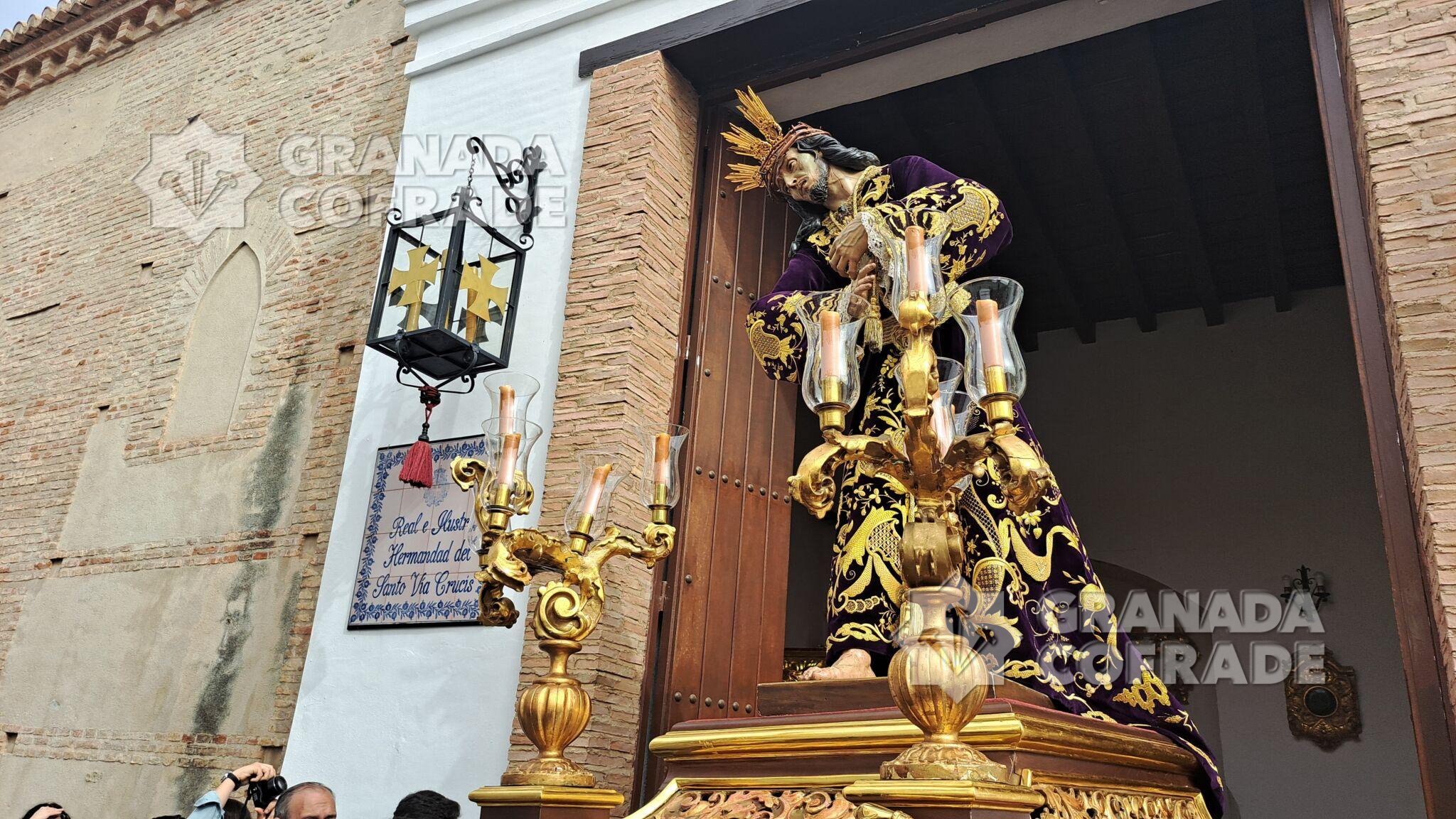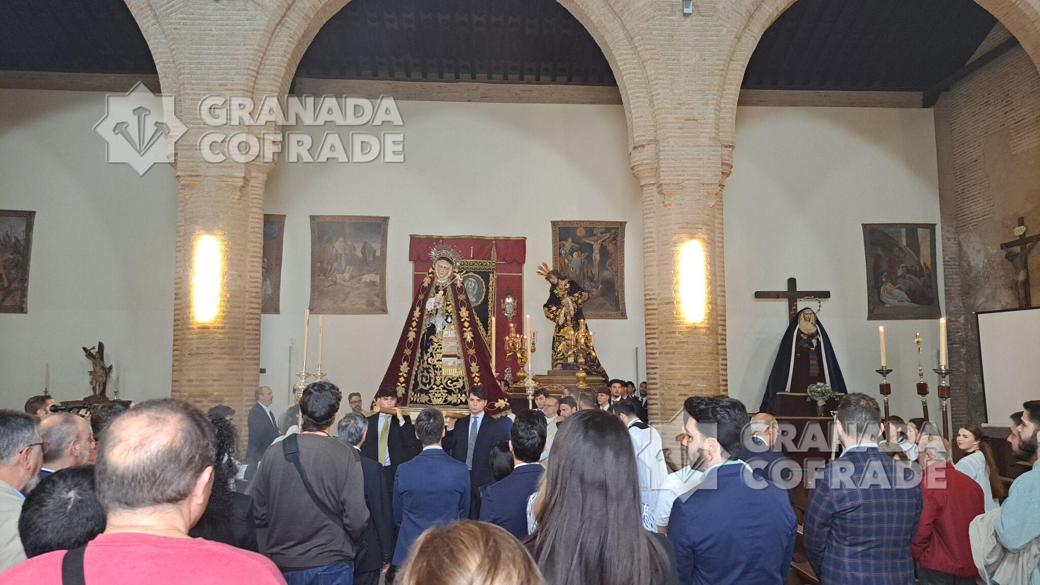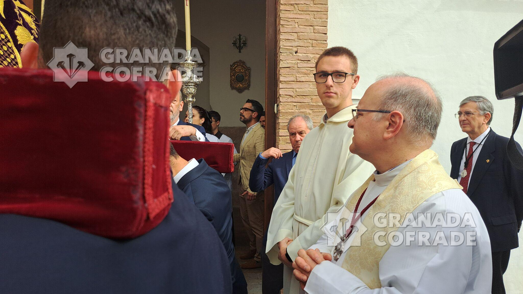 Treinta metros de trayecto, pero suficientes para mostrar el recogimiento de un traslado sencillo y directo a los sentimientos. Así se desarrolló durante poco más de un cuarto de hora el traslado de los Titulares de la cofradía decana del Vía Crucis en la mañana de ayer, precediendo a la celebración de la Eucaristía que presidió el rector del templo de San Juan de los Reyes, Manuel García Gálvez. Un nutrido grupo de hermanos y cofrades granadinos acudieron a la cita para devolver a los Titulares de la corporación nazarena del Martes Santo desde su capilla de salida, unida al templo rectoral de la calle San Juan de los Reyes. Una mañana de sol que recibía al Nazareno de José de Mora vistiendo la túnica color berenjena y bordada en oro por Sebastián Marchante, la misma que lució el Martes Santo a pesar de la lluvia caída y que pudieron contemplar los cientos de granadinos que acudieron a venerar a los Titulares en su capilla. Cuerpo litúrgico en ambos andas de traslado portadas a las órdenes de Dionisio Martínez y de Eduardo Salamanca Rodríguez, respectivamente.