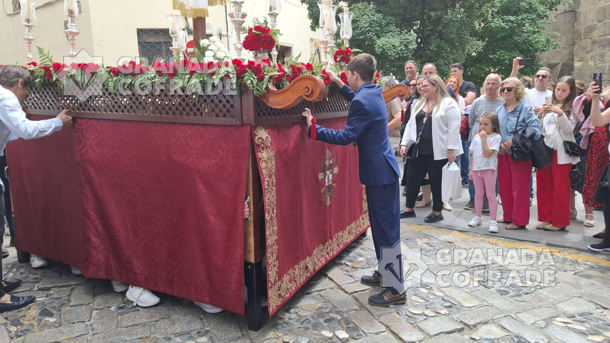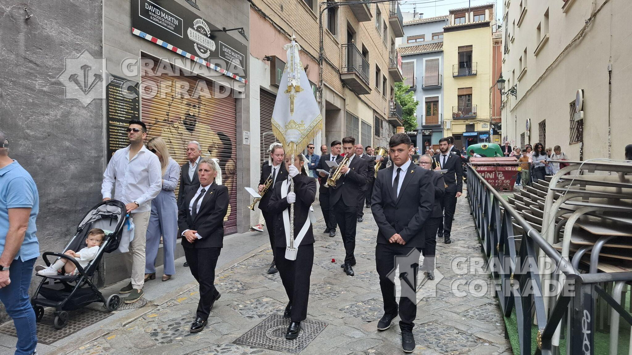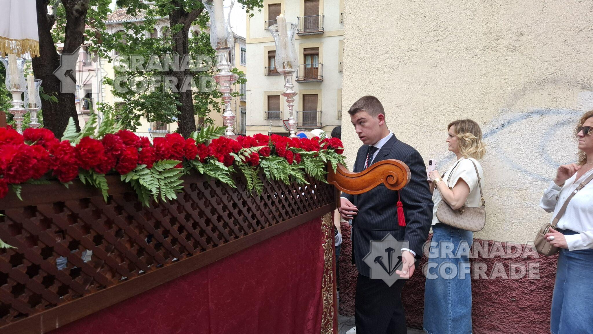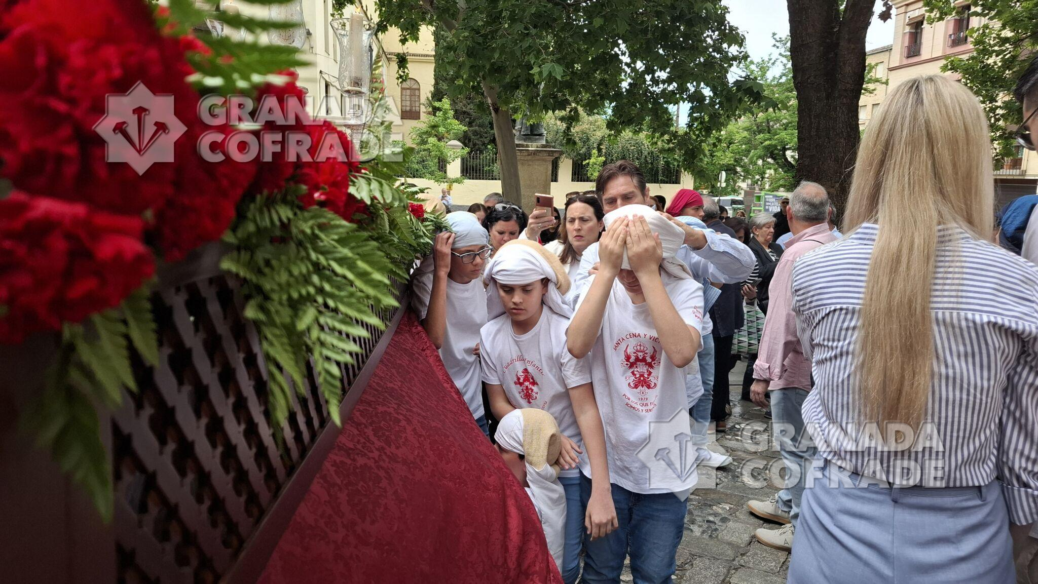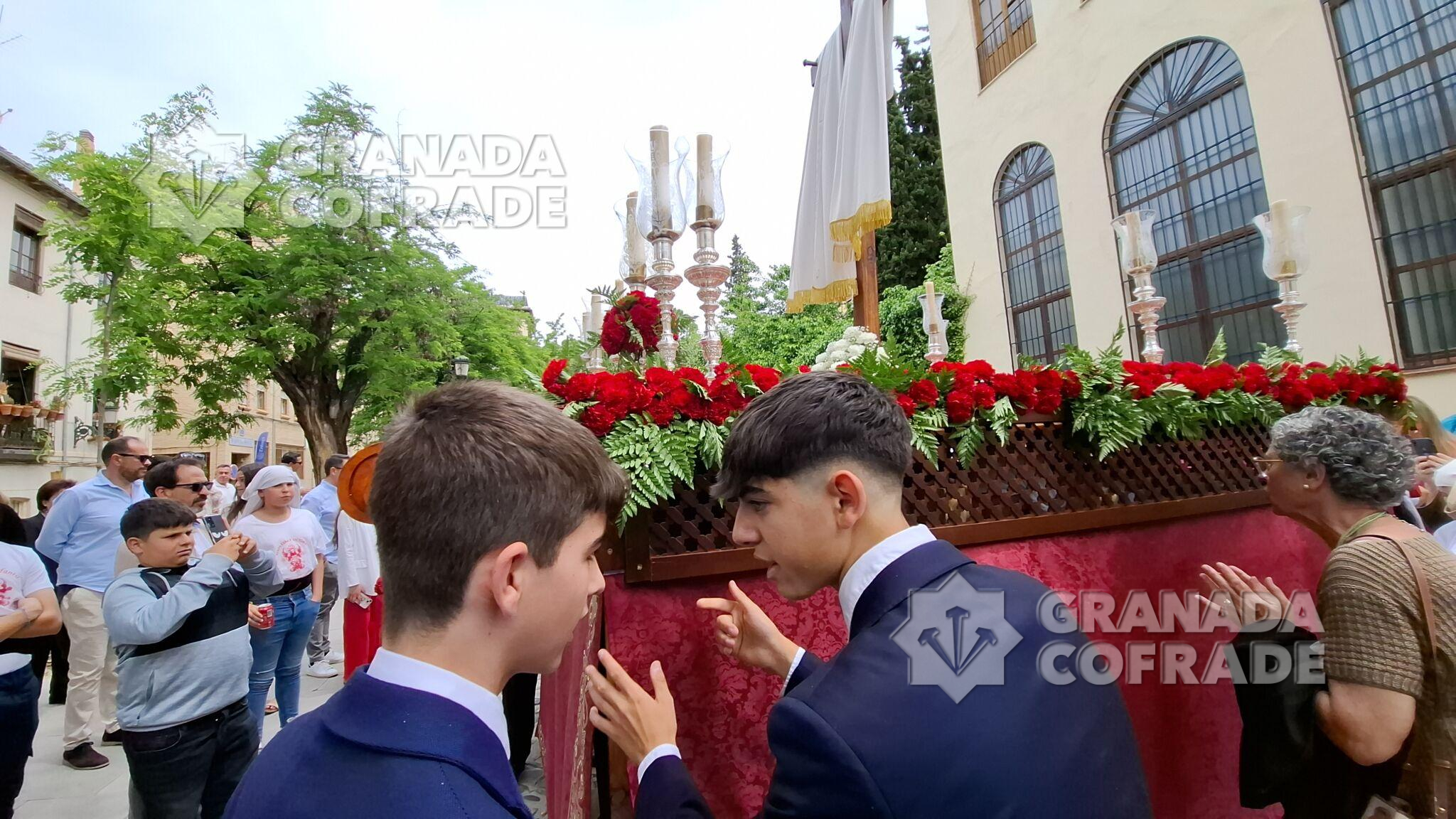 Tras la celebración de la Eucaristía en el interior de la iglesia de Santo Domingo se procedió a la salida de la Santa Cruz de mayo, juvenil, organizada por la hermandad de la Santa Cena Sacramental. «Es una ocasión de volvernos a encontrar y dedicarselo a los más jóvenes de la cofradía, que son quienes tienen el futuro en sus manos», indicó a GRANADA COFRADE el hermano mayor de la corporación, Francisco Javier López Romero. Un cortejo organizado por la vocalía de Juventud de la cofradía del Domingo de Ramos que participaba con su guion en el cortejo procesional, abriéndolo.