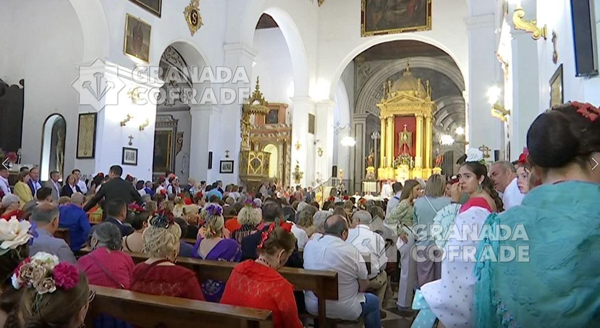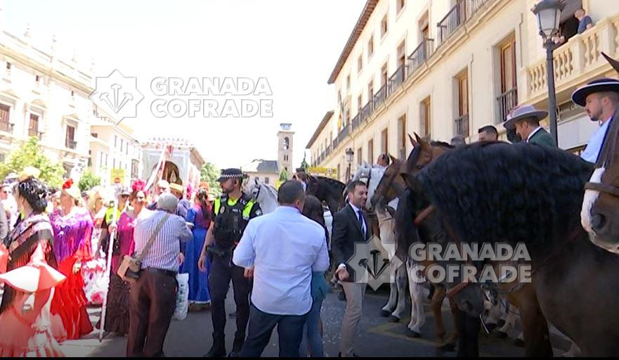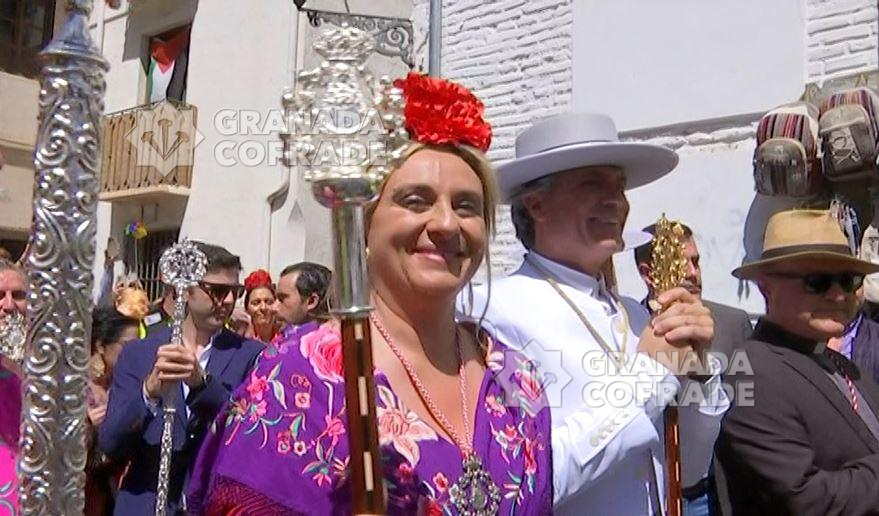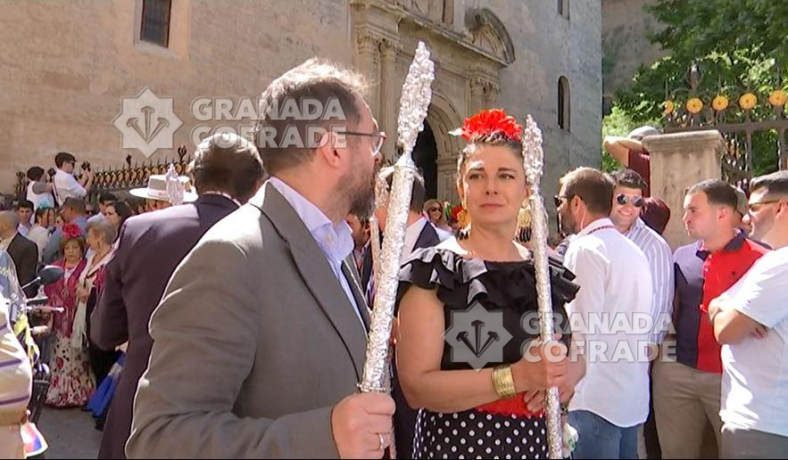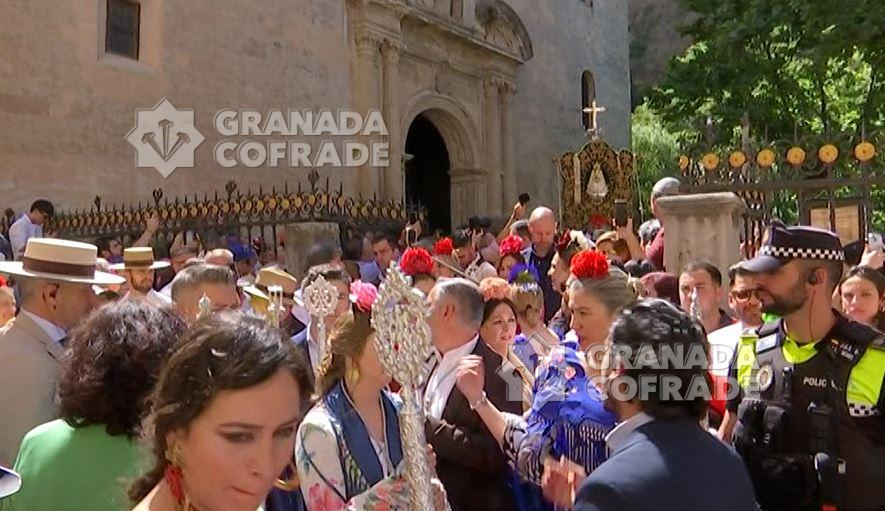 Figuraba en la comitiva religiosa distintos responsables políticos de la ciudad con representaciones de hermandades como la del Cristo del Consuelo o la de la Concepción, además de estar presentes en el interior del templo las cofradías de los Dolores y las Maravillas con las que comparte sede canónica la hermandad rociera. Estaba en la presidencia la alcaldesa de Granada, Marifrán Carazo, acompañada por el hermano mayor, Alfredo Alcalde y el director espiritual, Manuel García Gálvez. Participaban también los ediles socialistas Raquel Ruz y Juanjo Ibáñez, así como el superintendente de la Policía Local de Granada, José Manuel Jiménez Avilés y en la antepresidencia también el delegado de la Junta de Andalucía en Granada, Antonio Granados, junto al delegado de Turismo, Cultura y Deporte, Fernando Egea.