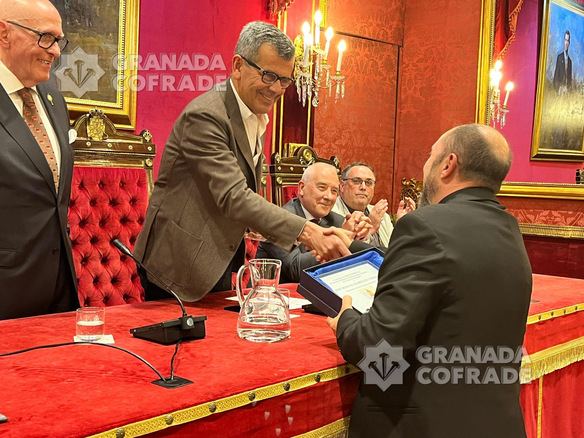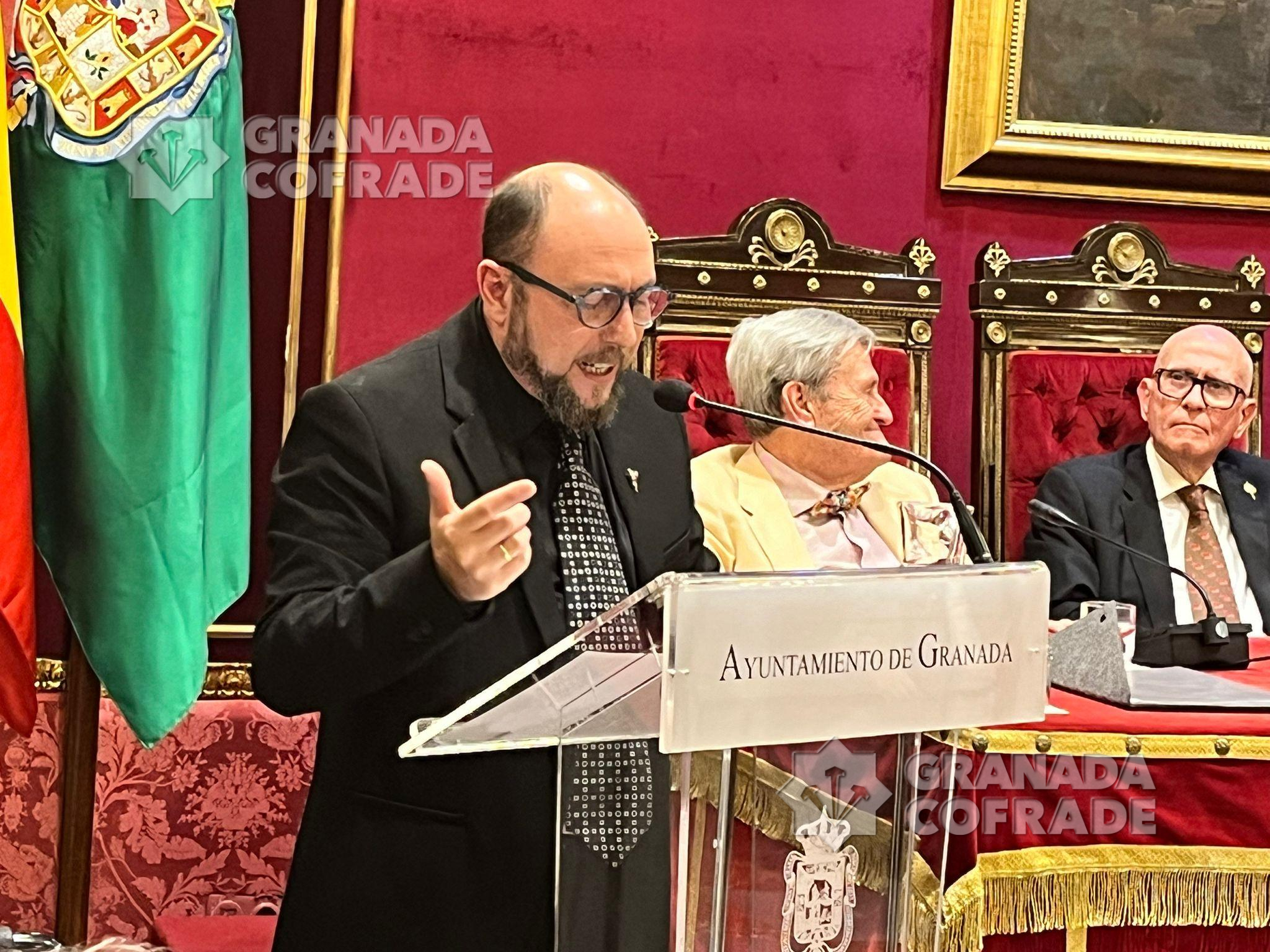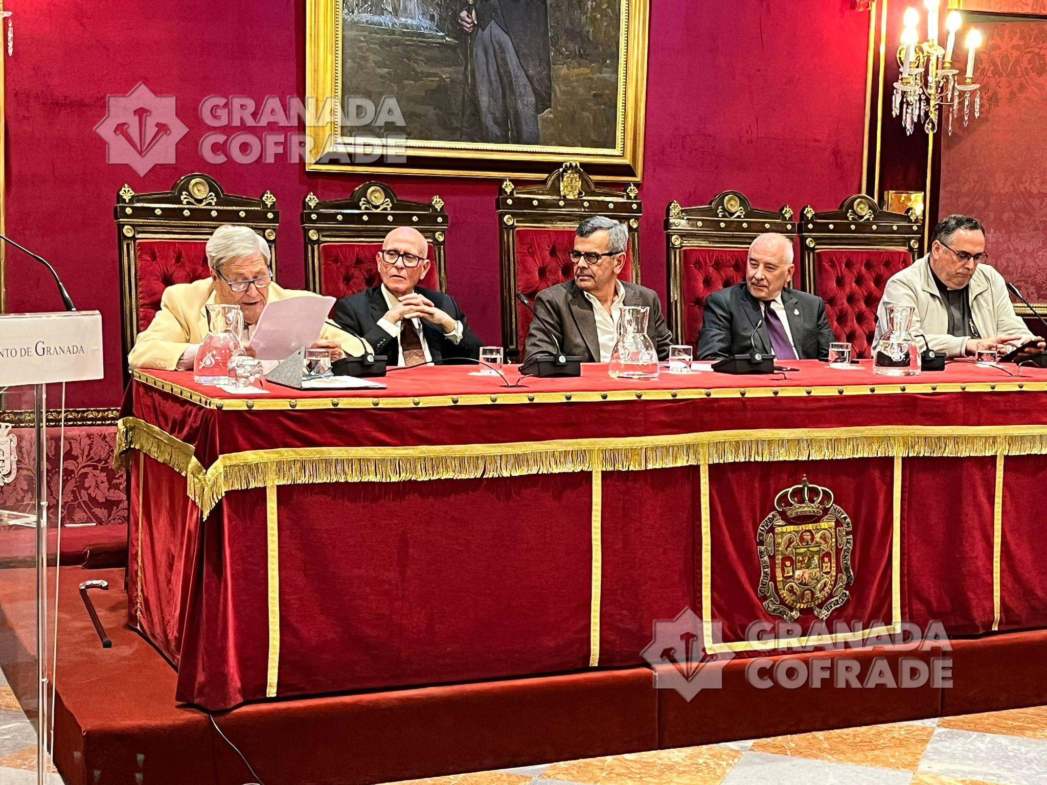El acto, al que asistieron numerosos ex hermanos mayores de las cofradías granadinas y el presidente de la Federación, Armando Ortiz, junto al presidente de la Asociación, Enrique González, y el concejal de Cultura, Juan Ramón Ferreira. Estaba también la portavoz de Vox, Beatriz Sánchez.
