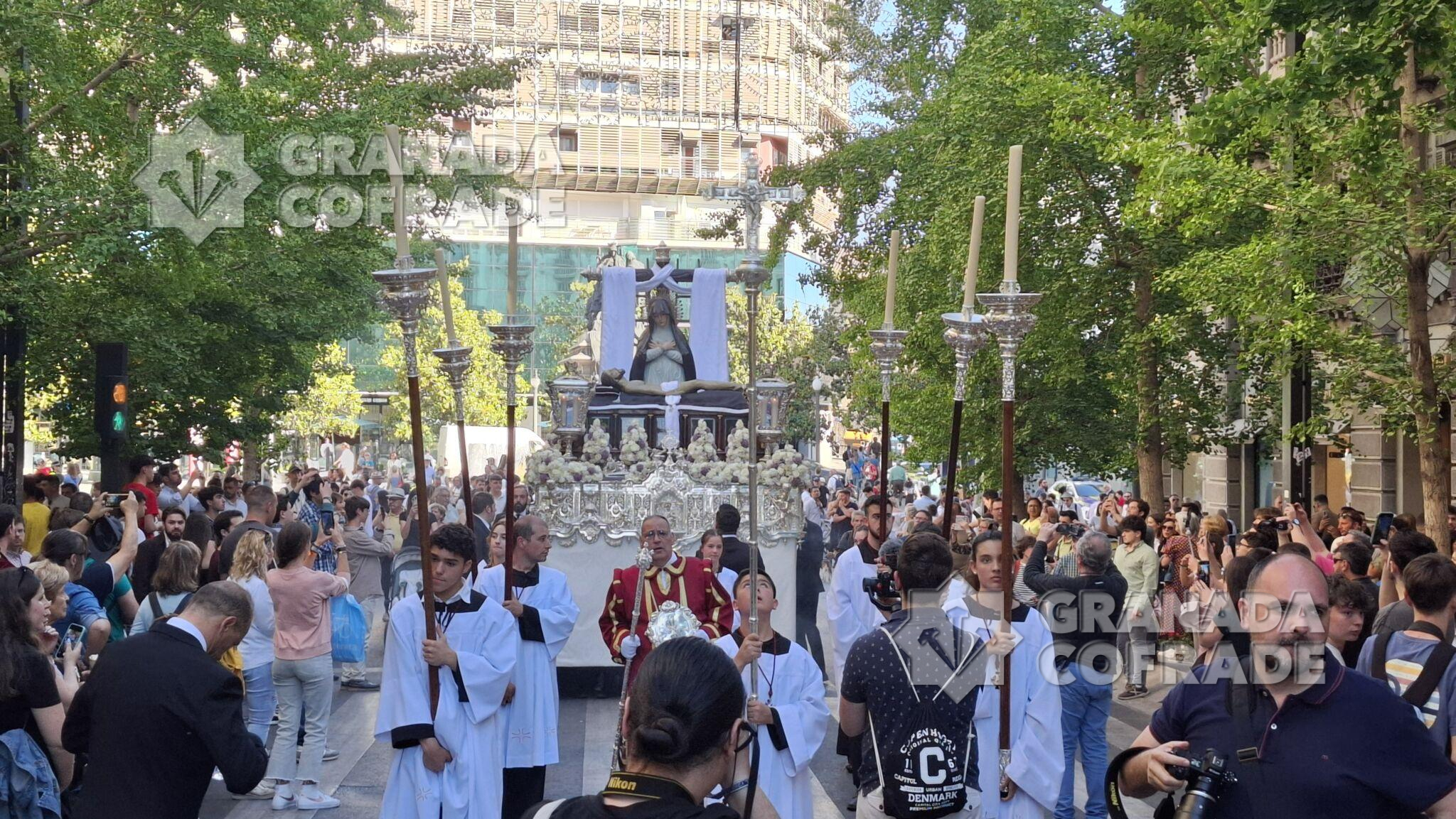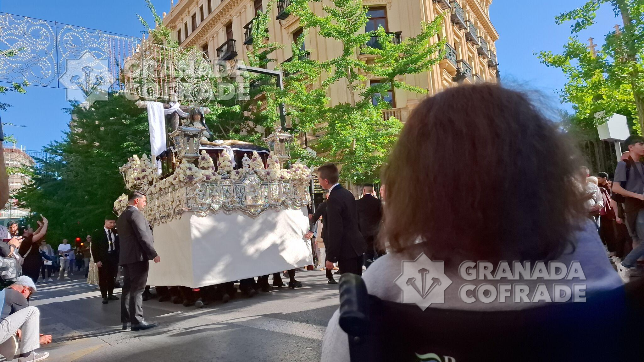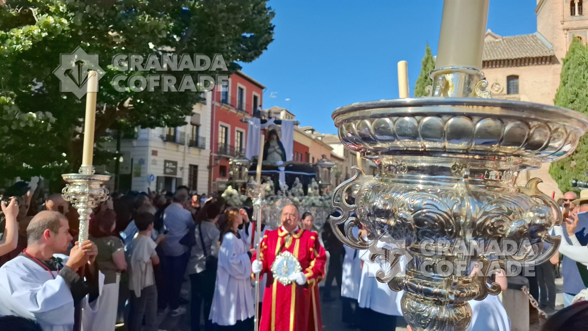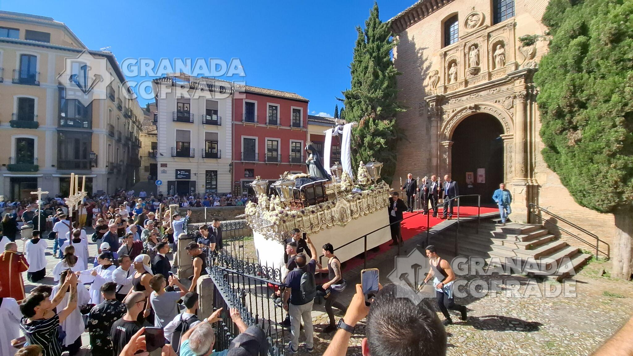 Algo más de una hora empleó la hermandad del Santo Sepulcro en trasladar a sus Titulares desde su sede de la parroquia de Santa Ana hasta la Catedral, accediendo a la misma por la Puerta del Perdón, en calle Cárcel Baja. Acompañaba el trio GranaMusic que interpretó en la salida «Vía Crucis de Tinieblas» y poco después, «Pasión por Granada», de Barros Jódar, a la altura de Plaza Nueva.