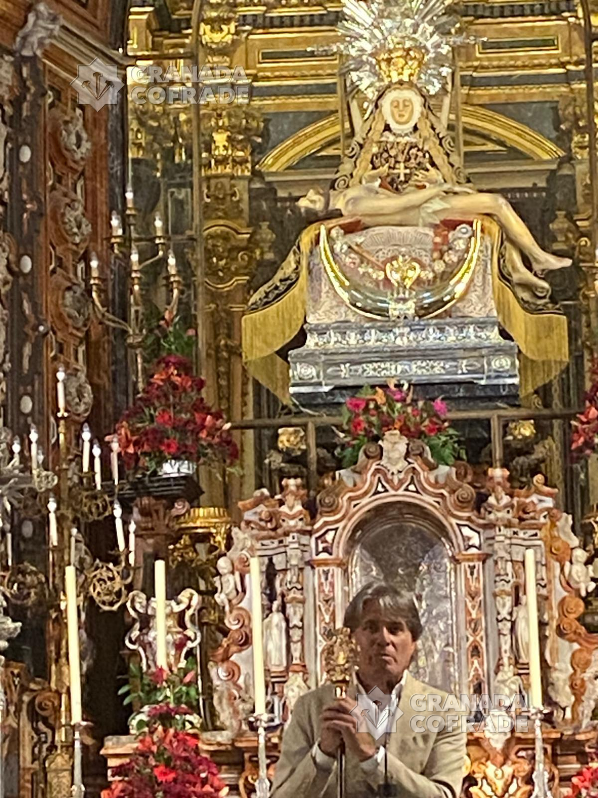 La Medalla de Oro de la hermandad del Rocío, que ha ido prendida durante todo el camino hacia la aldea almonteña en el Simpecado le fue entregada ayer a la hermandad de Nuestra Señora de las Angustias para la imagen de la Patrona de Granada. Regresó ayer oficialmente la hermandad granadina desde la basílica hasta la parroquia de San Pedro y San Pablo. El hermano mayor de la Patronal de la Virgen de las Angustias, Antonio González, recibió la medalla de oro ante la presencia del hermano mayor de la del Rocío, Alfredo Alcalde. Dirigió unas palabras el consiliario rociero, José Gabriel Martín y se rezó ante la Patrona granadina.