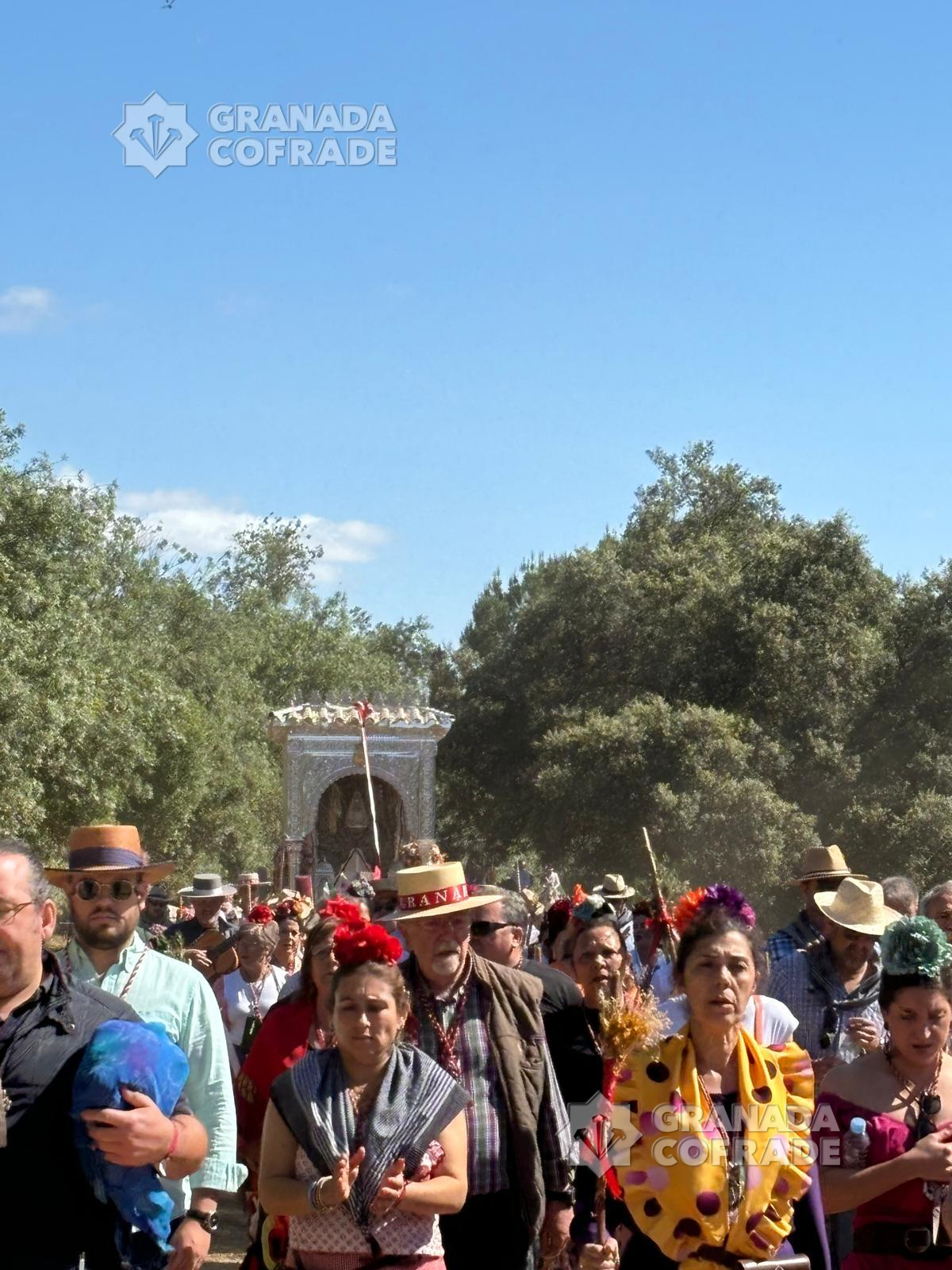 El camino de la hermandad de Granada concluyó ayer jueves y ya están los romeros a la espera de la presentación ante la Virgen, mañana sábado, y compartiendo con el resto de hermandades esta peregrinación a la ermita. En la jornada anterior, la del miércoles, participó de la romería y del camino granadino la consejera de Fomento de la Junta de Andalucía, Rocío Díaz, junto con el Delegado de la Junta en Granada, Antonio Granados. Un camino que, nos relata nuestro contertulio Manuel Sánchez Salmerón, que está siendo «muy gratificante y emotivo, con una alta participación granadina».