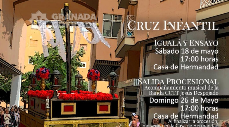 Como es tradición en la hermandad de Jesús Despojado de sus Vestiduras, durante los próximos fines de semana celebran la Cruz Infantil de mayo. Para ello, se convoca a los más jóvenes, sean o no sean hermanos, para la -«igualá» y ensayo que tendrá lugar el próximo sábado 18 de mayo a las 17 horas en la Casa de Hermandad. La salida procesional, con el acompañamiento musical de la banda de CCTT Jesús Despojado de sus Vestiduras, será el domingo 26 a las 17:00 horas desde la Casa de Hermandad.