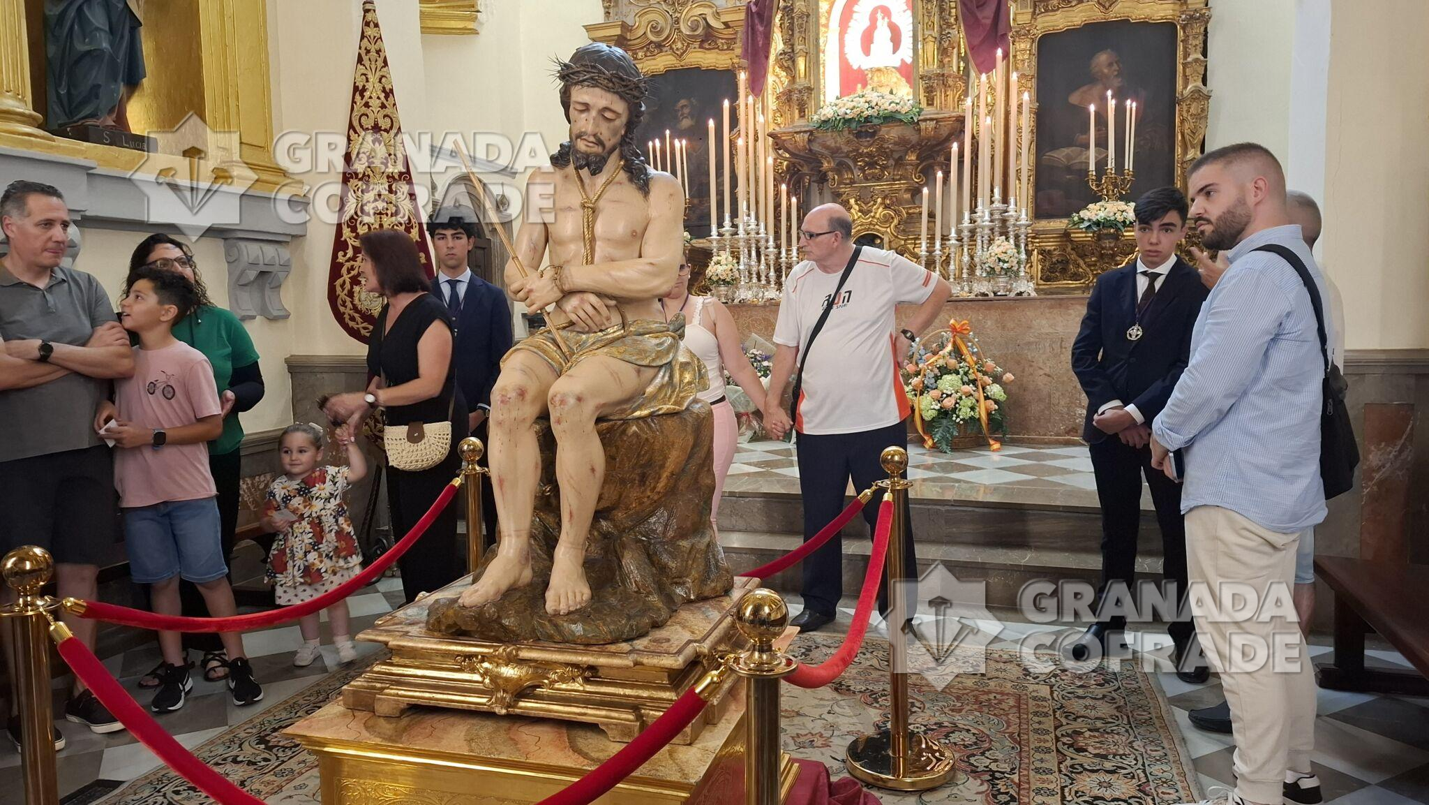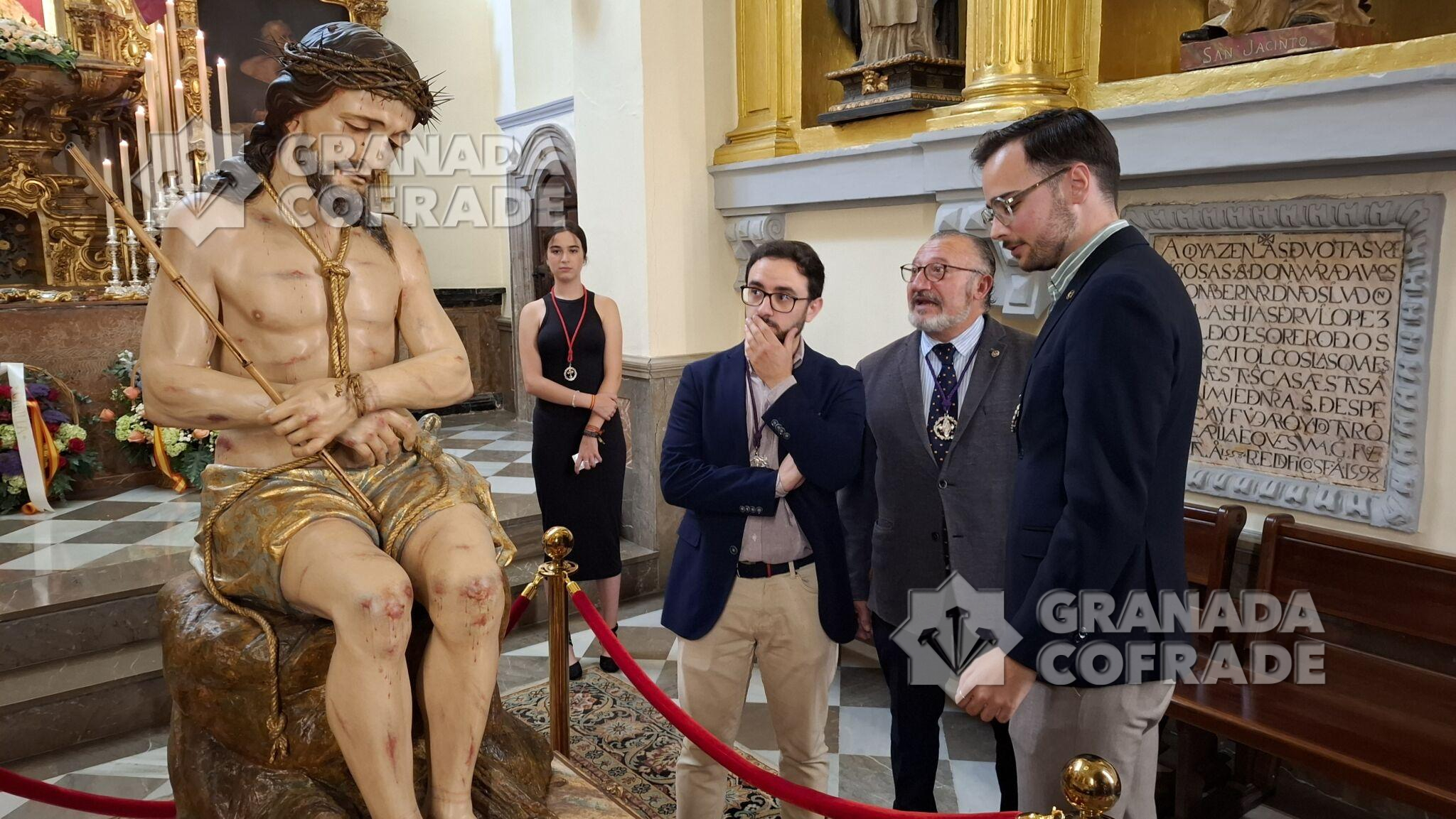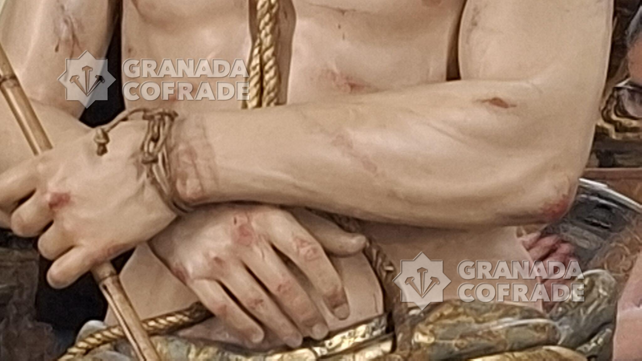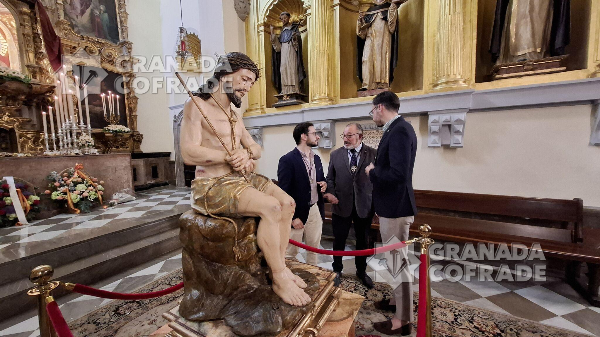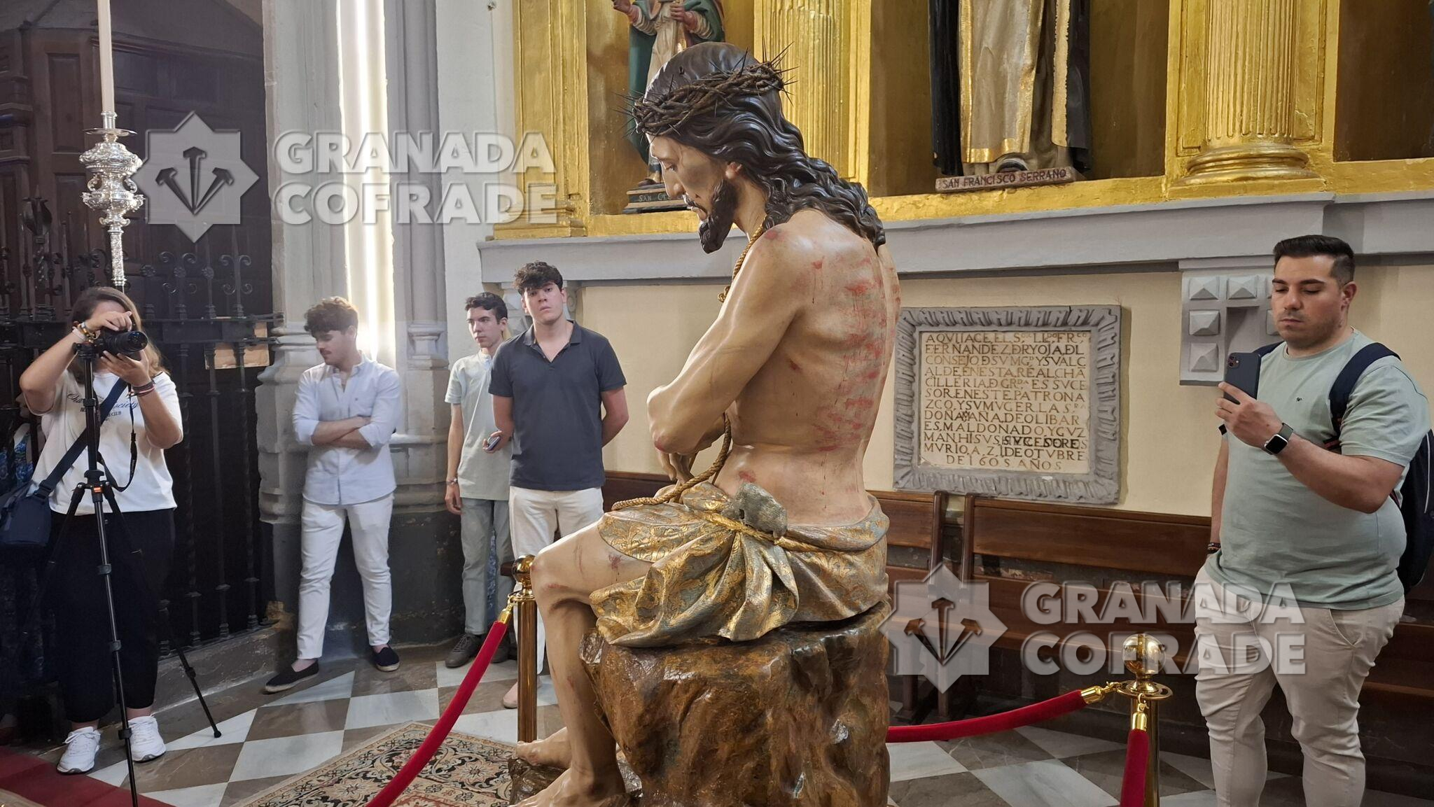 «La peana presentaba una grieta transversal que se ha tenido que sanear y tapar porque revestía cierta gravedad en caso de que se siguiera abriendo o se rompiera la superficie de la peana, pero se ha podido subsanar, se ha reforzado y en realidad el Señor en su soporte se encontraba bastante bien», ha referido a GRANADA COFRADE el restaurador granadino Óscar Martín del Pozo, quien ha señalado también que era una de las preocupaciones mayores para el cabildo de hermanos cuando se aprobó la restauración que se presentó ayer por la tarde expuesta la imagen para la veneración de los fieles y hermanos. En una de la capilla de Santo Domingo se podía contemplar la talla «cuya atribución podría estar en torno al taller de los Mora por las distinta similitudes que tiene con algunas de las imágenes suyas pero que también podría estar en el entorno de Ruiz del Peral». El restaurador afirmó a nuestra redacción que con el informe del restaurador Francisco Marín Cruces de hace veintinueve años y el que entregará a la hermandad el domingo próximo tras la exposición del proceso «podría algún historiador profundizar en la hechura y la atribución real de la imagen que nosotros como restauradores no nos atrevemos a pronunciarnos».