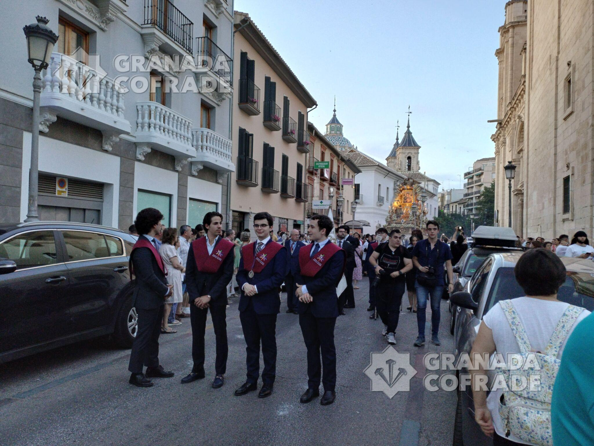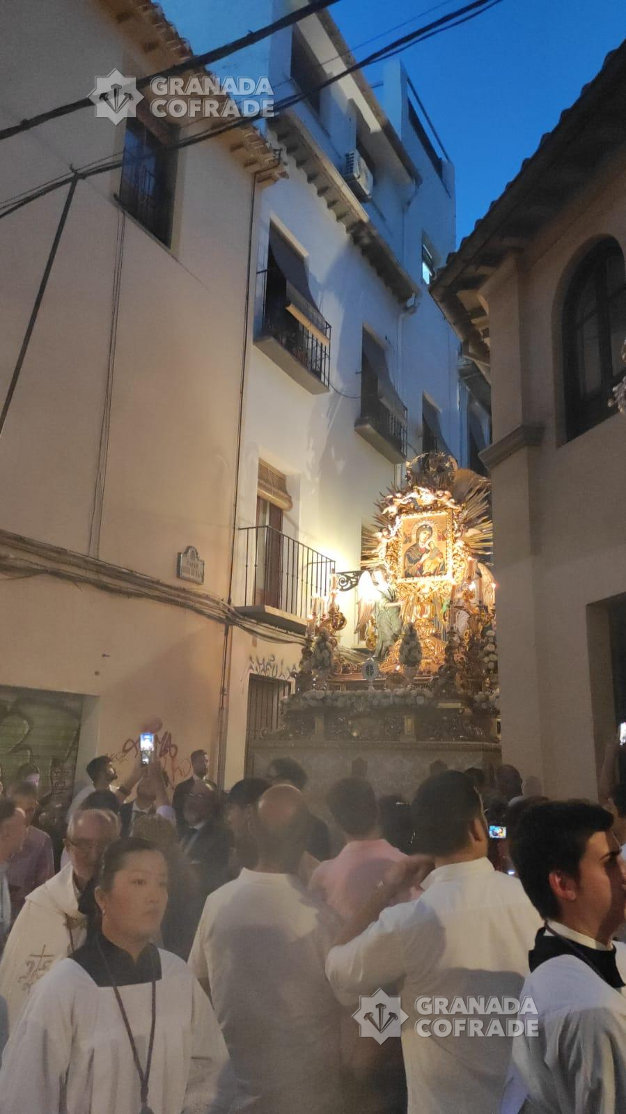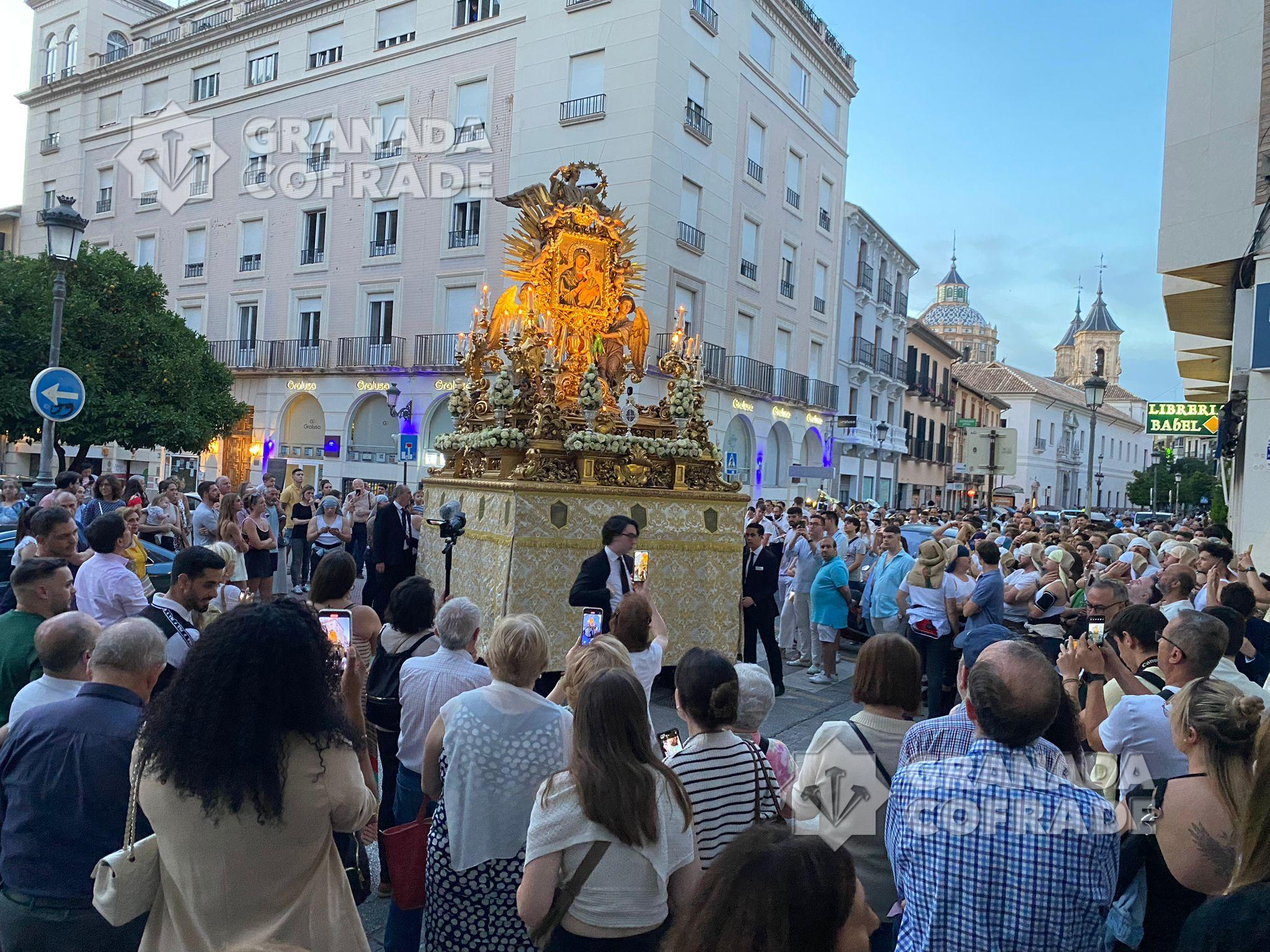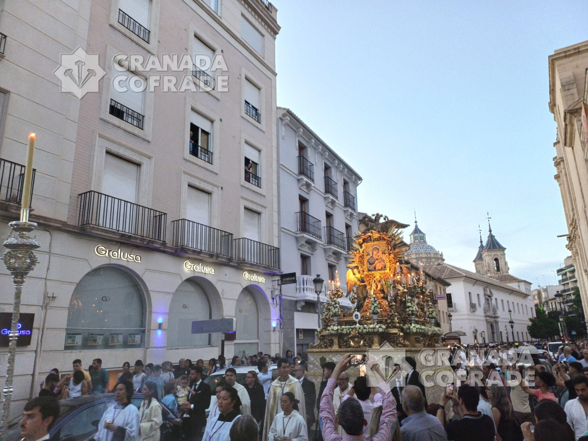 A lo sones del himno nacional se ponía el paso, adornado con rosas blancas de varias especies, a las órdenes de Dionisio Martínez. La banda de música de San Isidro, de la localidad vecina de Armilla, pusieron sus partituras al paso de la Virgen partiendo desde la calle San Jerónimo con la interpretación de la marcha «Tú, nuestro Socorro».