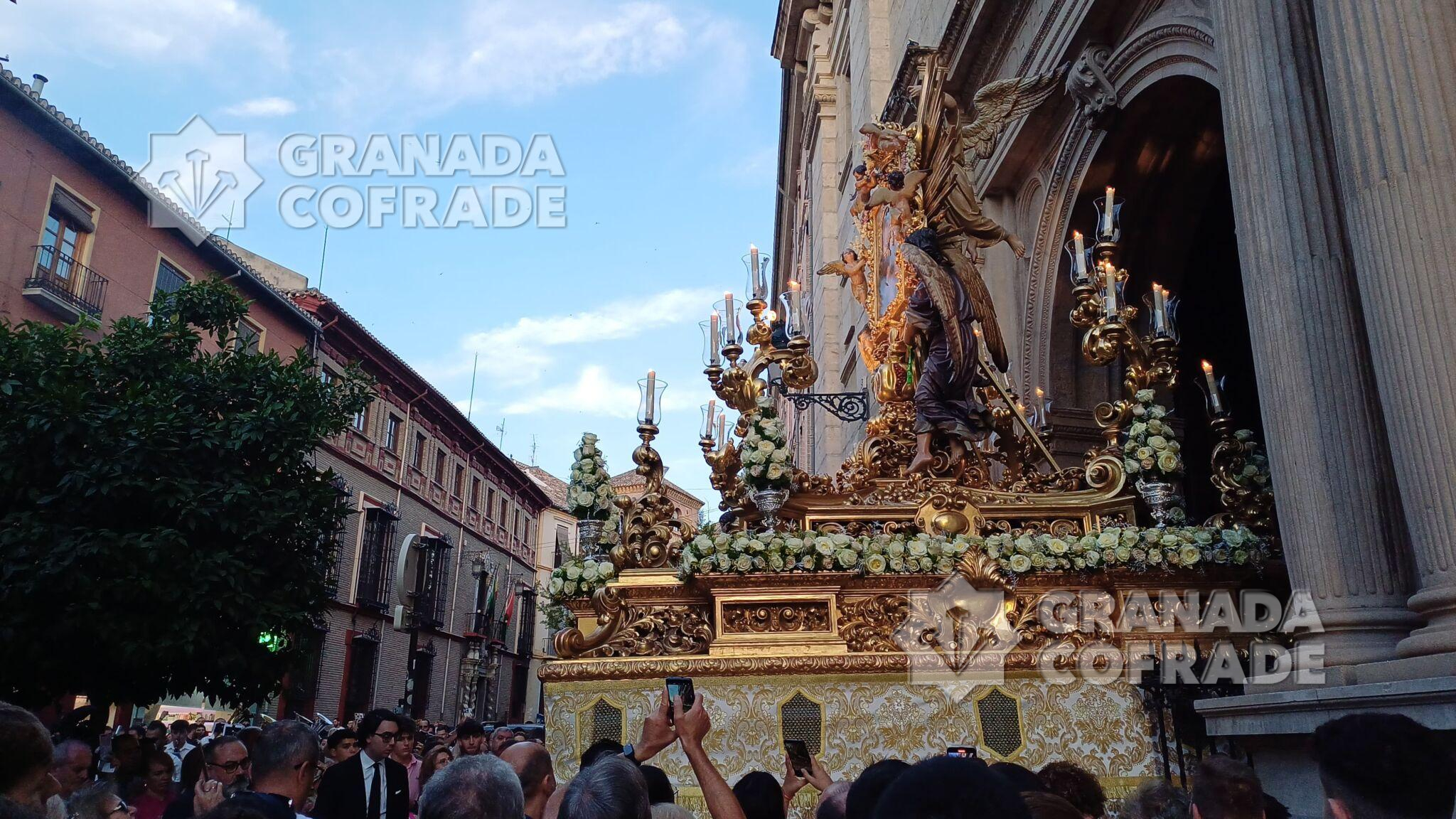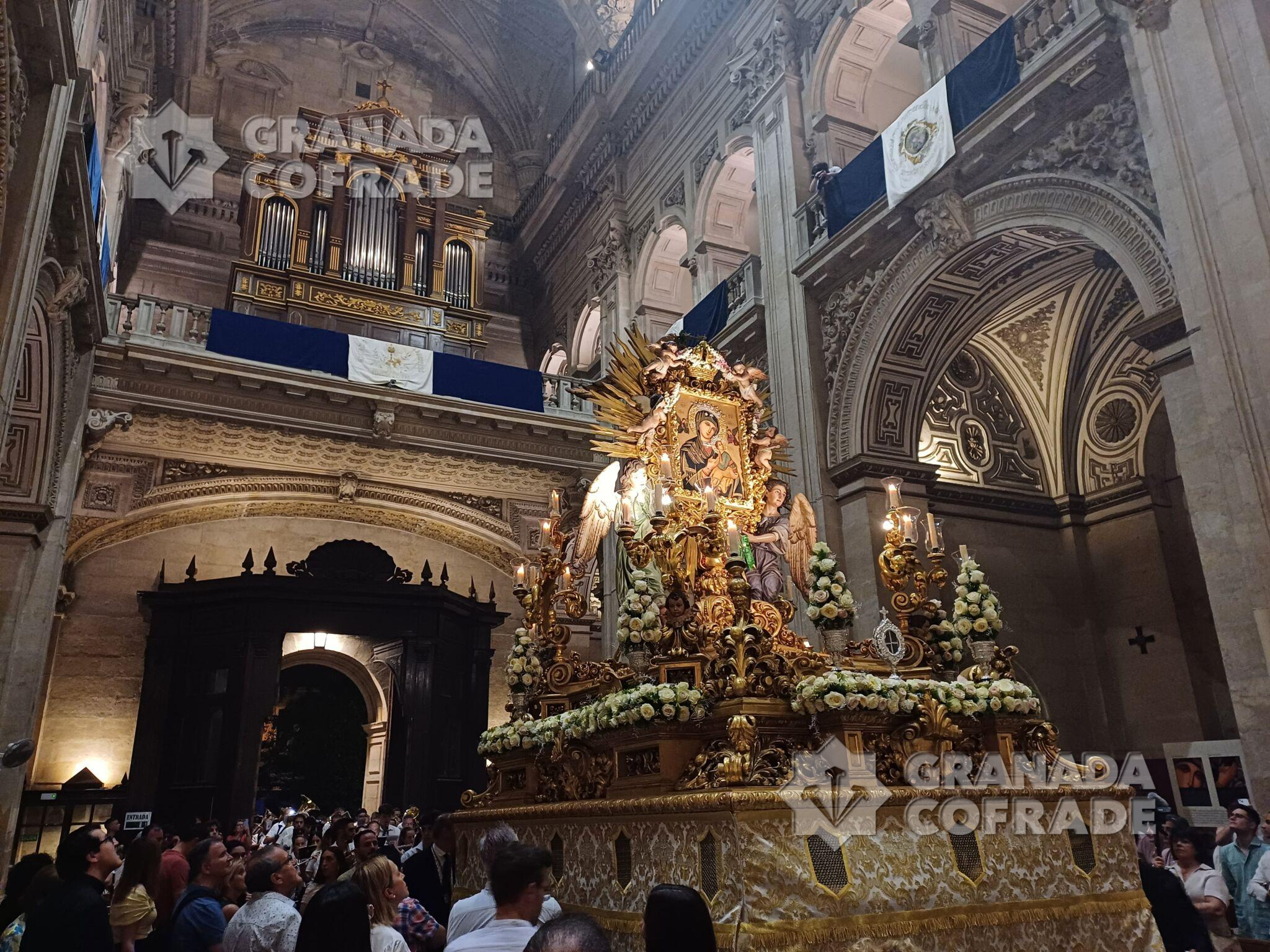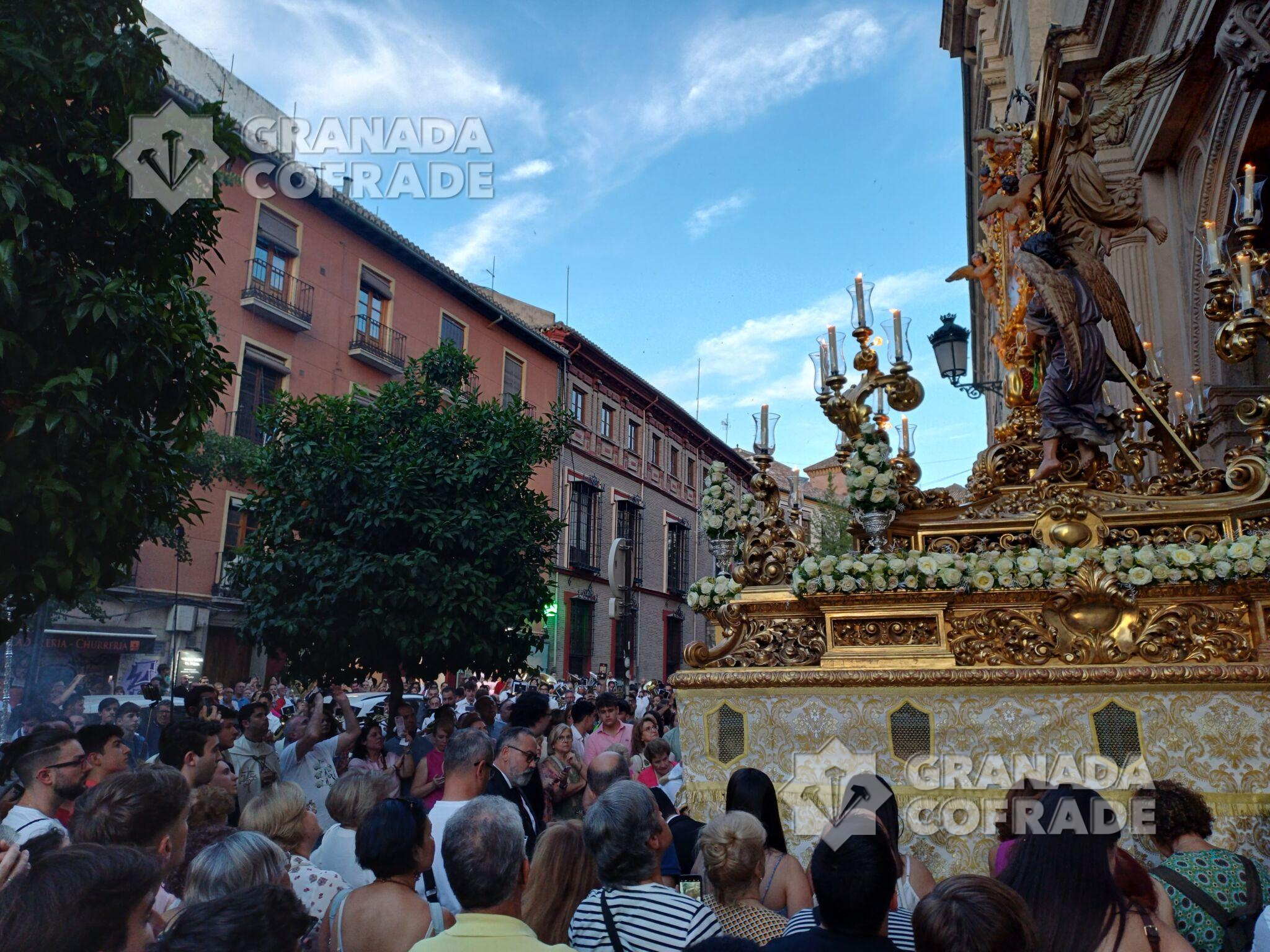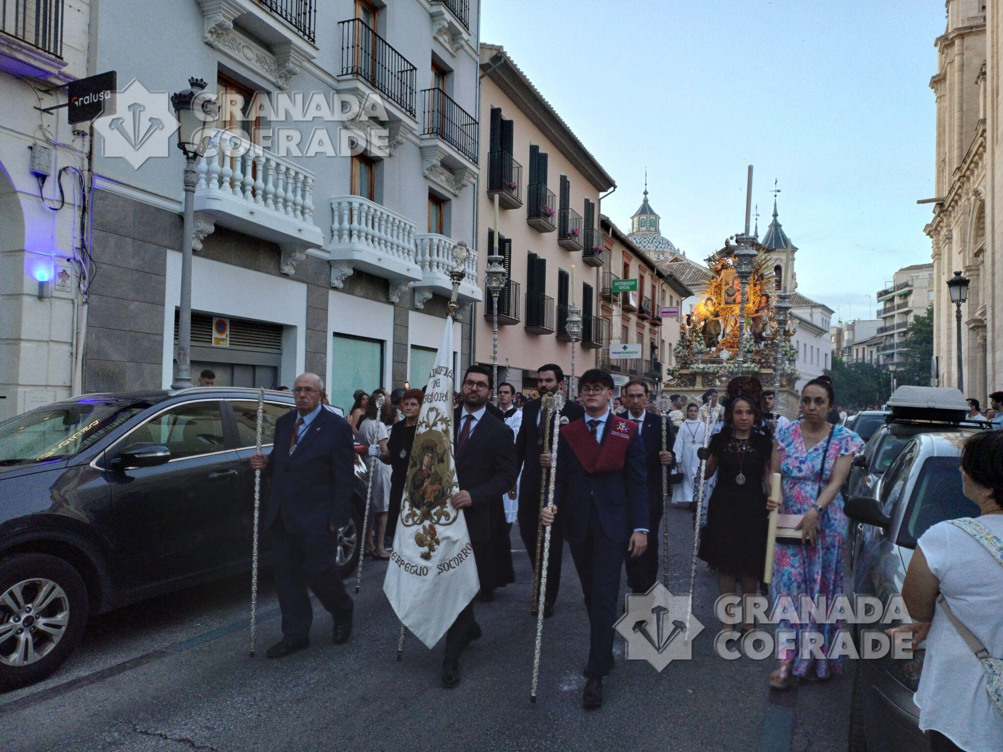 A lo sones del himno nacional se ponía el paso, adornado con rosas blancas de varias especies, a las órdenes de Dionisio Martínez. La banda de música de San Isidro, de la localidad vecina de Armilla, pusieron sus partituras al paso de la Virgen partiendo desde la calle San Jerónimo con la interpretación de la marcha «Tú, nuestro Socorro».