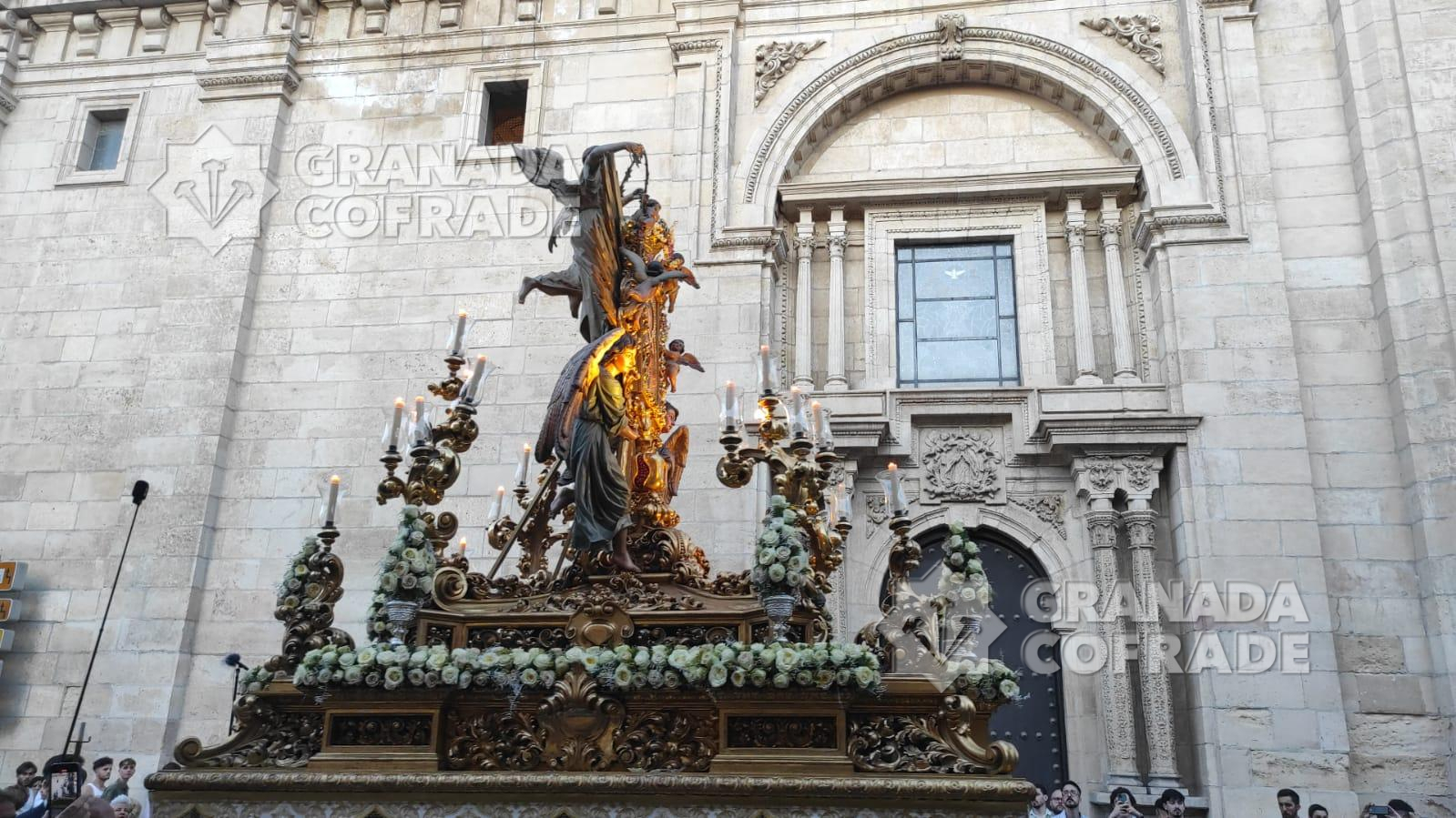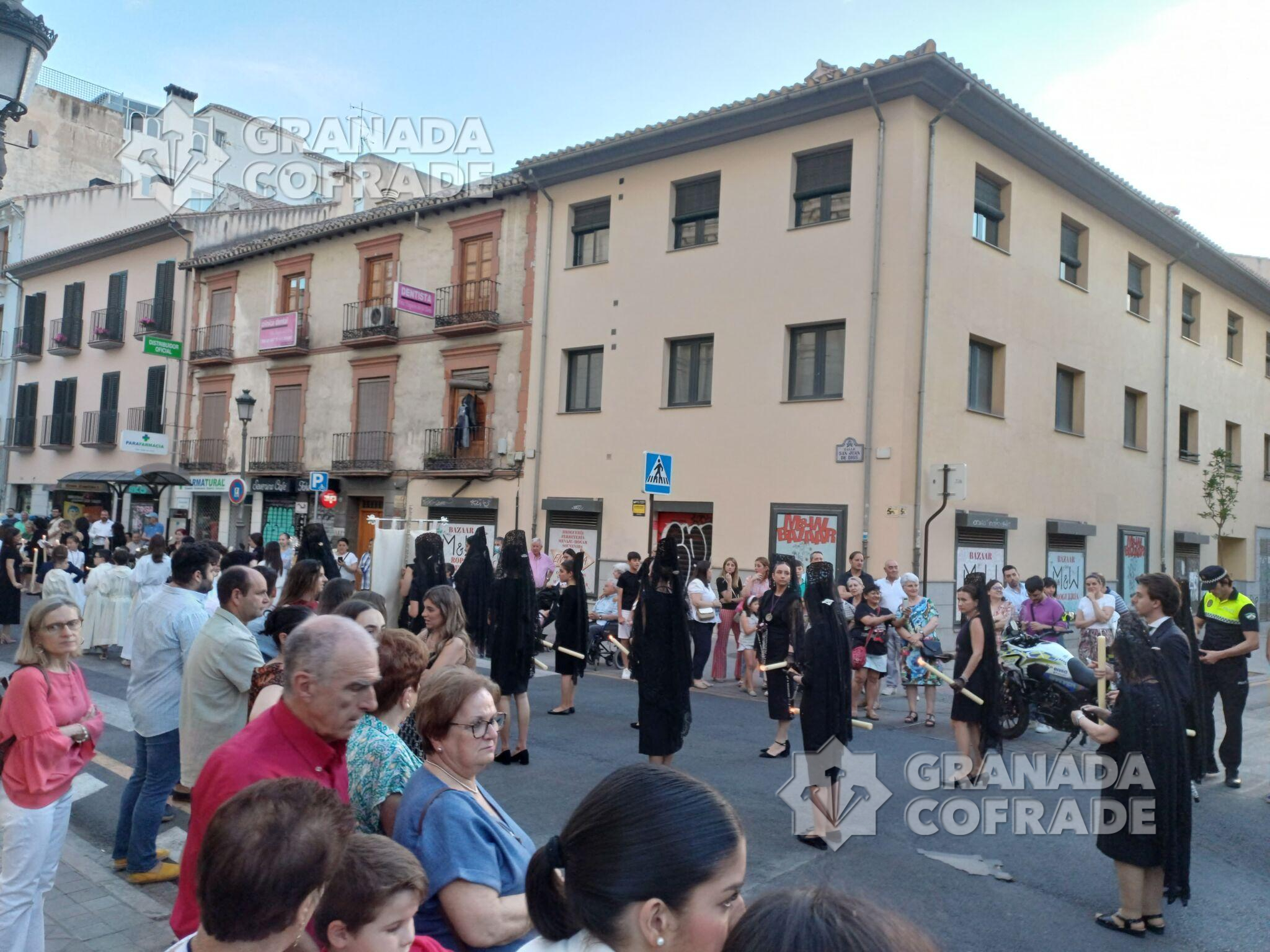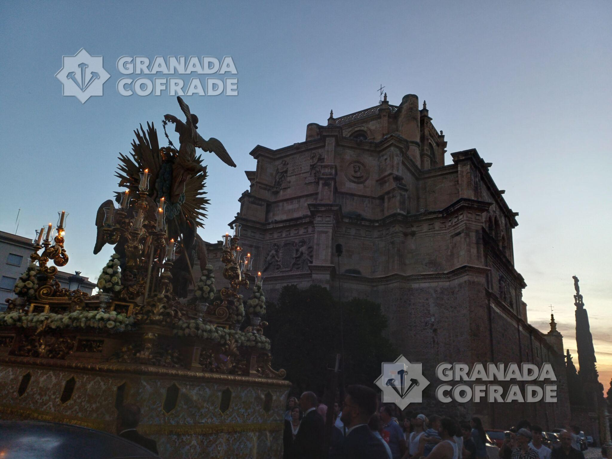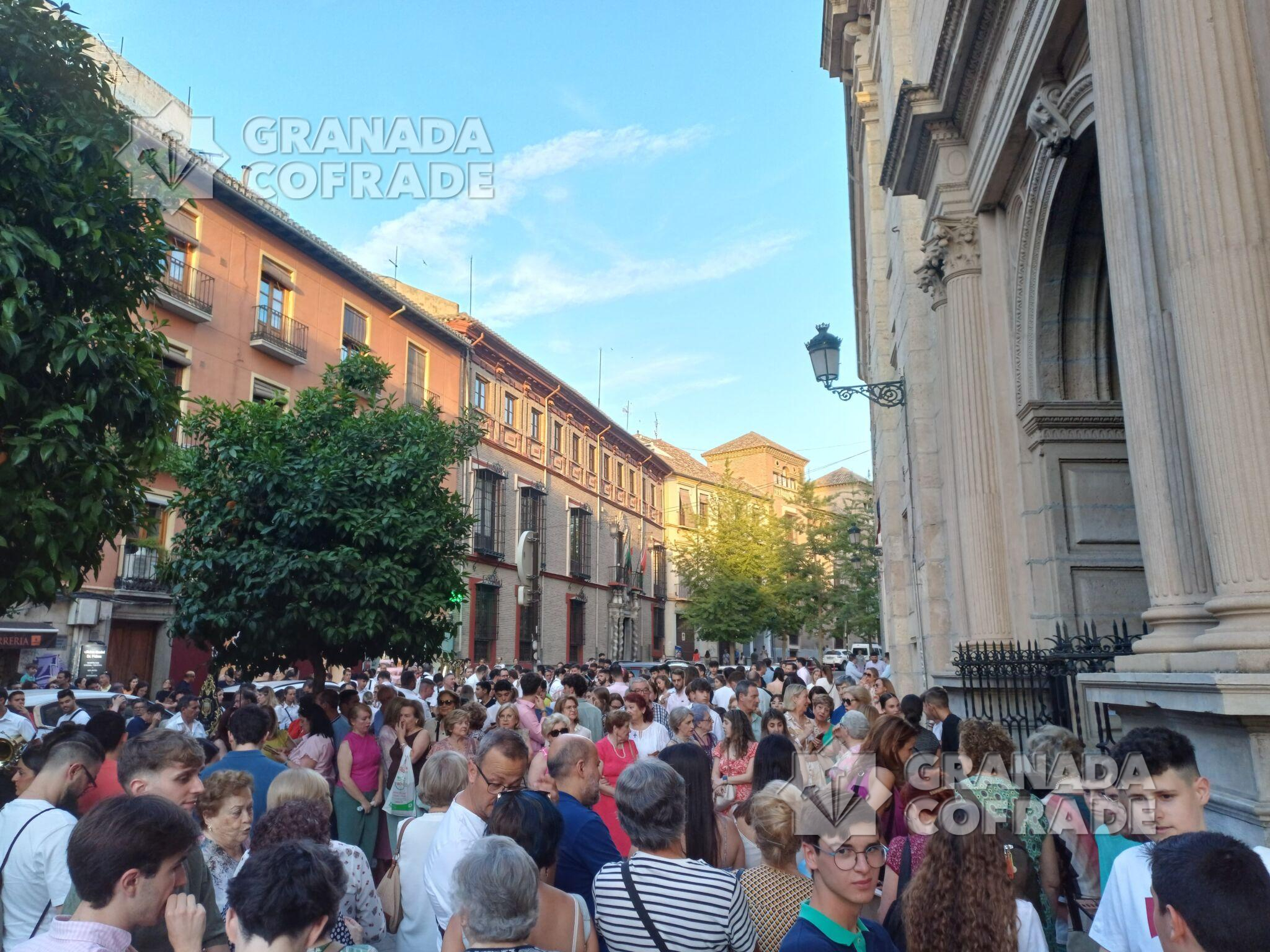 A lo sones del himno nacional se ponía el paso, adornado con rosas blancas de varias especies, a las órdenes de Dionisio Martínez. La banda de música de San Isidro, de la localidad vecina de Armilla, pusieron sus partituras al paso de la Virgen partiendo desde la calle San Jerónimo con la interpretación de la marcha «Tú, nuestro Socorro».
