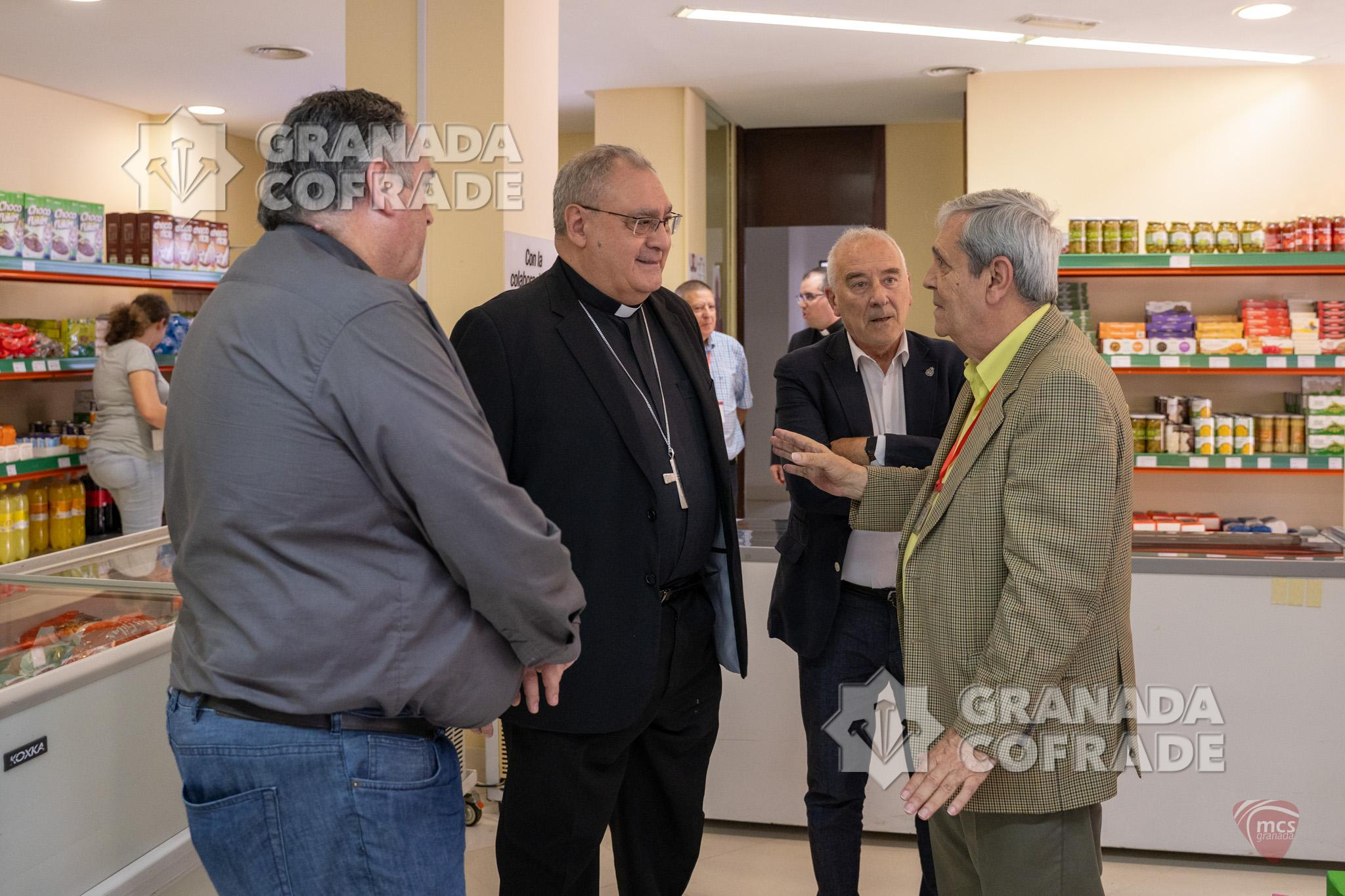 Ciento cincuenta familias atiende el Economato Solidario «Santa María de la Misericordia» sustentadas en un setenta y cinco por ciento del precio de cada producto por las hermandades granadinas y Cáritas Diocesana y parroquiales, principalmente. Así lo conoció el prelado granadino, monseñor Gil Tamayo, en la visita que realizó recientemente al Economato establecido en la calle Primavera, junto a la plaza de Fontiveros. El arzobispo estuvo acompañado por el presidente de la Federación de Cofradías, Armando Ortiz, y el gerente del Economato, Diego González. El responsable del mismo explicó a Mons. Gil Tamayo el funcionamiento del Economato y su situación actual, que ha pasado de atender a 50 familias cuando abrió en 2014 a atender a más de 150 familias actualmente. Durante dos días de la semana -lunes y miércoles, de 18 a 20 horas- atiende a las familias que lo necesitan, propuestas por los socios. Las hermandades y cofradías granadinas dirigen una parte de su trabajo caritativo a este Economato, que permite a las familias elegir los productos de la cesta de la compra que necesitan y pagar el precio a un bajo coste -un 25% del total- “con la intención de buscar la dignificación de la persona necesitada”, explican a nuestra redacción desde el Economato Diocesano.