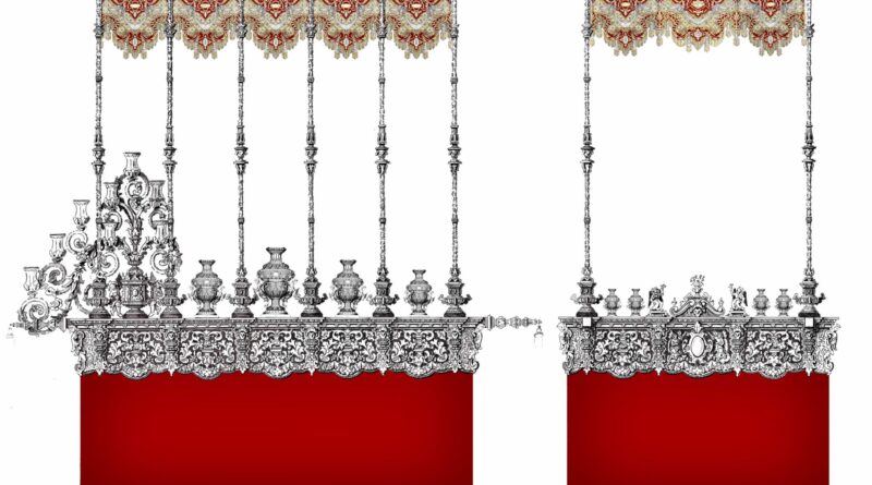 El diseño neobarroco de ampulosas siluetas y  formas sigue el diseño de Álvaro Abril, llevado a cabo en 2011, conjugándose con el proyecto de orfebrería ya ejecutado en gran parte por el taller de Ramón León bajo su diseño.