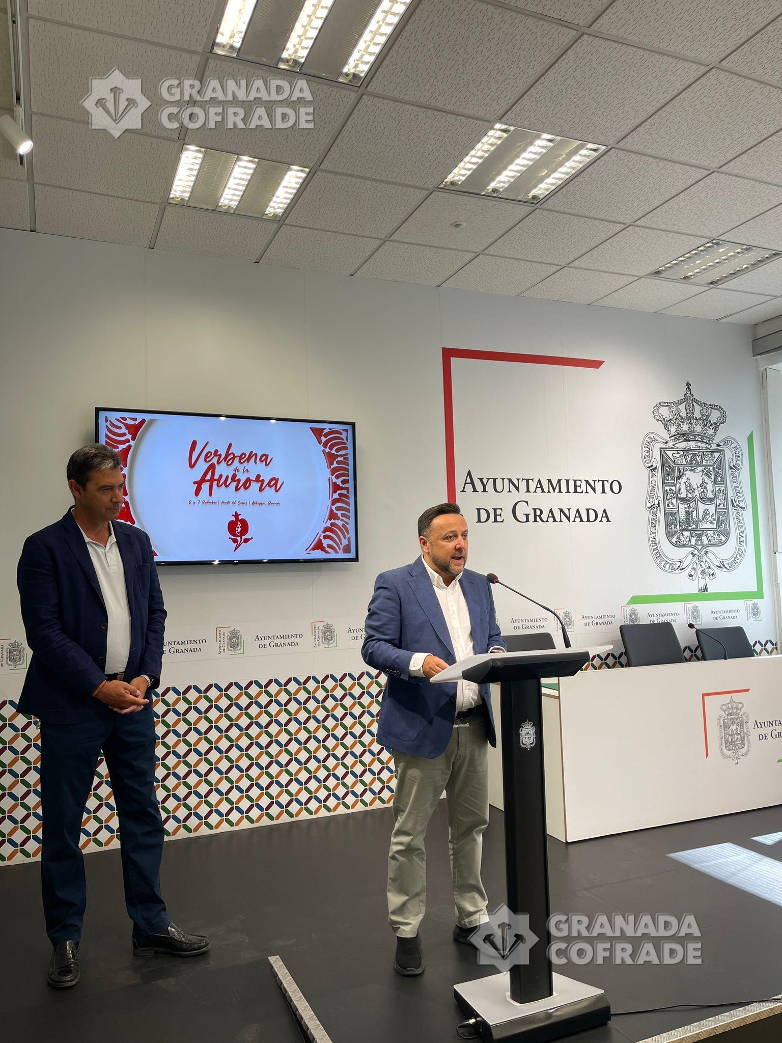 El Ayuntamiento de Granada junto a la Cofradía de la Aurora presentaron ayer en la sala de prensa del ayuntamiento de la ciudad los actos con motivo de la Verbena de la Aurora 2024. Al acto asistió el concejal de Participación Ciudadana y Mantenimiento, Francisco Almohalla Noguerol, el presidente de Granadown, Francisco Hidalgo Tello, junto al hermano mayor de la cofradía albaicinera, Victor Alarcón Padial.
