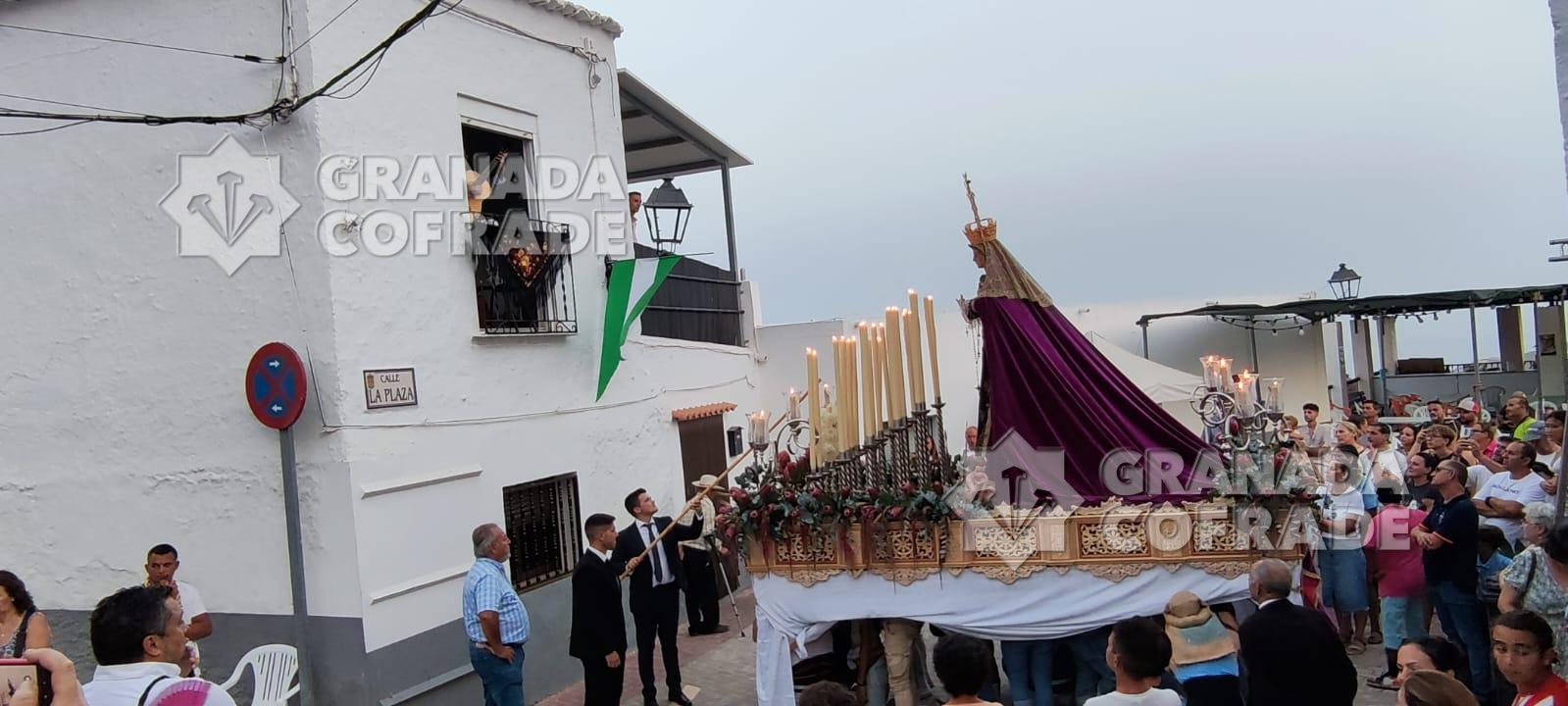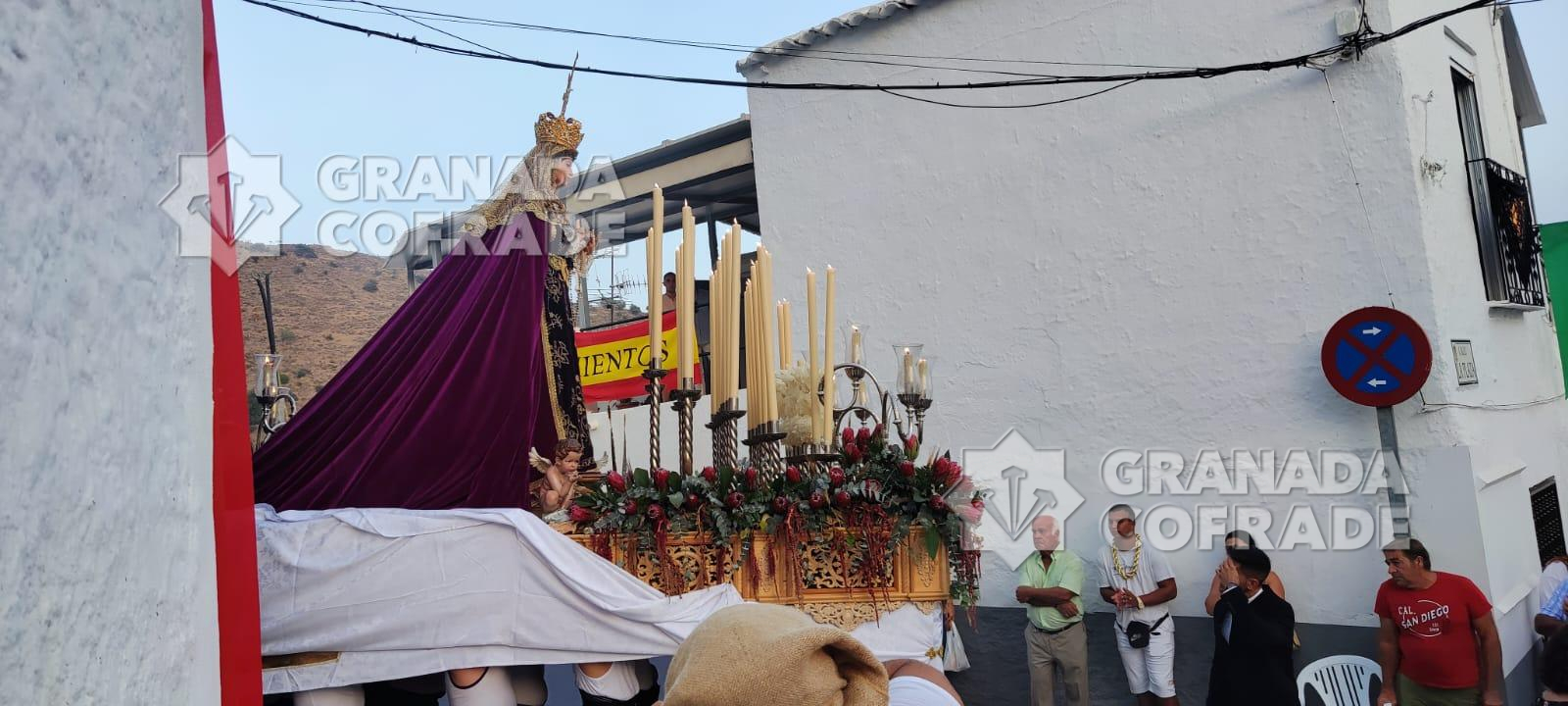 La imagen de Nuestra Señora de los Sentimientos del pequeño anejo de Polopos, Haza del Trigo, salió ayer sábado procesionalmente por las calles de la localidad. La charanga y banda de música Los Apaches, fue la que acompañó al paso procesional. En la salida, frente a la ermita donde se venera la imagen, cantó el granadino Iván «El Centenillo» a la Santísima Virgen. Una cuadrilla de costaleros portó la imagen durante el recorrido procesional con trabajo a costal.