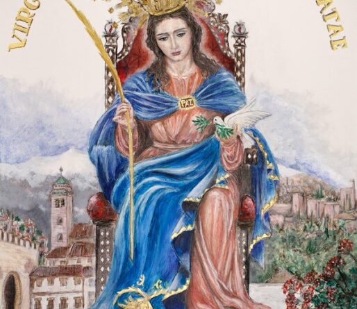 Con motivo de la Salida Extraordinaria de Nuestra Señora de la Paz los próximos días 5 y 6 de octubre de 2024, la Ilustre Cofradía de la Entrada en Jesús en Jerusalén y Ntra. Sra. de la Paz ha encargado la Tarjeta de Sitio, ilustrada por una obra original del hermano de la cofradía, Antonio Tejeda Fenoy. La pintura nos muestra a Nuestra Señora de la Paz como Reina, sentada y ataviada al estilo de la escuela granadina, como se representaba tradicionalmente a las Vírgenes de Gloria. La Santísima Virgen aparece sobre un trono granadino de taracea, colocada en la peana de su paso de palio, con los atributos propios de su advocación. Lleva la corona con la que procesionó durante sus primeros 25 años, una paloma como símbolo de la Paz mundial, y una palma, referencia al Domingo de Ramos y símbolo tan representativo de la cofradía.