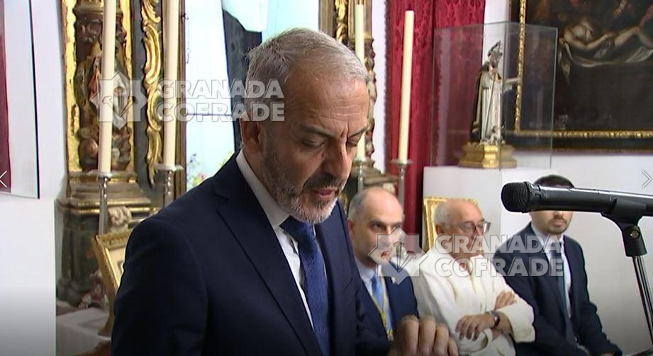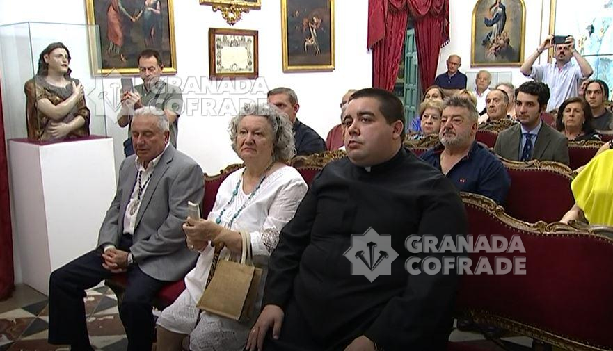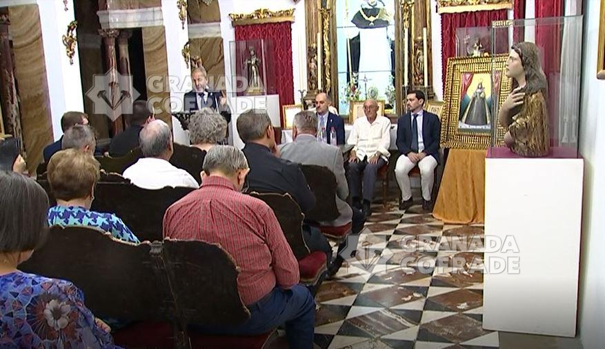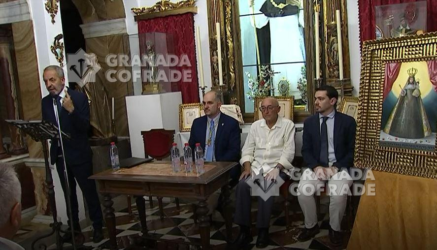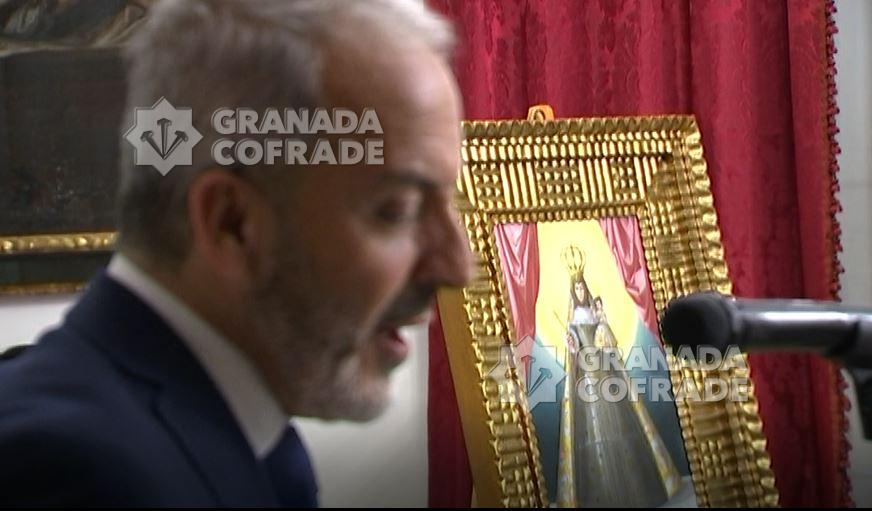 La presentación corrió a cargo del cofrade granadino y presidente de la Asociación de Vecinos del Barrio del Realejo, Antonio López González. Con una prosa impecable, en la que también introdujo algunos versos, describió la obra con palabras cargadas de cariño y devoción hacia la Patrona del Barrio del Realejo. La alocución terminó con una sentida plegaria en la que pidió la protección de la Virgen del Rosario para Granada y el Realejo. «Una obra de arte nacida del abrazo de la historia y la fe, salida del corazón y el talento de nuestro joven pintor», dijo al presentador elogiando toda su trayectoria como artista y señalando que «el cartel está tocado por la devoción mariana de Andrés Carrasco y no tenemos nada más que verlo para afirmarlo, presentada la imagen de la Virgen del Rosario como el trono vivo del Santo Niño en un marco que parece emerger directamente de los cielos donde está Ella sobre un pedestal de flores que parece germinar del suelo de este bendito Realejo».