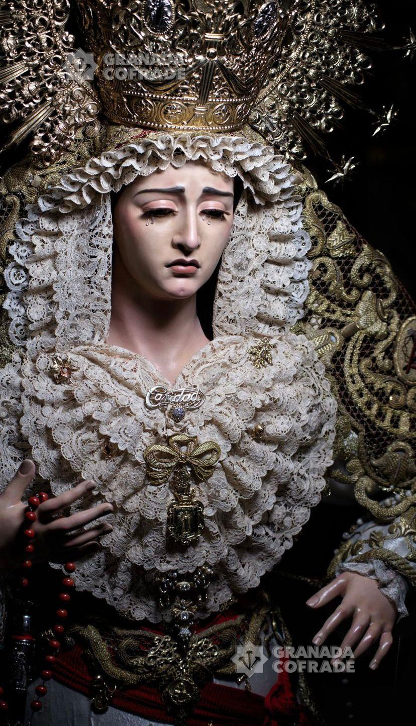 La Virgen de la Caridad, vestida por Álvaro Abril, portaba atributos de reina, así como la vara de concejal donada por Rafael Caracuel y la medalla de la orden de San Juan de Dios, por su vinculación a la misma.