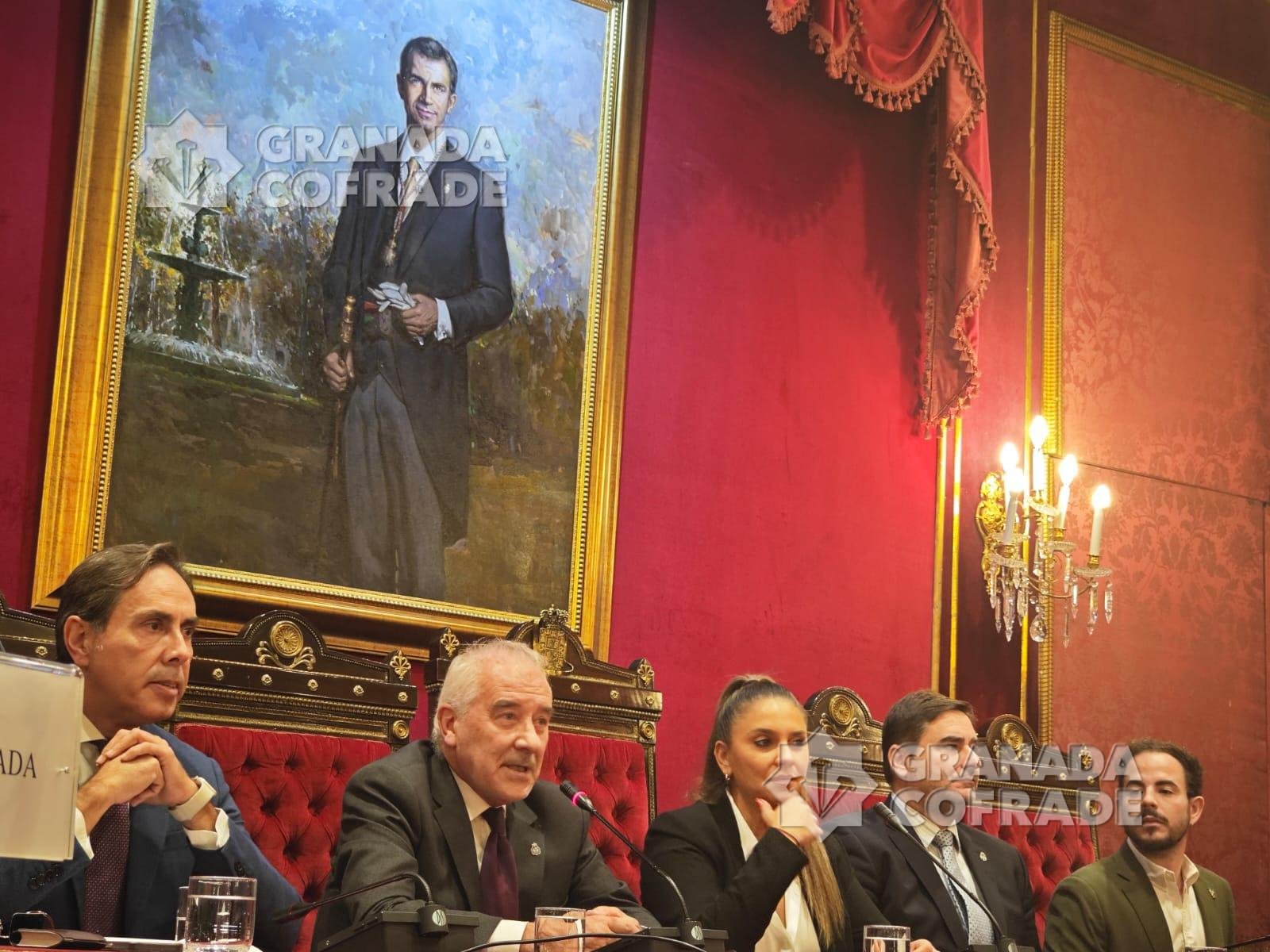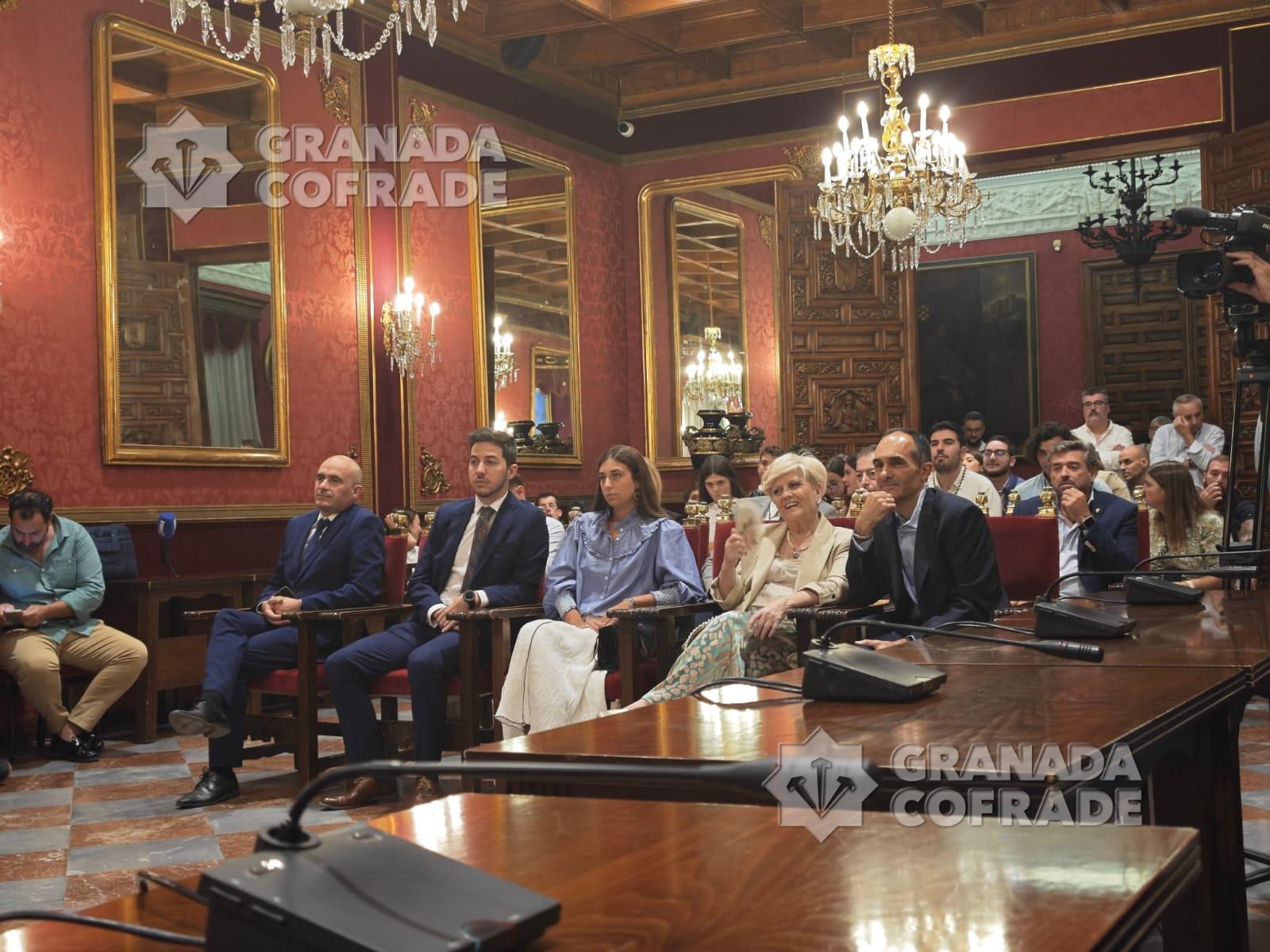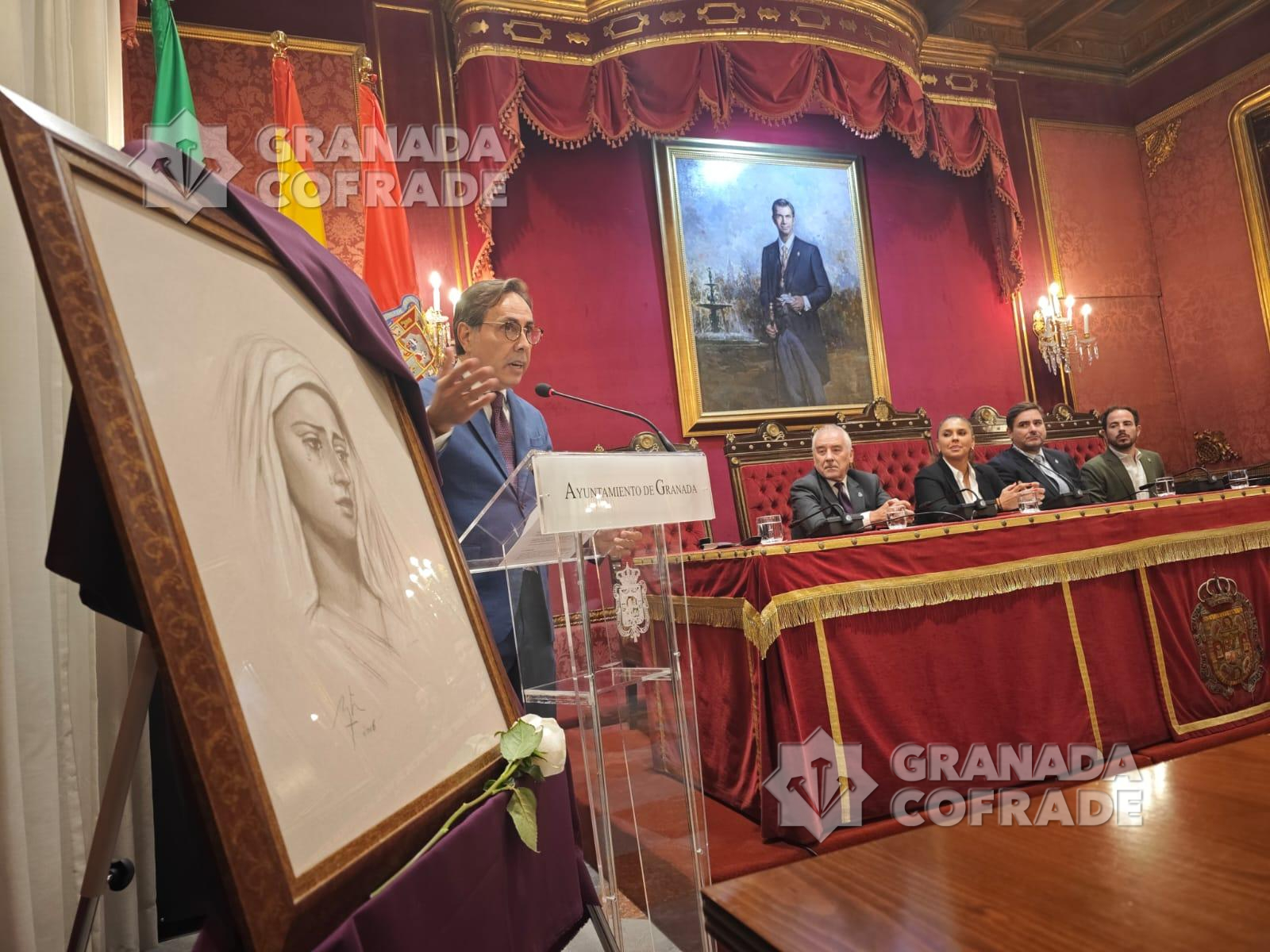 La hermandad de los Escolapios inicia en unos días los actos del vigésimo quinto aniversario «de una celebración doble, la bendición de la Virgen del Mayor Dolor y la peregrinación a Roma con el paso de palio de nuestra Titular. Dos fechas, el 20 de febrero y el 18 de junio que permanecen unidas a la memoria de la cofradía, como indicó el comisario de los acto del aniversario, José Luis Carmona. Fue la hermana mayor, Fátima Sánchez, la encargada de presidir el acto en el Salón de Plenos del Ayuntamiento, lleno de público y hermanos de la corporación. Le acompañó en la presidencia José Valverde Ruiz, autor del logotipo del aniversario que se centra en las palabras «Mayor Dolor» cuyas dos letras iniciales y finales marcan el nombre de Roma, ciudad protagonista de aquella efeméride, como indicó en la presentación. El dibujo de la solería de San Juan de los Florentinos, de Roma, «se convierte en una cenefa que nos recuerda el templo del que partió y al que regresó el cortejo de la peregrinación».
