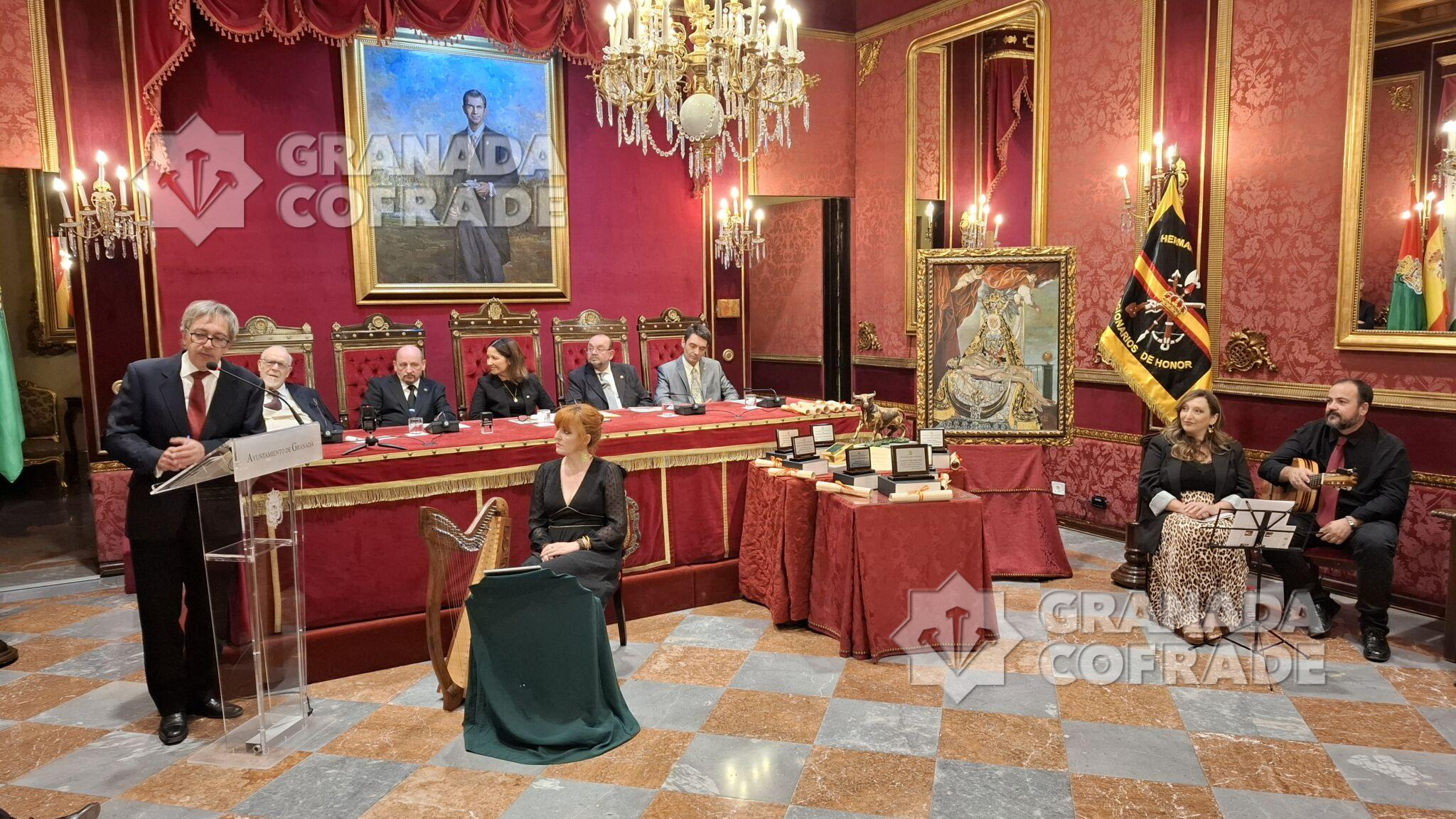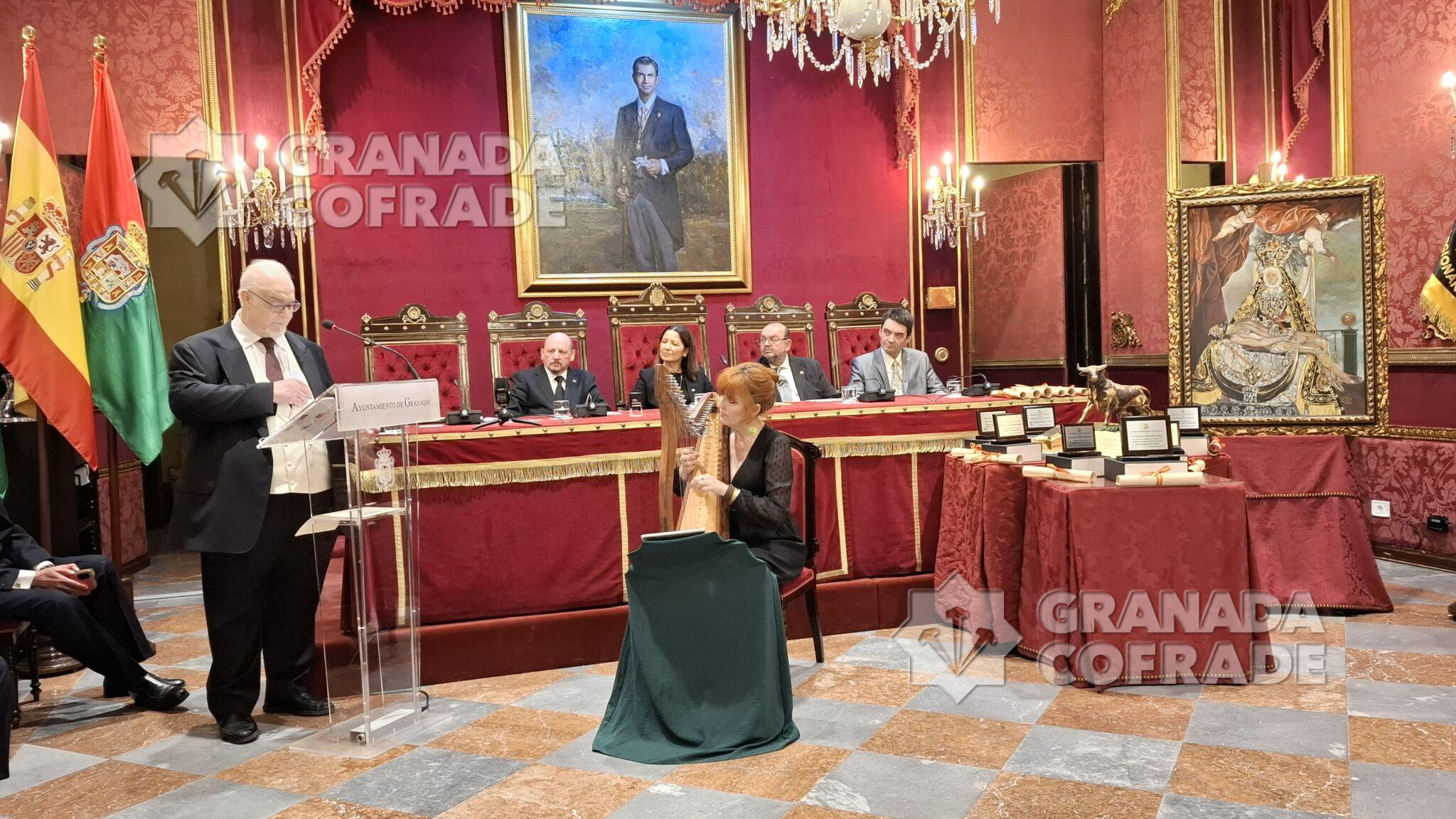 Poemas y textos de Lope de Vega, de Andrés Molinari, de Rafael Delgado o de Miguel Carrascosa fueron sacados a la luz en el pregón que tuvo una duración de poco mas de cuarenta minutos que se vieron acompañados por la arpista Abigail Horro y las poesías recitadas por algunos de sus autores.  Estaba, junto a responsables de la Asociación Cultural y Solidaria “Granada Siempre” el presidente de la Asociación Antonio Méndez quien tuvo también unas palabras de gratitud para todos los participante y de manera especial para el pregonero «por haber aceptado y el empeño que se ha tomado para este día». También participaron en el acto la cantaora flamenca Eva Guirado y el guitarrista Juanma Pinillos.