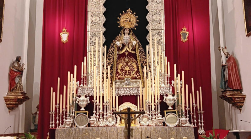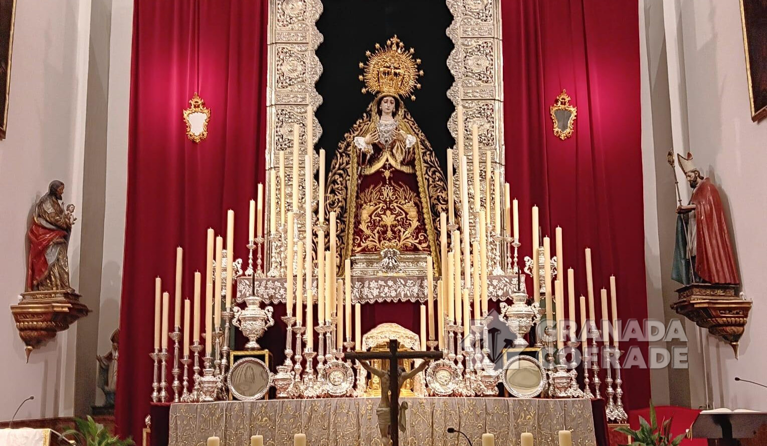 Para la celebración de estos cultos anuales en honor de la Santísima Virgen, la Hermandad ha dispuesto un altar de cultos extraordinario en el presbiterio de San Juan de Letrán. Un altar en el que la principal novedad es el uso de los antiguos respiraderos del paso de palio a modo de dosel.