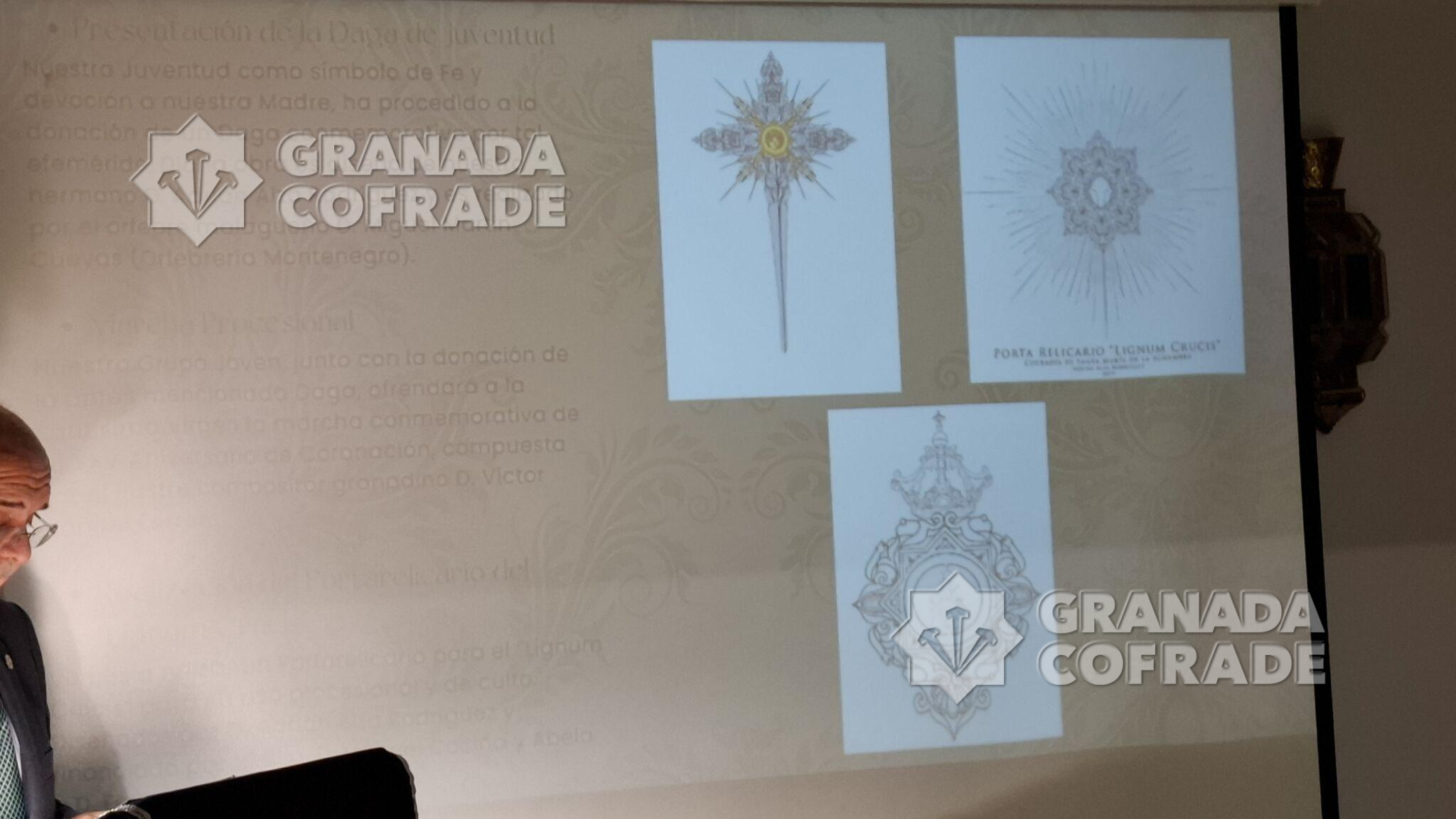 En lo patrimonial se ha diseñado por parte de Adrián Alza una medalla conmemorativa , al igual que un porta relicario que se dispondrá en el crucero de la Cruz del paso de Santa María de la Alhambra, para el Lignum Crucis que posee la hermandad, fruto del regalo ofrecido hace unos años por Manuel Cociña y Fernando Calero. También se estrenará «la daga de juventud» que, con diseño de Alza será ejecutada en orfebrería por el taller malagueño de Manuel Martín Cuevas (Orfebrería Montenegro) y que es una donación del grupo joven de la hermandad. Papeleta de sitio conmemorativa y un trabajo audiovisual serán parte también de los encargos que acometerá la hermandad para este aniversario.