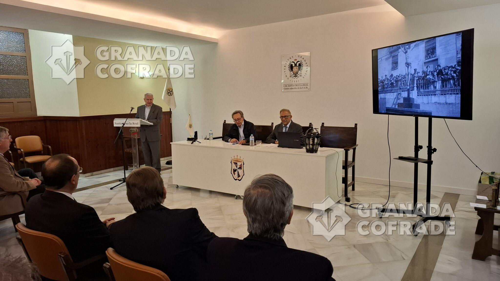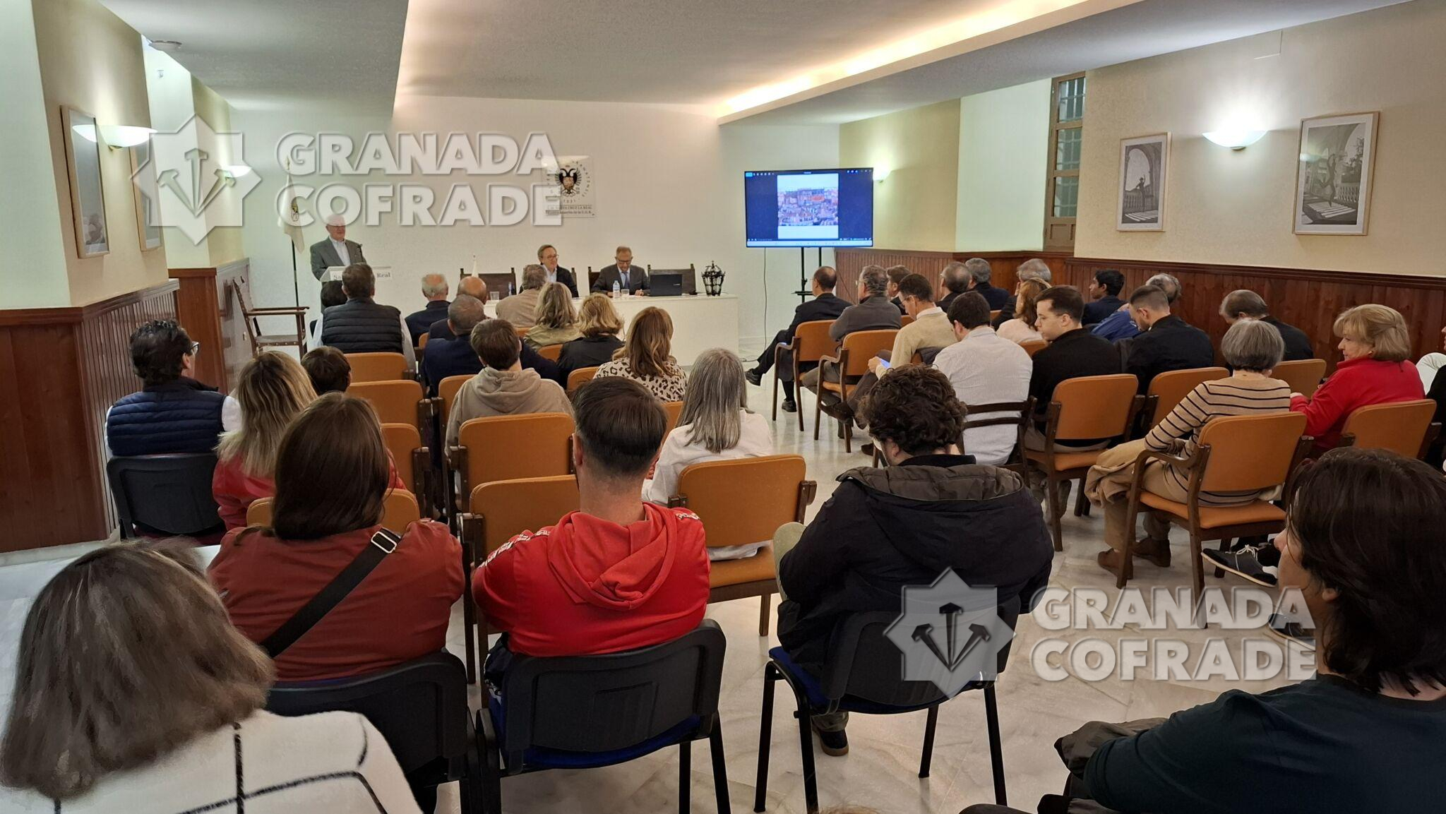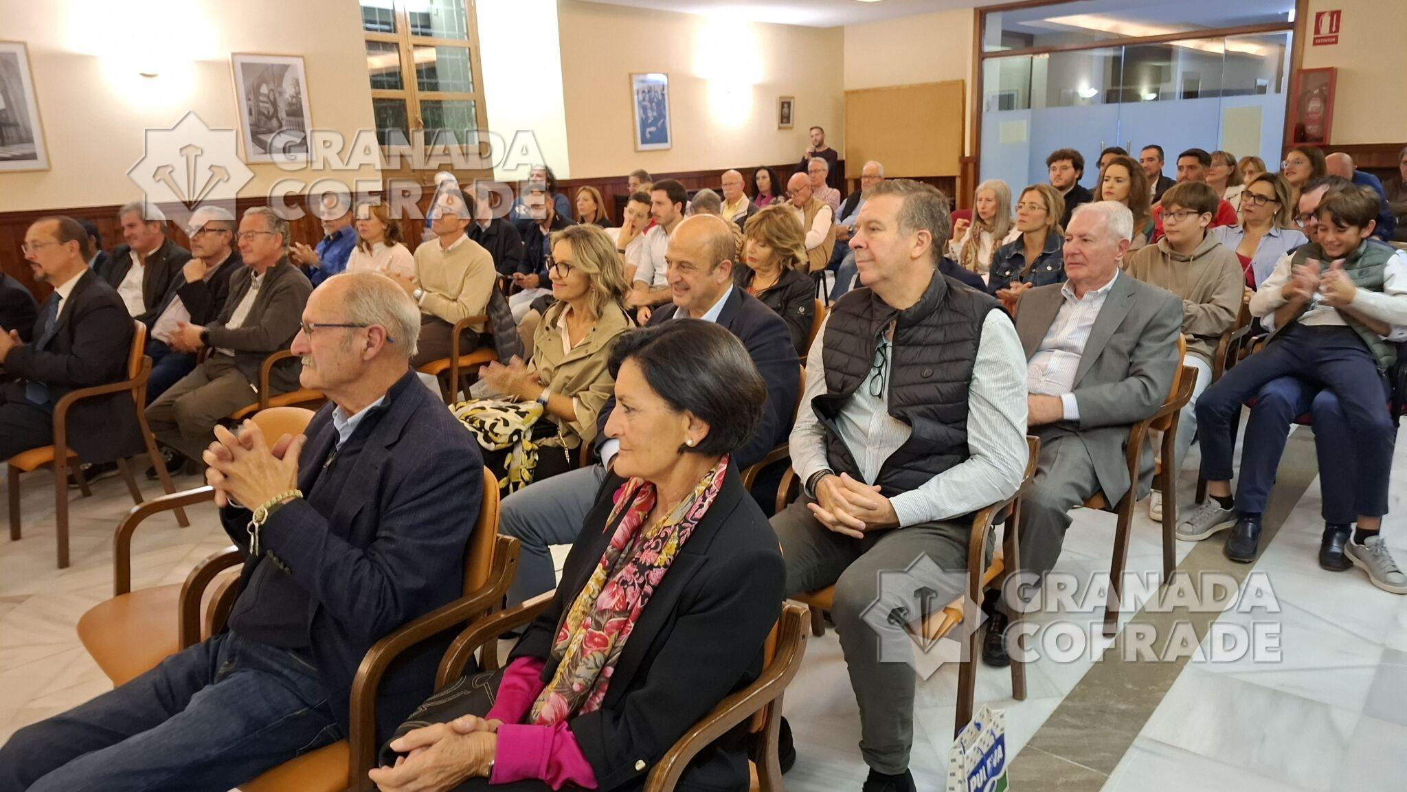 Una conferencia de una hora de duración que mantuvo apresada la atención de un buen número de cofrades de la hermandad y de los asistentes, entre otros el Delegado de Cultura y Turismo de la Junta de Andalucía, Fernando Egea, y de la pregonera de la Semana Santa de 2025, Mamen Sánchez; la hermana mayor del Santo Sepulcro, Blanca Sánchez-Agesta y el coordinador del Congreso Internacional de la religiosidad popular de la ciudad de Taranto, Gigi Montenegro en visita a Granada para preparar distintas actividades para la promoción futura de la Semana Santa de aquella ciudad de la Puglia italiana en nuestra capital.
