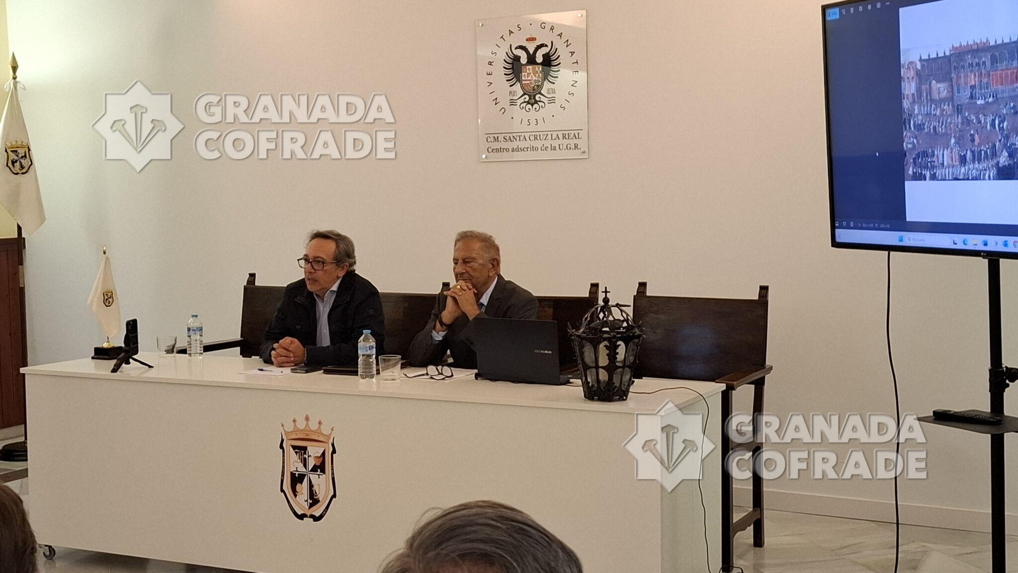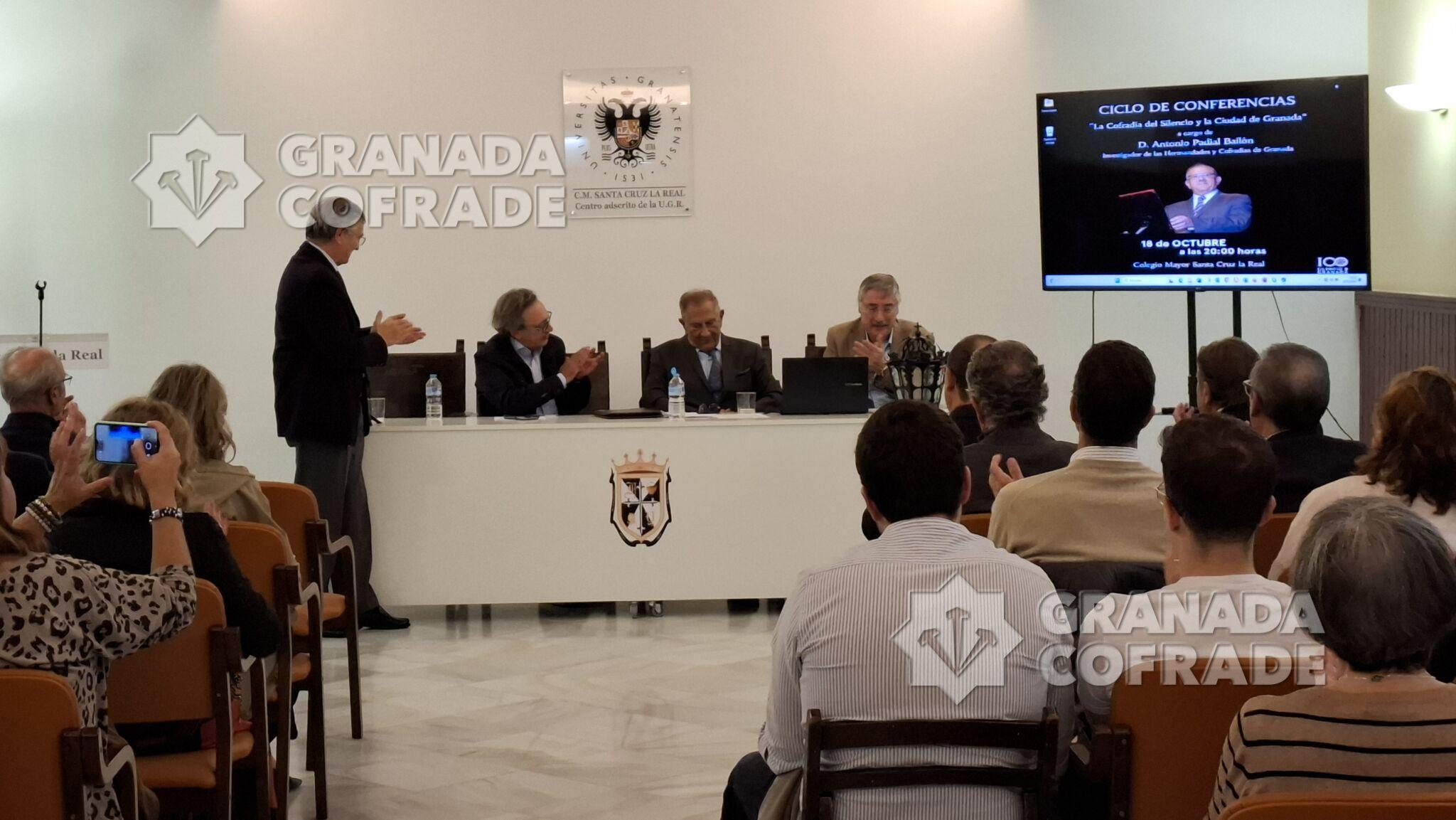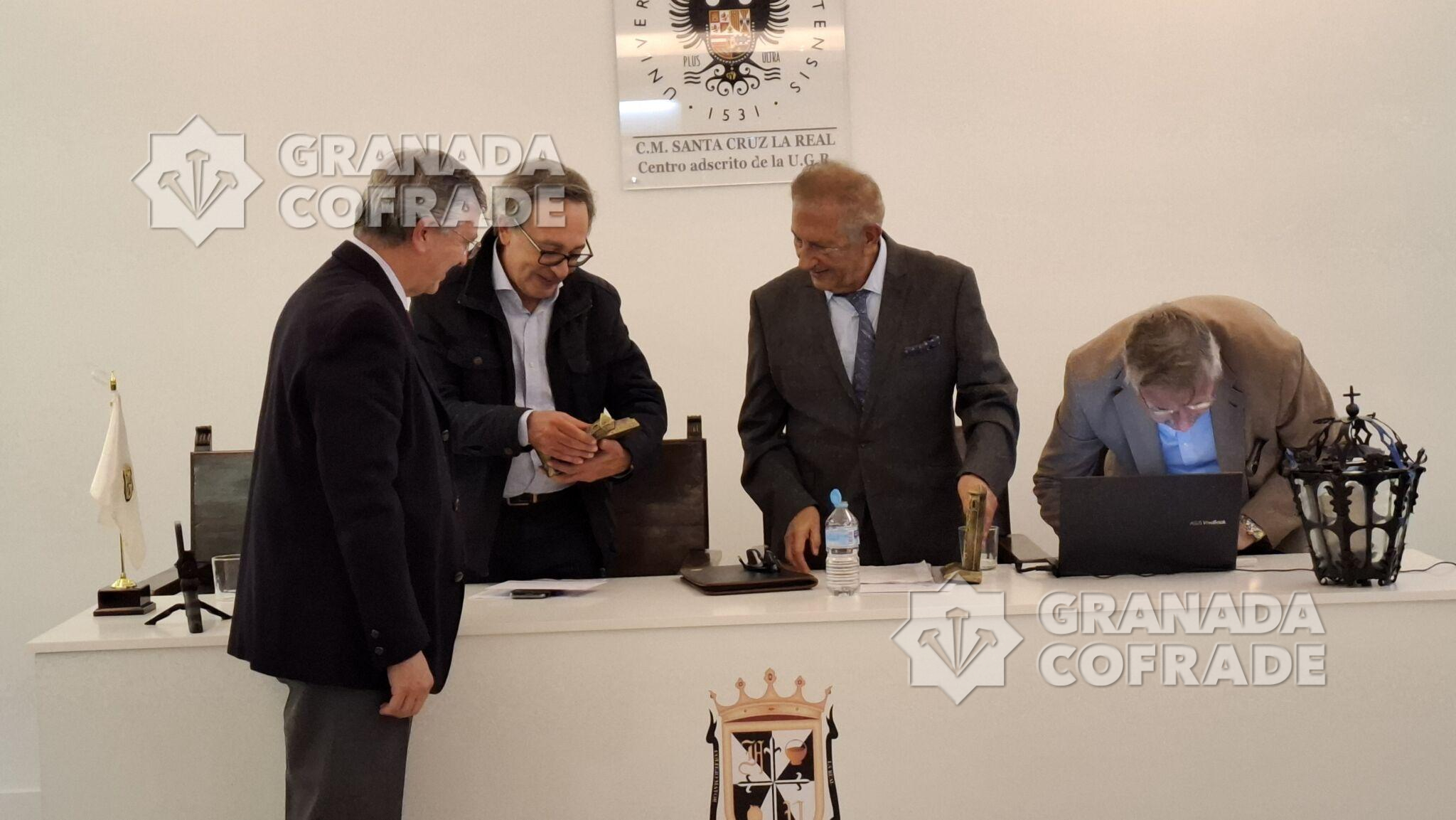 Una conferencia de una hora de duración que mantuvo apresada la atención de un buen número de cofrades de la hermandad y de los asistentes, entre otros el Delegado de Cultura y Turismo de la Junta de Andalucía, Fernando Egea, y de la pregonera de la Semana Santa de 2025, Mamen Sánchez; la hermana mayor del Santo Sepulcro, Blanca Sánchez-Agesta y el coordinador del Congreso Internacional de la religiosidad popular de la ciudad de Taranto, Gigi Montenegro en visita a Granada para preparar distintas actividades para la promoción futura de la Semana Santa de aquella ciudad de la Puglia italiana en nuestra capital.
