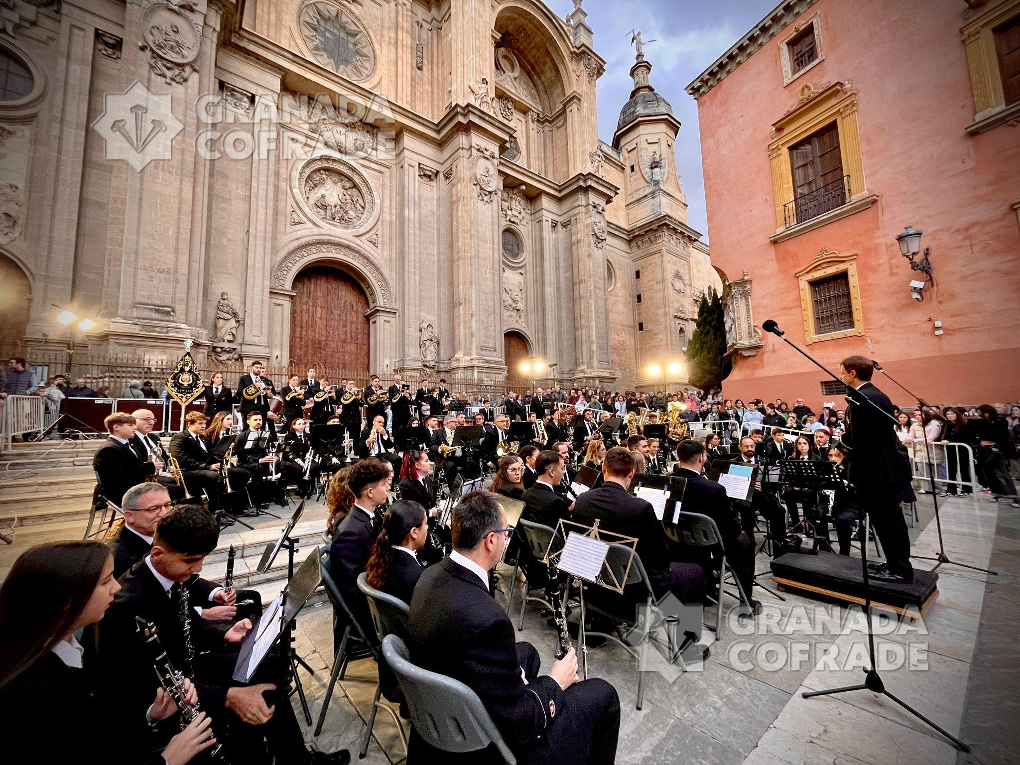 Pudo intervenir la banda San Isidro, de Armilla, que ofreció todo el programa previsto bajo la dirección de Melchor Perelló. Después le tocaba a la Agrupación Musical Dulce Nombre de Jesús pero no llegó a cumplir con todas las marcha previstas porque la lluvia irrumpió con más fuerza y hubo de interrumpirse el concierto y suspenderse sin que llegara a tocar la banda «Jesús del Rescate» que hubierse cerrado el acto en la plaza de las Pasiegas y que consiguió un lleno total de la misma.