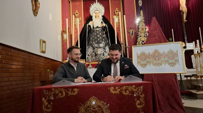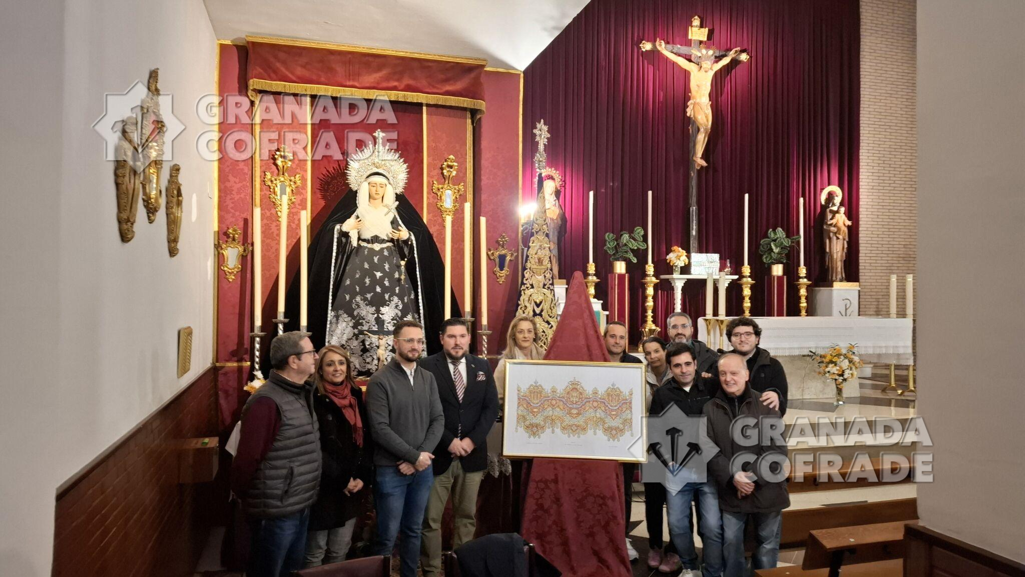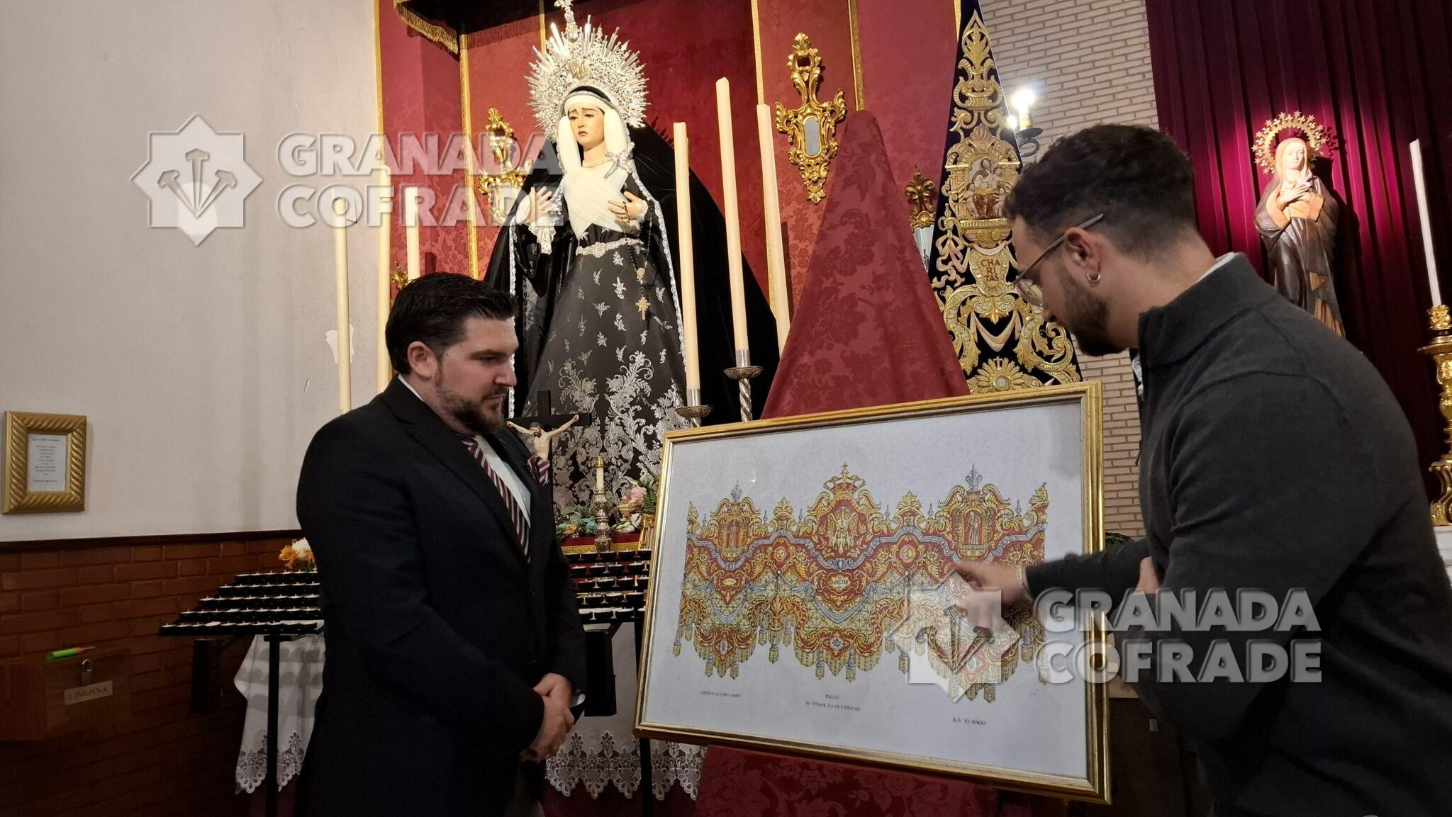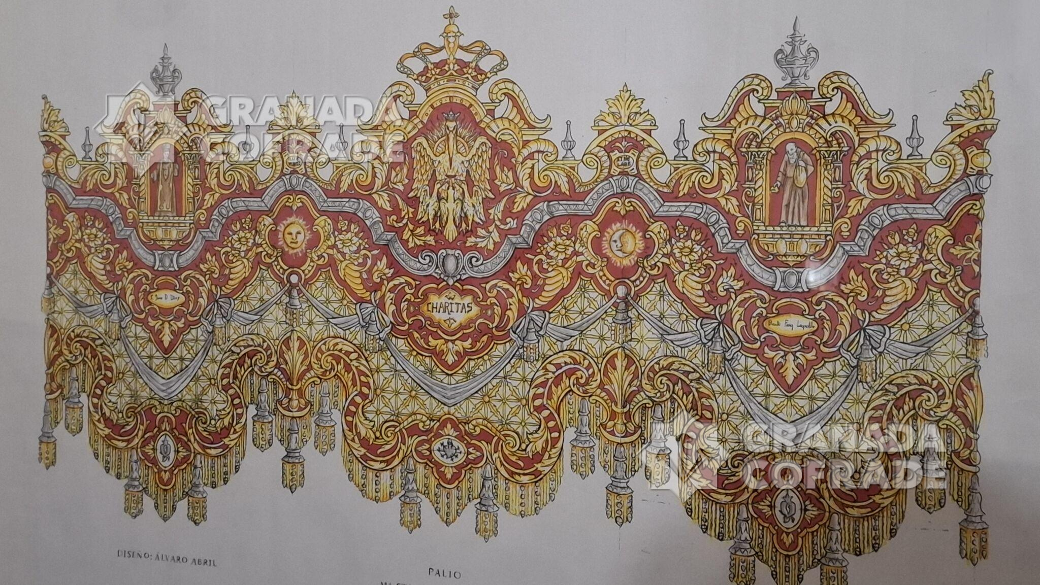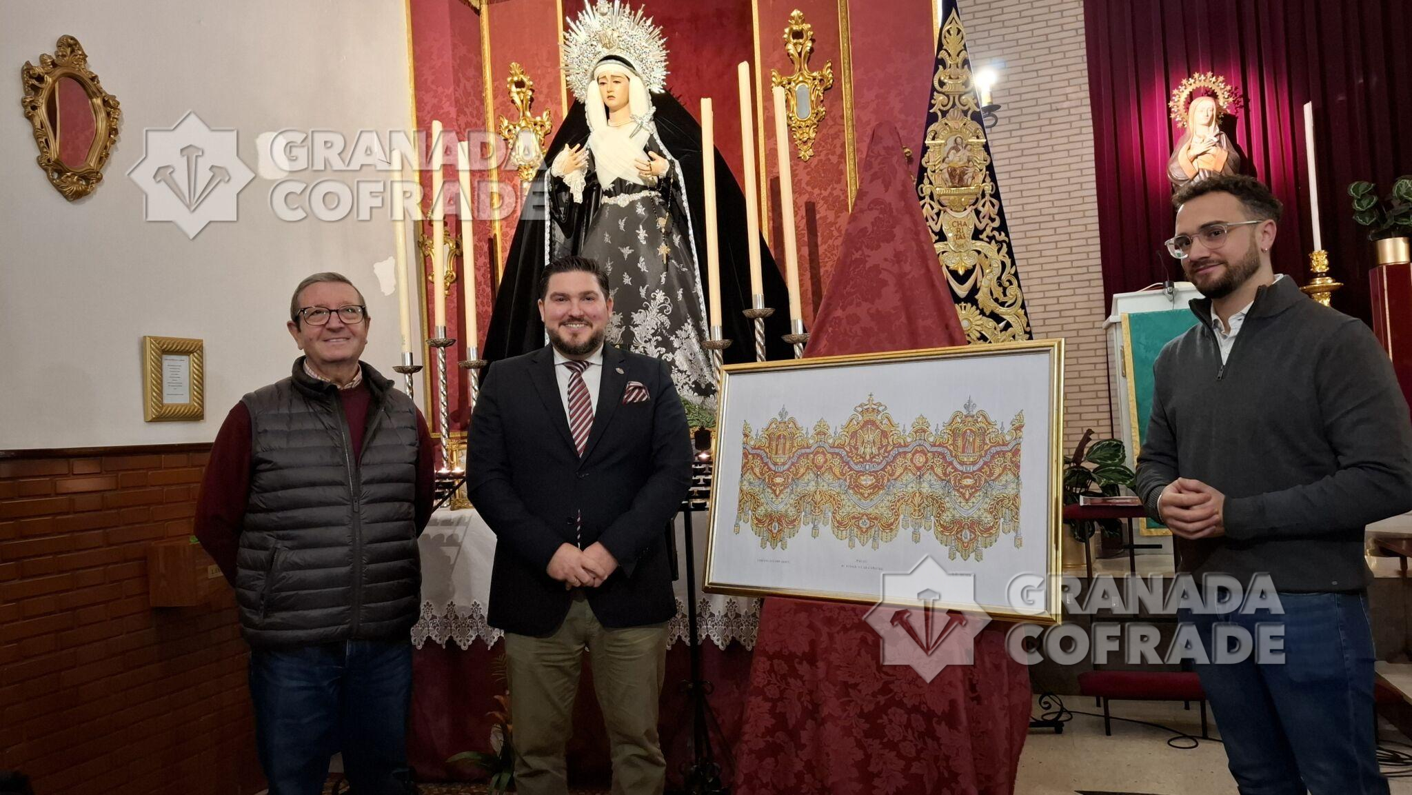 Firmó anoche la hermandad de la Sagrada Lanzada el comienzo del bordado exterior de su bambalina frontal. Un trabajo que encomienda para su ejecución por fases y que se espera comenzar a ver a partir de la Semana Santa de 2026. Alejandro López García comentó a GRANADA COFRADE que «es ciertamente mi primer trabajo en solitario después de trece años de colaboración en el taller de Álvaro Abril y la verdad es que estoy muy ilusionado y agradezco a la cofradía el apoyo y respaldo dado a mi trabajo». Empleará para ello todo tipo de técnicas y de puntadas, de las habituales del bordado andaluz y recuerda que es un diseño de Álvaro Abril Vela, siguiendo líneas barrocas.