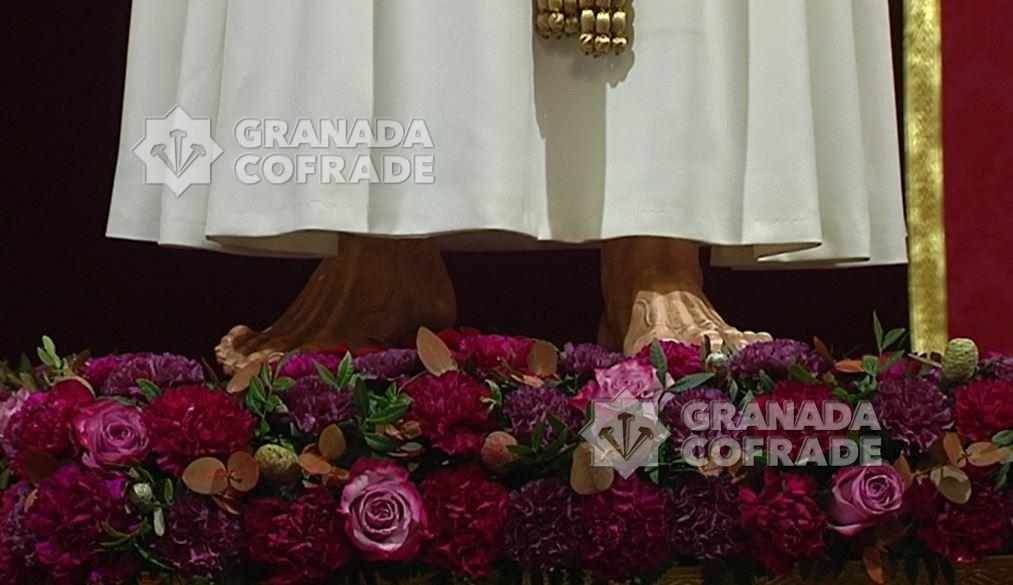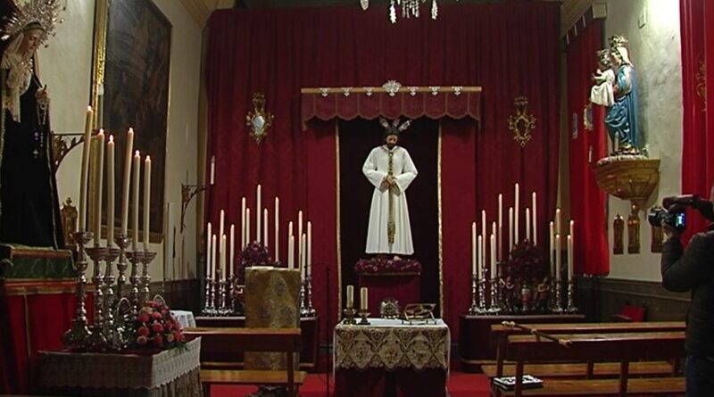 La imagen de Nuestro Padre Jesús Cautivo presidió el templo conventual de Clarisas Franciscanas de la placeta de la Encarnación en la festividad de Cristo Rey. Una cita que sirvió para presentar al Titular de esta hermandad del Domingo de Ramos de manera elegante y sobria, respaldada por un gran telón de fondo de color rojo y adelantado el Señor Cautivo sobre plinto también en el mismo color. Vestía, como es tradicional, túnica blanca y a los lados de la imagen se había situado sendos paños de cera con quince candeleros cada uno.