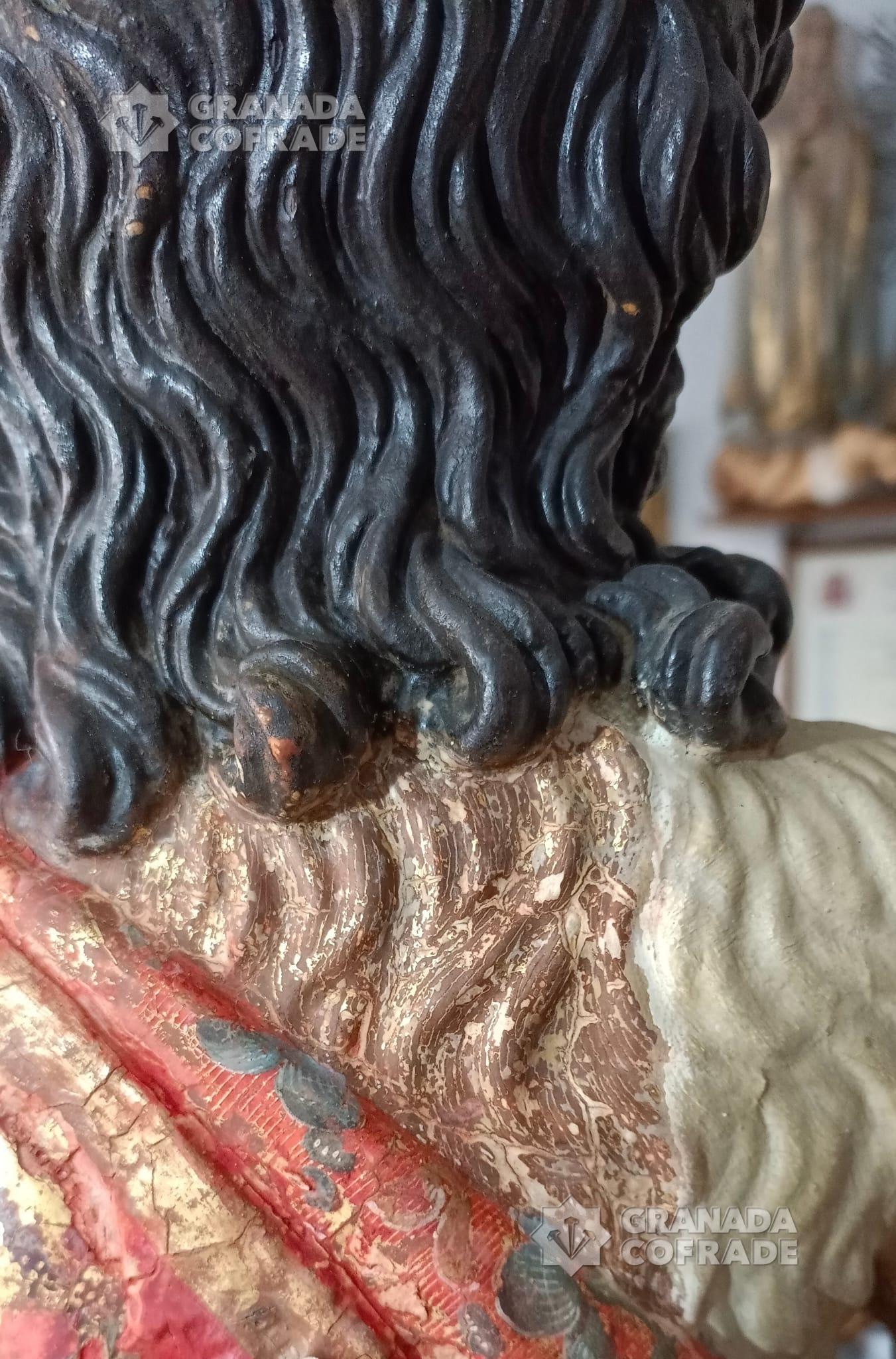 La imagen de San Juanito, obra atribuida a Alonso de Mena, de la parroquia granadina de Viznar, está siendo sometido a una profunda intervención para su restauración y los resultados hasta ahora conocidos son de una extraordinaria calidad. El escultor granadino de finales del siglo XVI y primera mitad del XVII, ofrece en esta talla de pequeño tamaño una rica obra de modelado pero especialmente un detalla de gran valor en el estofado de las vestimentas que están siendo descubiertas en este proceso. La intervención corre a cargo del restaurador granadino José Enrique Parro, autor de muchos trabajos en la Alhambra o en numerosas obras distribuidas por la geografía granadina, amén de trabajos ejecutados en el retablo de Jesús del Rescate de la parroquia de la Magdalena y en la misma imagen de Jesús del Rescate o la de San José y el Niño Jesús que actualmente está en el Museo de Bellas Artes en la exposición sobre Ruiz del Peral, obra de Diego de Mora o la imagen de San Miguel Arcángel, del siglo XVIII Patrón de Cullar Vega.