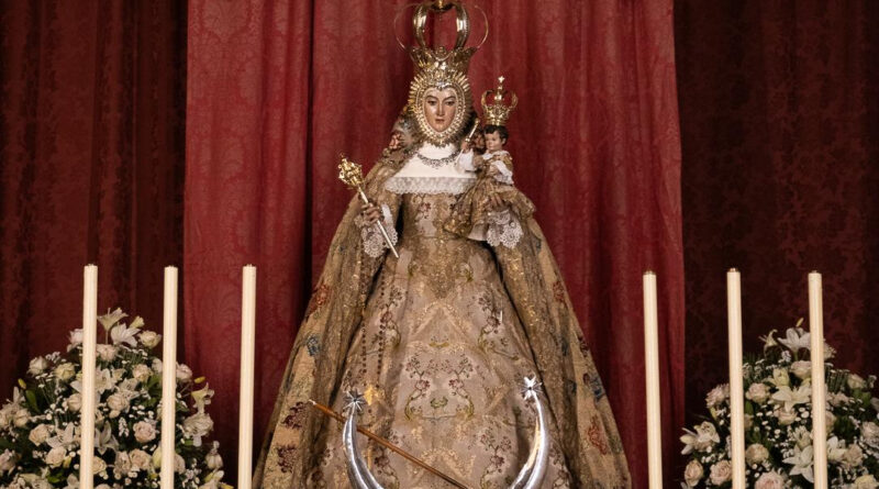 Desde el pasado día 10 de diciembre, la Santísima Virgen del Rosario Coronada se encuentra en la Capilla de Santa Catalina de Siena. Con motivo de las obras que se acometerán en el antecamarín de la Inmaculada y la instalación de una red de seguridad en las cornisas y cúpula de la Iglesia de Santo Domingo, la venerada Titular de la Archicofradía dominica recibirá culto en los próximos meses en la mencionada capilla de parroquia, junto a la Patrona de la Fraternidad laical de Santo Domingo.