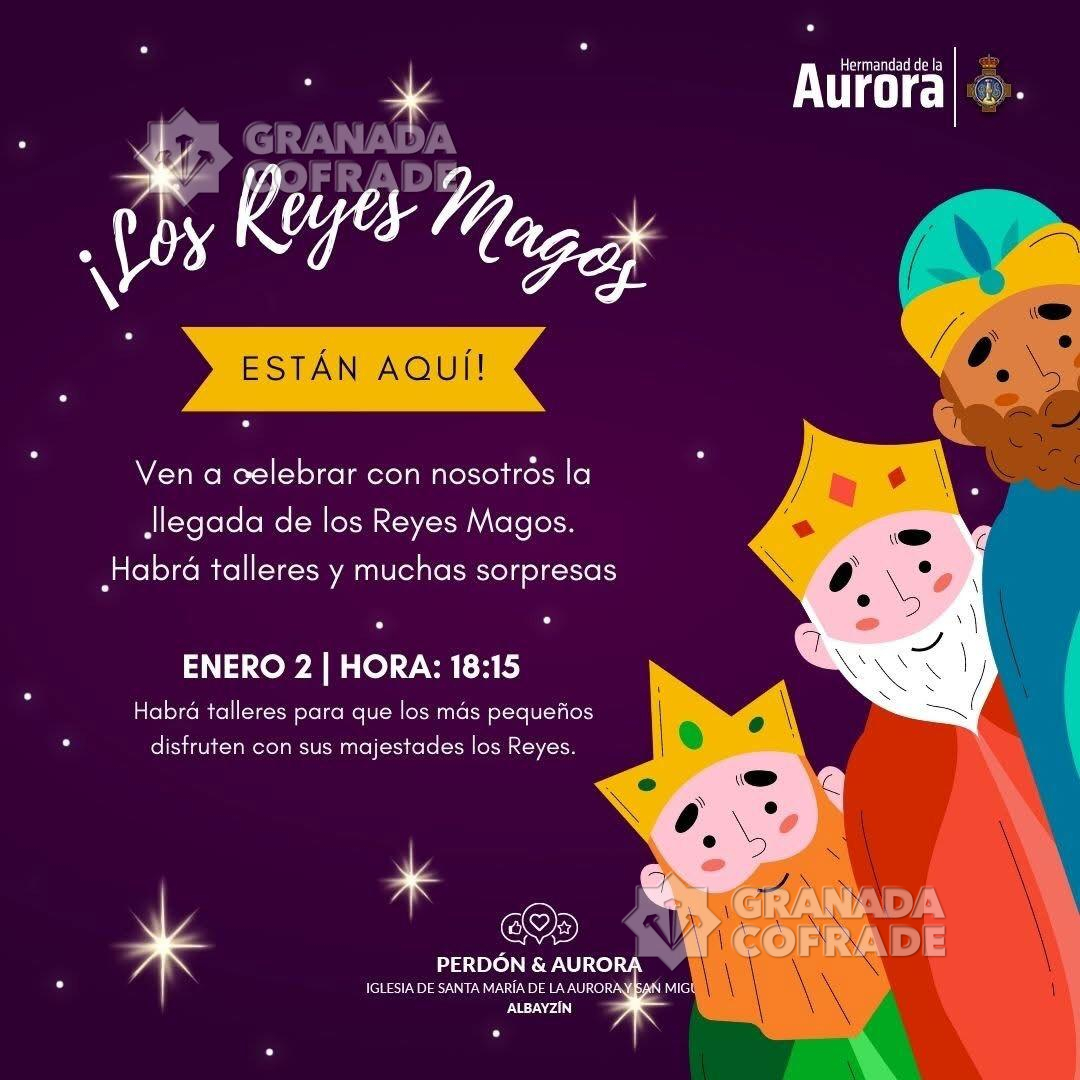 Sus Majestades los Reyes Magos, formarán parte del cortejo del mismo, acompañados por los más jóvenes de la Hermandad. Y las andas en las que se portará al Niño Dios  irán acompañadas musicalmente por el Coro de María Auxiliadora de la Alhambra de Granada. El cortejo saldrá a las 17:30 horas  y llegará a las 18:15 horas.