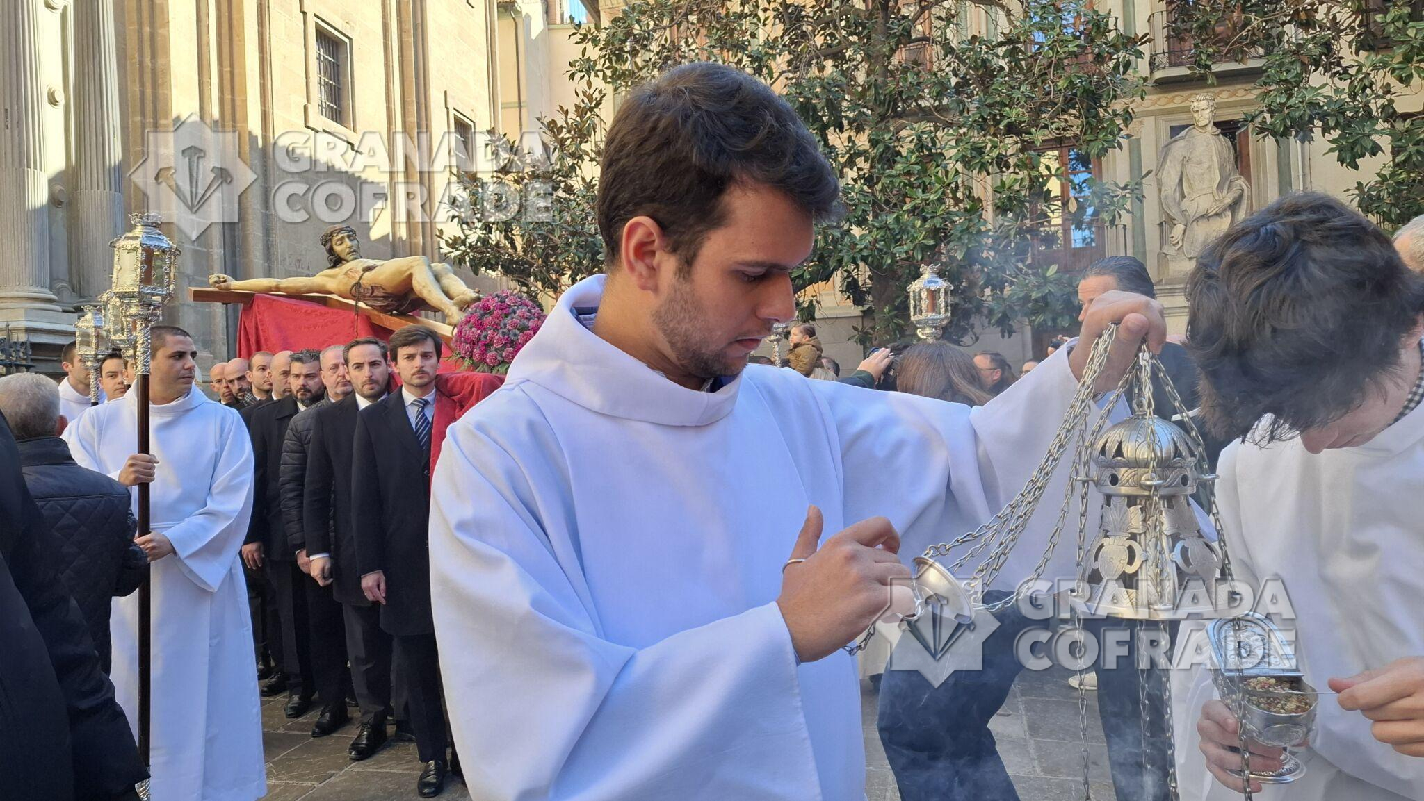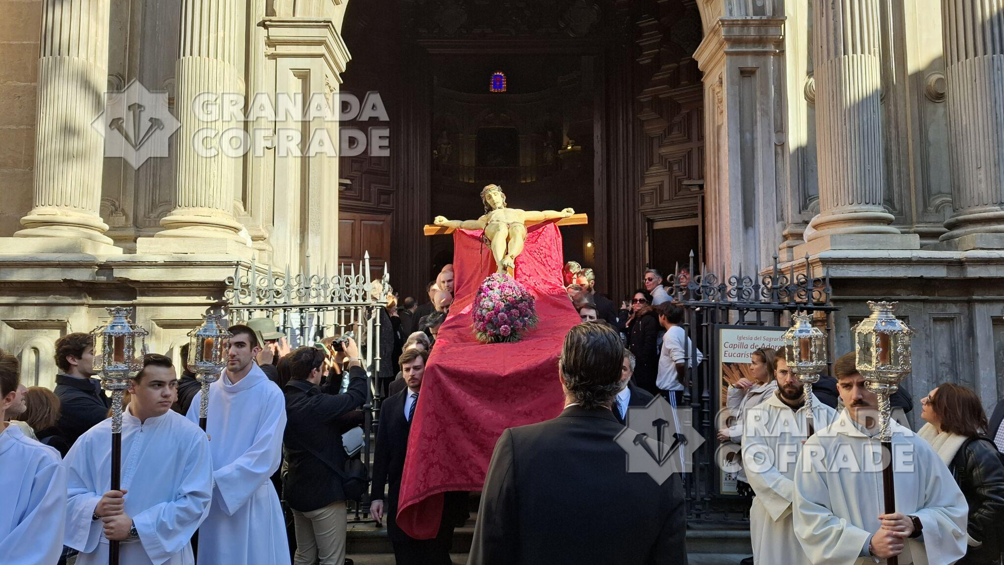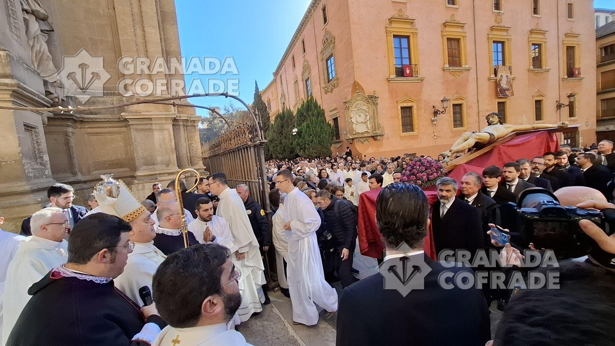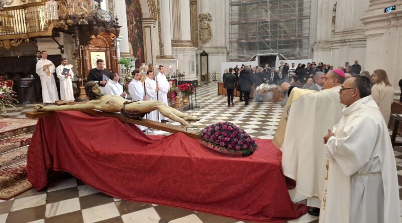 La Catedral de Granada se llenó de fieles para la apertura del Año Jubilar decretado por el Papa Francisco para la celebración del 2025 aniversario del nacimiento de Jesús. Un año jubilar que se celebra cada 25 años en todo el orbe católico y que estuvo presidido por la imagen del Santísimo Cristo de la Misericordia, del Silencio. Se había trasladado por la mañana la imagen del Crucificado desde San José hasta el Sagrario y con posterioridad se procesionó la imagen desde el templo del Sagrario hasta la puerta principal de la Catedral donde fue recibido por el arzobispo Gil Tamayo y se depositó a las plantas del presbiterio. Medio centenar de sacerdotes concelebraron la Eucaristía de Apertura. El hermano mayor de la cofradía de la parroquia de San José manifestó a nuestra redacción «el enorme honor que supone para nosotros y para toda la hermandad que nuestro Titular se escogiera para presidir el Año Jubilar en el interior de la Catedral» y recordó como en 2009 «estuvo en el Sagrario para el quinario de cuaresma y la función principal en el interior de la Catedral, con motivo del 75 aniversario de la fundación de la cofradía que ahora ya está en su centenario».