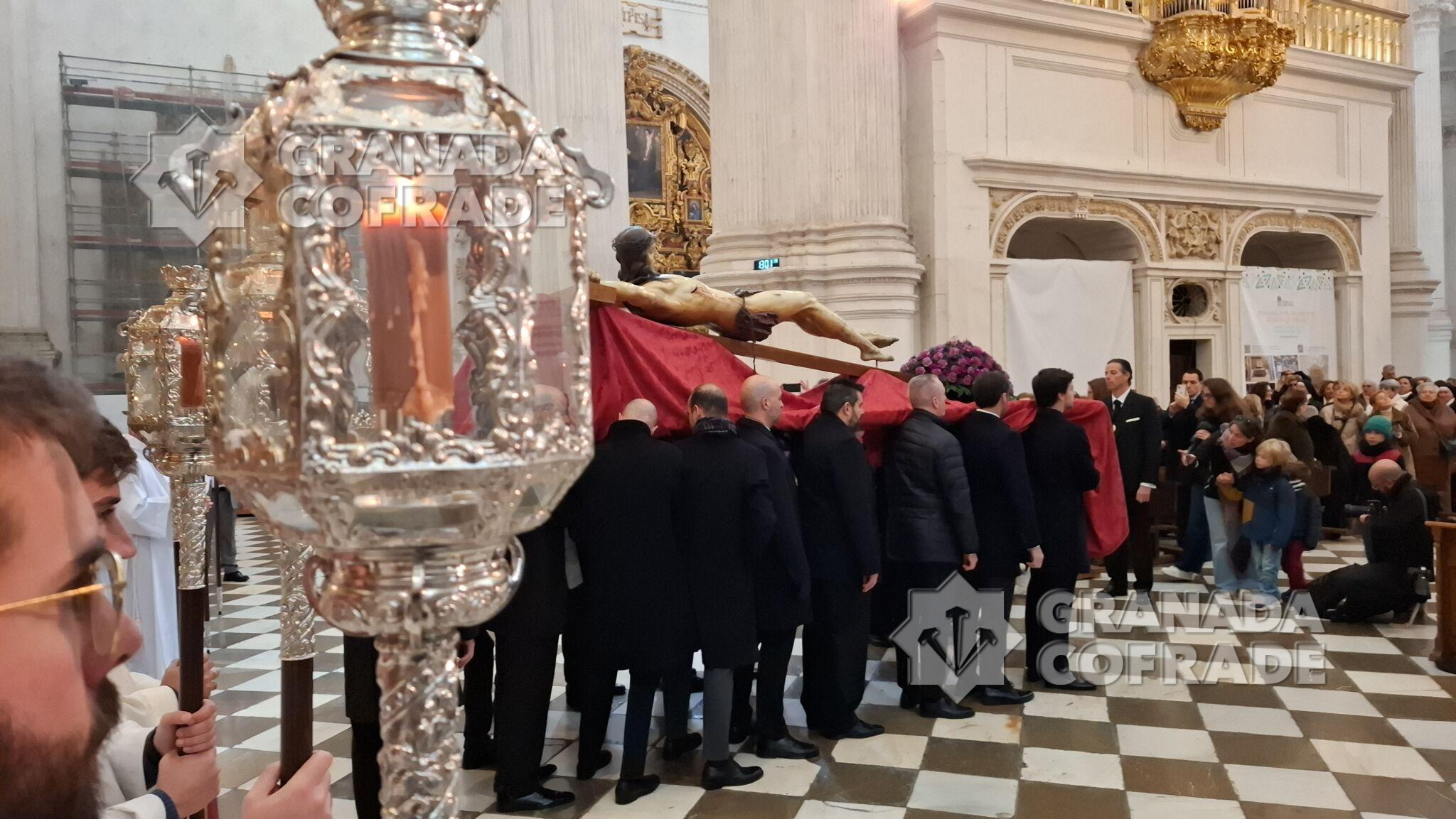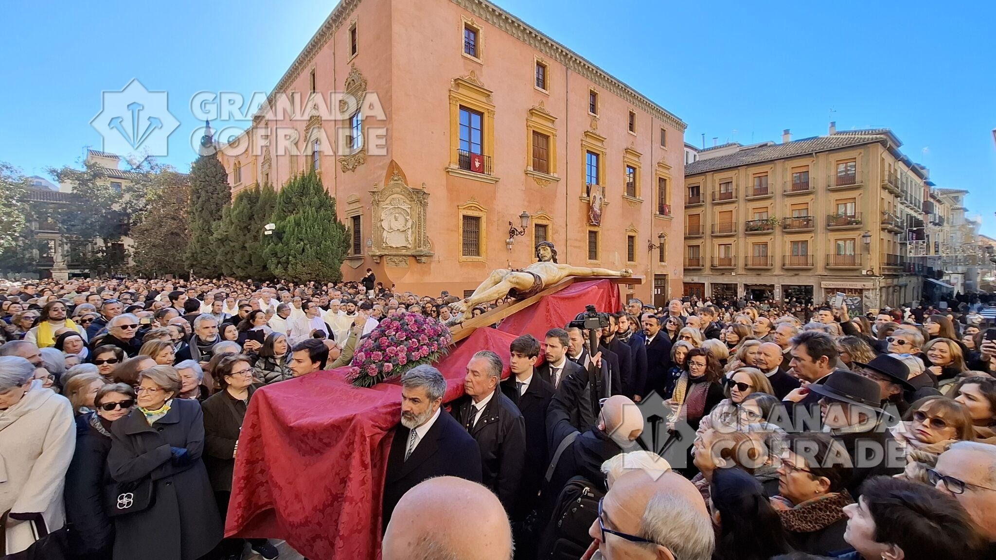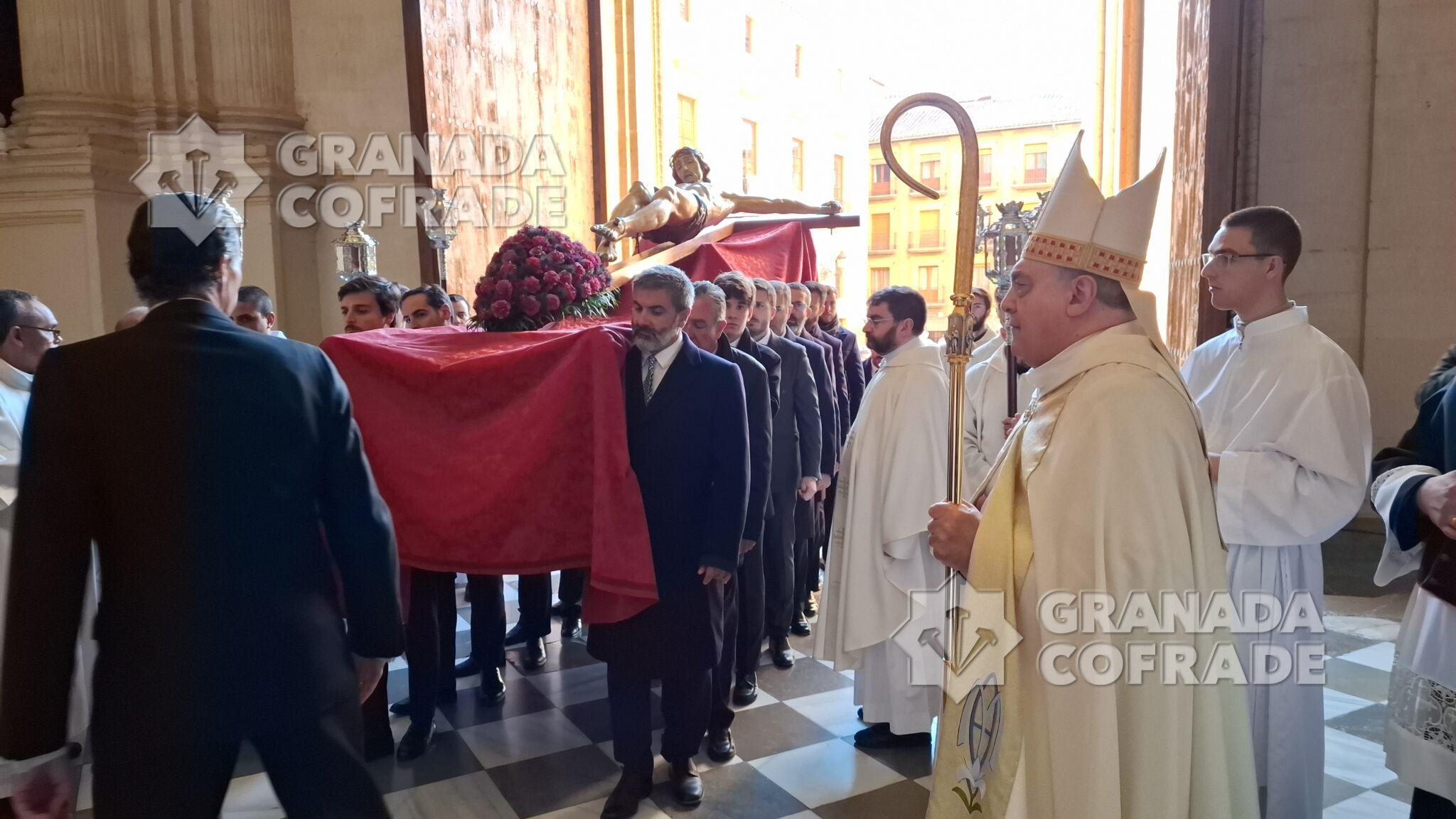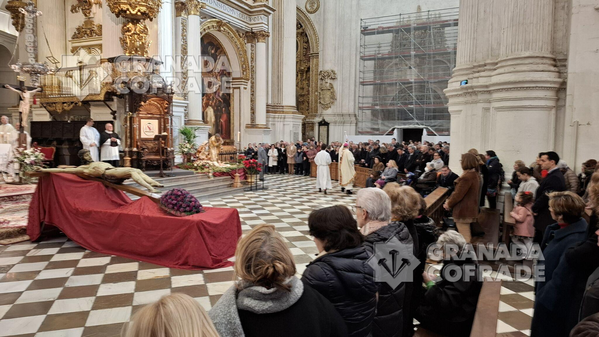 La Catedral de Granada se llenó de fieles para la apertura del Año Jubilar decretado por el Papa Francisco para la celebración del 2025 aniversario del nacimiento de Jesús. Un año jubilar que se celebra cada 25 años en todo el orbe católico y que estuvo presidido por la imagen del Santísimo Cristo de la Misericordia, del Silencio. Se había trasladado por la mañana la imagen del Crucificado desde San José hasta el Sagrario y con posterioridad se procesionó la imagen desde el templo del Sagrario hasta la puerta principal de la Catedral donde fue recibido por el arzobispo Gil Tamayo y se depositó a las plantas del presbiterio. Medio centenar de sacerdotes concelebraron la Eucaristía de Apertura. El hermano mayor de la cofradía de la parroquia de San José manifestó a nuestra redacción «el enorme honor que supone para nosotros y para toda la hermandad que nuestro Titular se escogiera para presidir el Año Jubilar en el interior de la Catedral» y recordó como en 2009 «estuvo en el Sagrario para el quinario de cuaresma y la función principal en el interior de la Catedral, con motivo del 75 aniversario de la fundación de la cofradía que ahora ya está en su centenario».