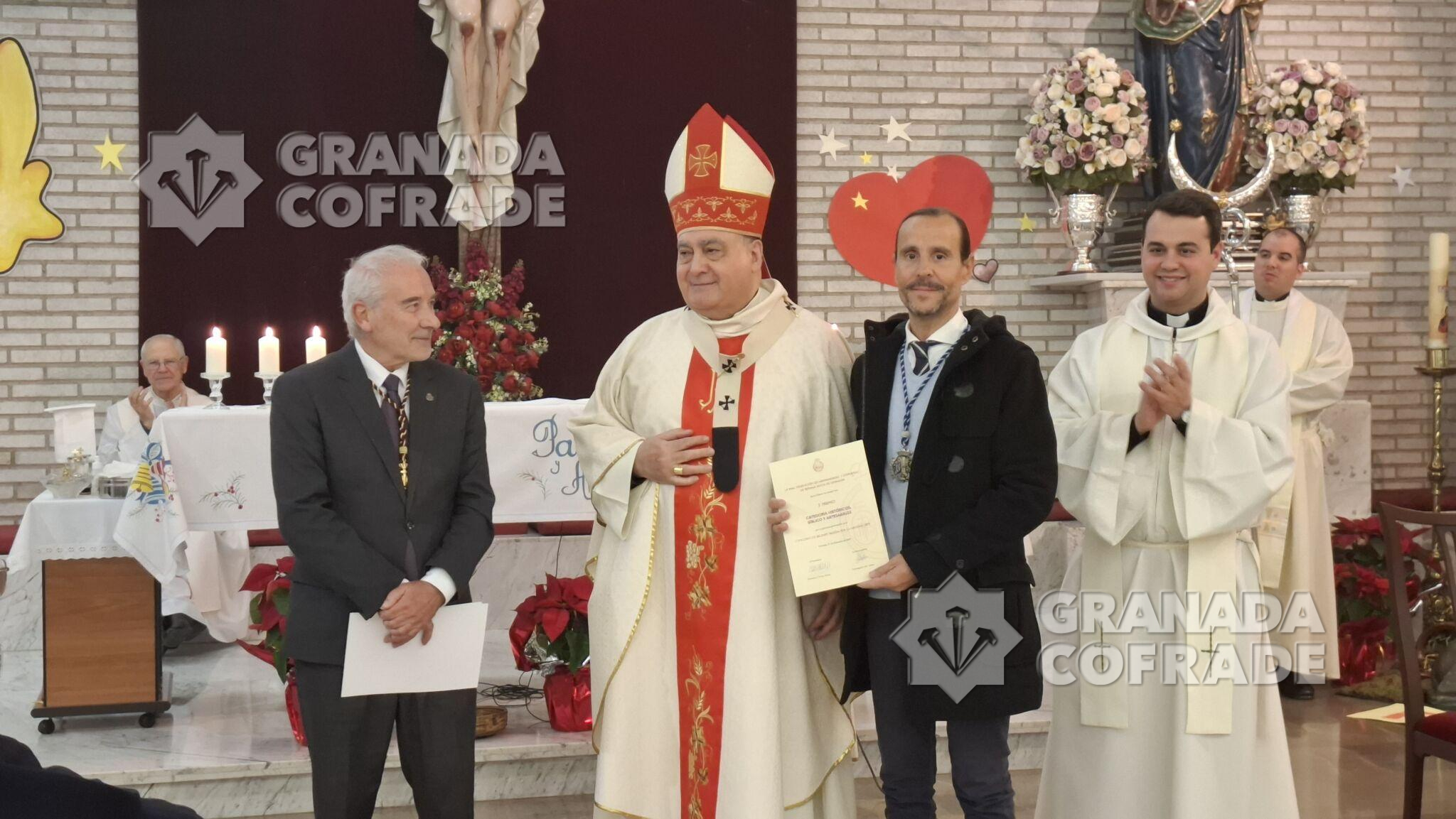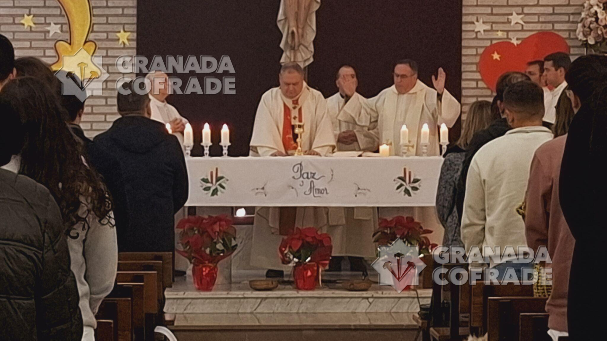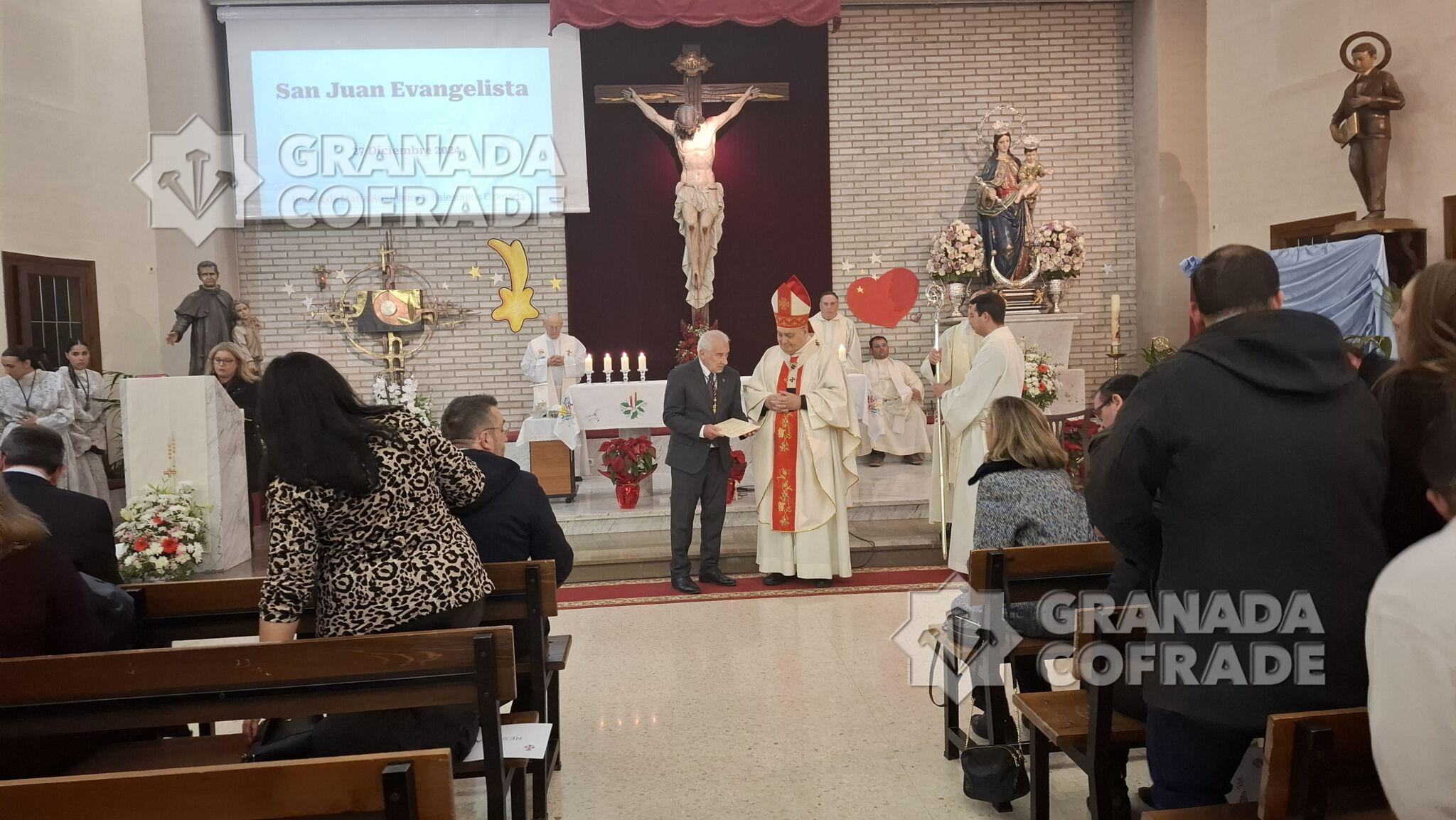 Monseñor Gil Tamayo presidió anoche, por tercer año consecutivo la celebración de la festividad de San Juan Evangelista, Patrón de la Juventud Cofrade, en esta ocasión en el templo zaidinero de María Auxiliadora, sede de la hermandad de penitencia del Santísimo Cristo de la Redención. Una celebración religiosa que fue muy participativa de los grupos jóvenes de las hermandades de la ciudad llenando por completo el templo salesiano. La Eucaristía estuvo concelebrada por el Delegado Episcopal para las hermandades y cofradías, José Gabriel Martín; el Delegado Episcopal para la Pastoral de Juventud, Luis Miguel Sánchez; Javier Ortega, Delegado Episcopal de Pastoral Infantil y Vocacional, y el consiliario de la hermandad salesiana, Juan Fuentes y el secretario personal del arzobispo, David Salcedo. Estaba presente el presidente de la Federación de Cofradías, Armando Ortiz, y su junta de gobierno con la reciente remodelación y las incorporaciones al equipo, a excepción del vocal de arte y ornato por encontrarse ausente de Granada.