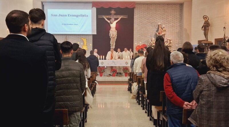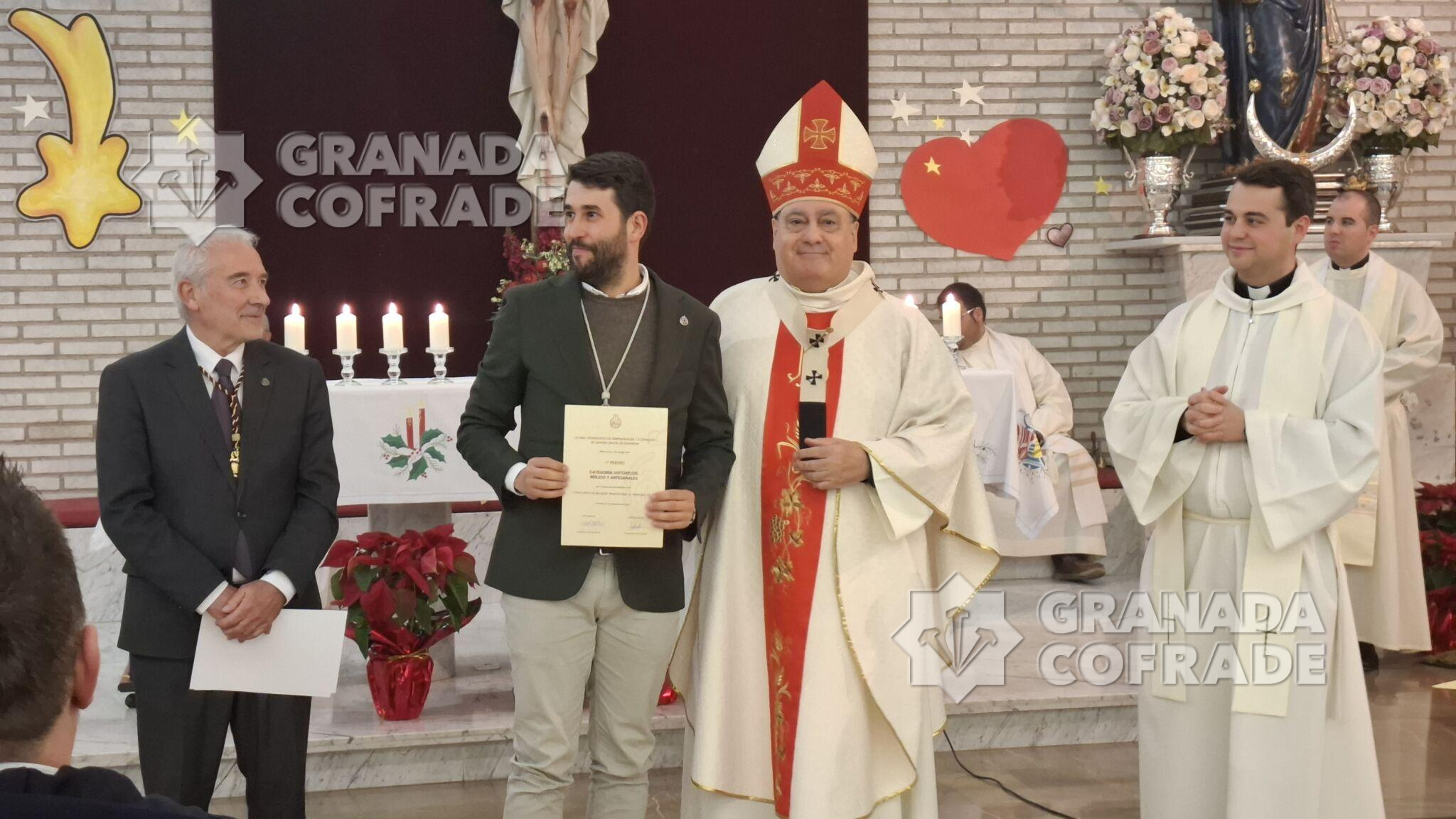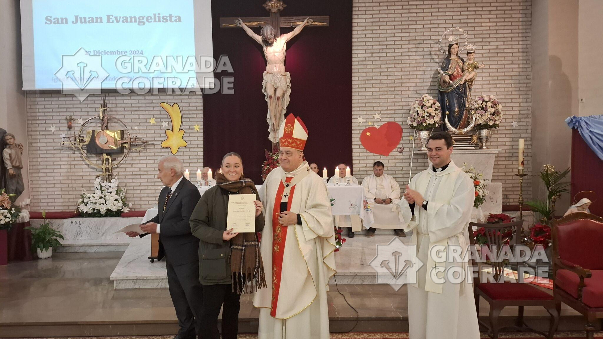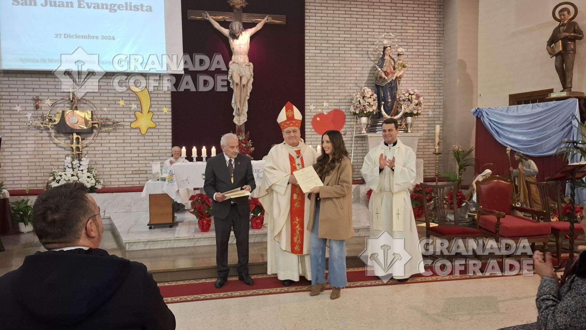 Monseñor Gil Tamayo presidió anoche, por tercer año consecutivo la celebración de la festividad de San Juan Evangelista, Patrón de la Juventud Cofrade, en esta ocasión en el templo zaidinero de María Auxiliadora, sede de la hermandad de penitencia del Santísimo Cristo de la Redención. Una celebración religiosa que fue muy participativa de los grupos jóvenes de las hermandades de la ciudad llenando por completo el templo salesiano. La Eucaristía estuvo concelebrada por el Delegado Episcopal para las hermandades y cofradías, José Gabriel Martín; el Delegado Episcopal para la Pastoral de Juventud, Luis Miguel Sánchez; Javier Ortega, Delegado Episcopal de Pastoral Infantil y Vocacional, y el consiliario de la hermandad salesiana, Juan Fuentes y el secretario personal del arzobispo, David Salcedo. Estaba presente el presidente de la Federación de Cofradías, Armando Ortiz, y su junta de gobierno con la reciente remodelación y las incorporaciones al equipo, a excepción del vocal de arte y ornato por encontrarse ausente de Granada.