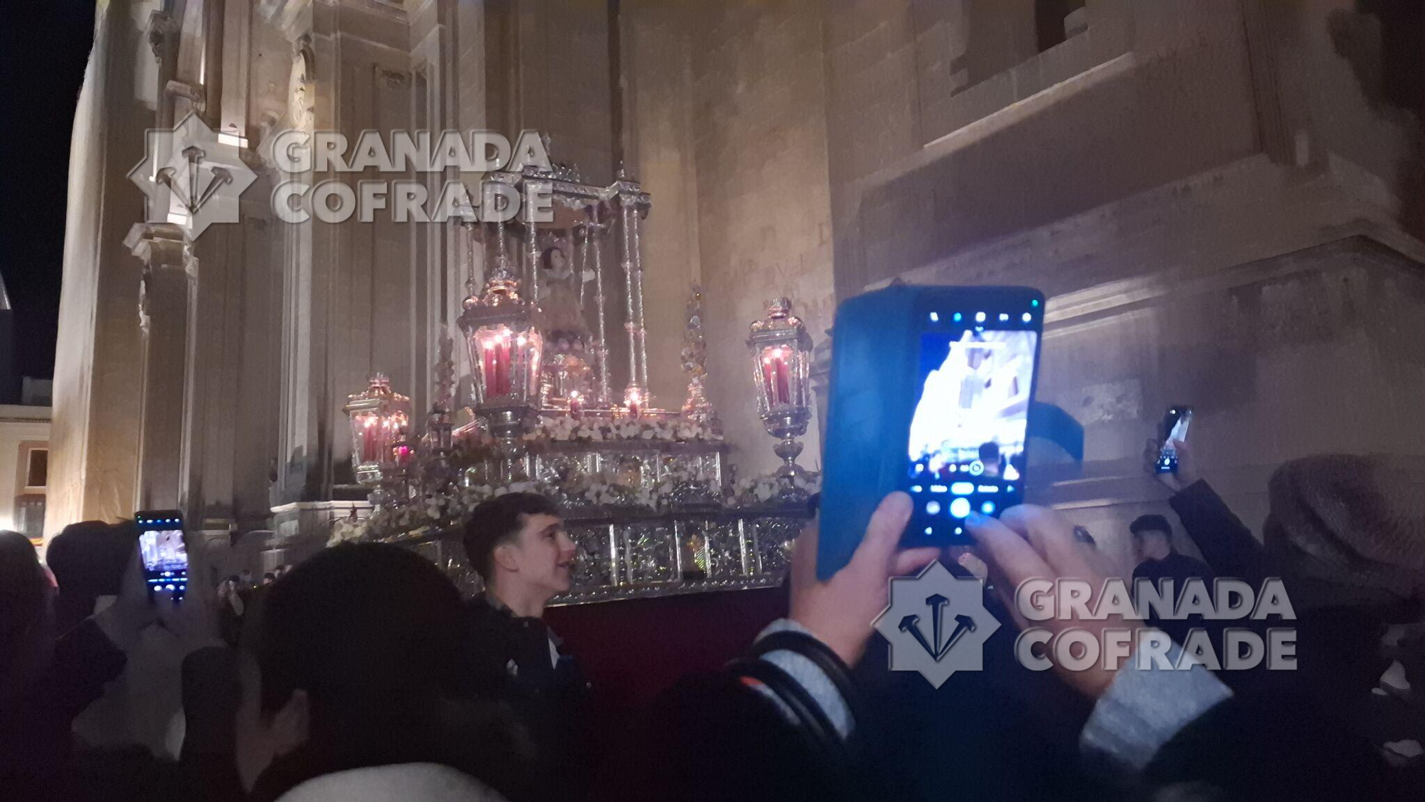 En el cortejo formaron parte varias hermandades de penitencia y gloria de Granada, como la de la Santa Cena Sacramental, la cofradía del Cristo de la Sagrada Lanzada, María Santísima de las Penas, Santo Cristo de San Agustín y Santa María de la Alhambra, además de la Sacramental de la Virgen de las Angustias y la hermandad de las Angustias y San Pascual Bailón, de Pinos Puente. De gloria estaba la cofradía de la Virgen de la Cabeza, con sede en la parroquia de la Magdalena. Al frente del paso estaba el capataz Ricardo Mora y su equipo de capataces y en la presidencia formaba el hermano mayor, Emilio Martos; el hermano mayor de la hermandad de las Angustias, Antonio González, junto con el canónigo de la Catedral, Moisés Fernández y el concejal Francis Almohalla, en representación municipal.