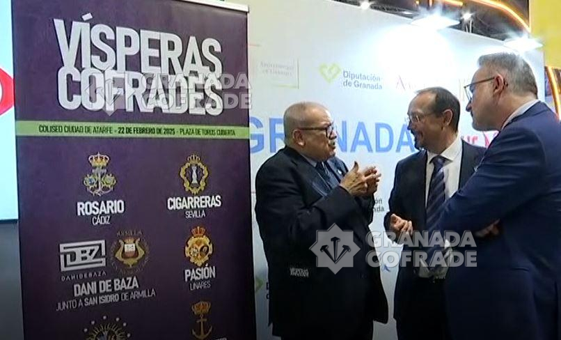 El diputado de Fondos Europeos, Desarrollo, Industria y Empleo, Antonio Díaz, presentó ayer en FITUR el proyecto ‘Vísperas Cofrades’, que convertirá a la ciudad de Atarfe en la capital de la música de Semana Santa el próximo 22 de febrero, a las 16:00 horas. Más de 1.000 músicos pertenecientes a nueve formaciones musicales, cinco de ellas de Granada y provincia y otras cuatro llegadas desde Sevilla, Linares, Málaga y Cádiz, harán posible este evento único por su formato, que se llevará a cabo en la Plaza de Toros atarfeña. Díaz ha destacado que “desde la Diputación de Granada, consideramos que un evento de este tipo moviliza un gran número de personas amantes de la música cofrade y debemos apoyarlo. Le daremos todo nuestro respaldo y es una de las acciones que presentamos como oferta cultural y turística en el marco de FITUR. El segmento de turismo religioso dejó el año pasado en Granada durante la Semana Santa alrededor de 45 millones de euros y la ocupación hotelera en esas fechas alcanzó el 95%, por lo que estamos hablando de una actividad muy importante”. El evento, que cuenta con la colaboración de la Diputación de Granada y su marca ‘Sabor Granada’, se desarrollará en un enorme escenario que acogerá a las distintas bandas, cuyas intervenciones estarán acompañadas por videos sobre la trayectoria de cada una de ellas.