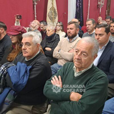 A lo largo de la velada se recordaron los diferentes recorridos de la hermandad, momentos que muchos de los presentes en la mesa y en el público vivieron en primera persona, como la subida a San Nicolás con las primeras luces del alba, o estampas difícilmente repetibles hoy en día, como el paso del Crucificado de la Misericordia por la Calderería Nueva.