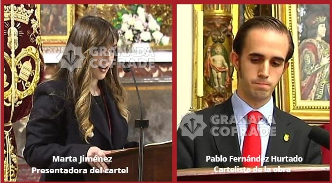 Del mismo modo, la Junta de Gobierno de la Hermandad determinó designar presentadora de dicho cartel a la hermana de la Cofradía Marta Alejandra Jiménez Jiménez; quien actualmente desempeña las funciones de Vocal de Cultos, Protocolo y Relación con los Medios (desde 2021), y con anterioridad las de Vocal de Caridad (2016-2021), perteneciendo además a su cuerpo de fiscales. Enfermera de profesión, desarrolla su labor actualmente en el H. U. Virgen de las Nieves de Granada. Es hermana además de las Cofradías de Ntro. Padre Jesús del Rescate y Ntra. Sra. del Rosario.