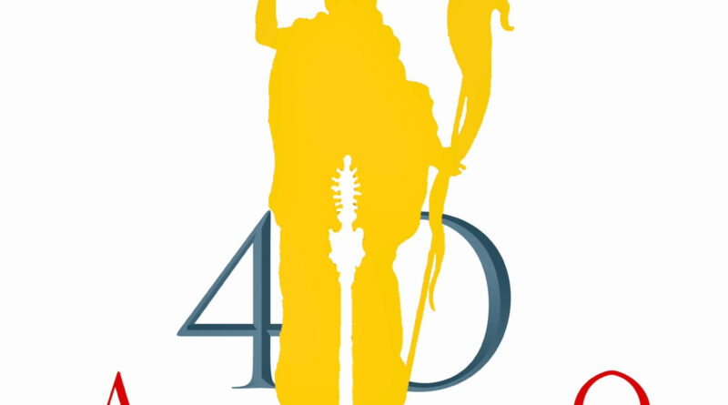 Bajo el monumento, queda recogida la tipografía o lema “aniversario” cuyas primera y última letra se transforman en el Alfa y omega (en griego: Α- Ω o ω)que son la primera y la última letra del alfabeto griego, tradicionalmente se utiliza como frase de principio y fin. En el libro del Apocalipsis se encuentra esta combinación para referirse a Jesucristo y por ende a Dios como comienzo y final de todo lo creado. Bajo esta palabra se inserta la advocación de los Titulares, y como telón de fondo el número 40, que son los años a conmemorar de esta efeméride.