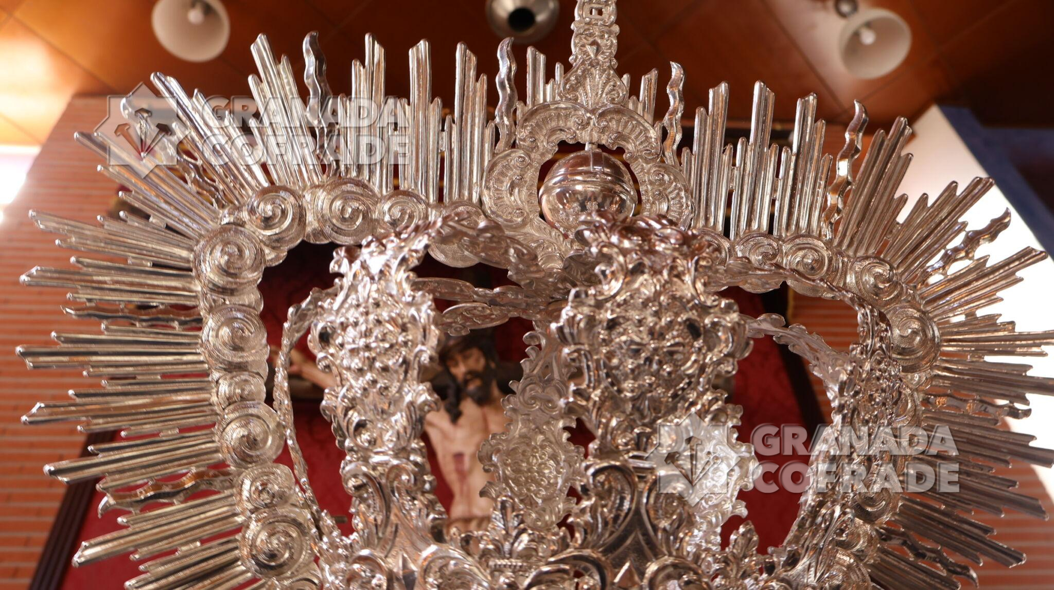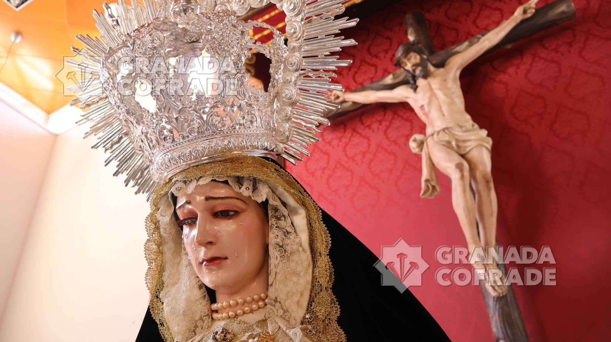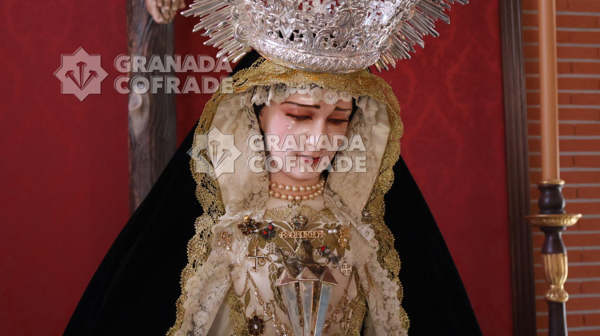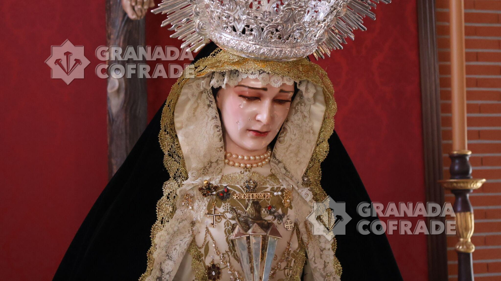La imagen de la Virgen, obra de Angel Asenjo, presidía el altar de besamanos a los pies del Cristo de la Paz y flanqueada por dos candelabros de cera y vestida con saya donada que fue bendecida junto a otras piezas y tejidos fruto de la devoción que va asesorando esta imagen mariana y granadina.
