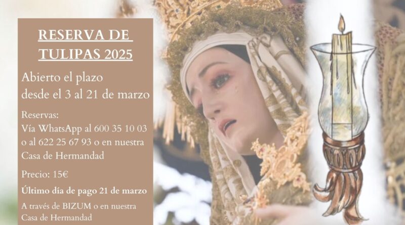 A través de los teléfonos 600 35 10 03 o en el 622 25 67 93 o en la casa de hermandad de la calle Venezuela, 35. El precio es de 15 euros y el último día de pago es el 21 de marzo.
