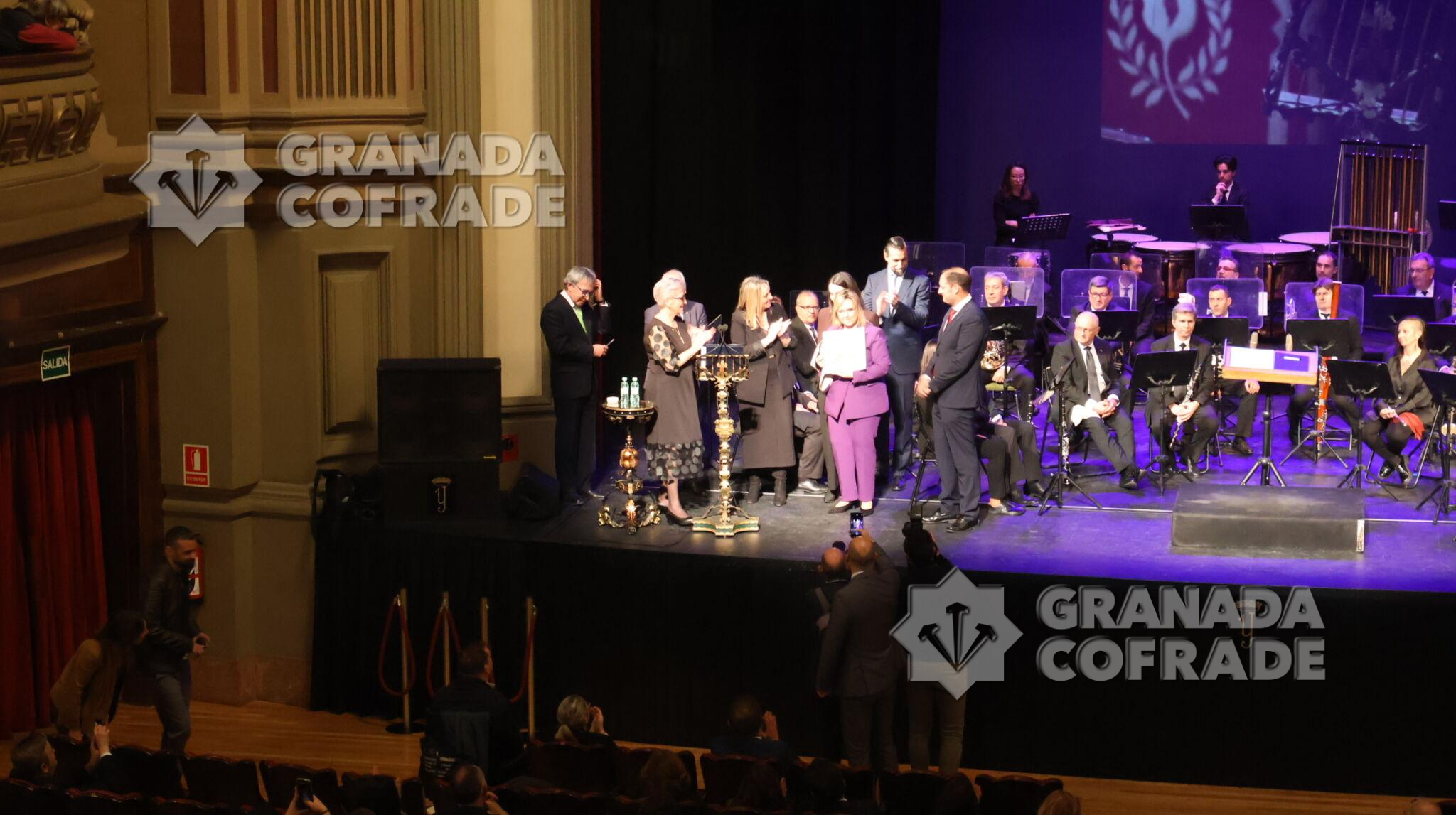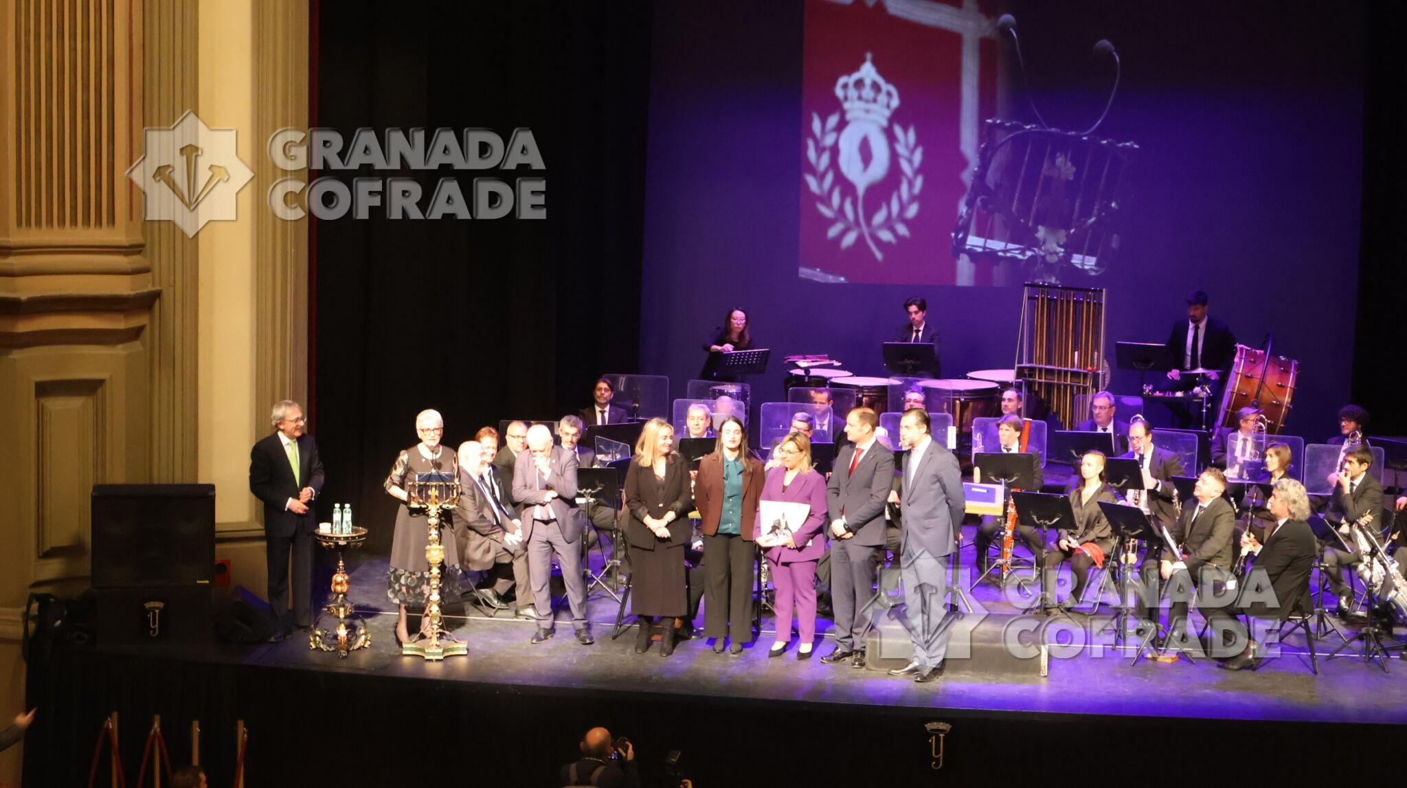 A continuación se desarrolló el concierto de homenaje en el que se interpretaron las marchas «Passio Granatensis», de López Carreño, director de la Municipal de Granada que ofreció un extraordinario concierto que resultó muy aplaudido.o “Triana”, “Pasan los Campanilleros” o “Gran Poder” tienen un significado especial en la vida de la pregonera y finalizó el concierto con «Madrugá» de Abel Moreno.
