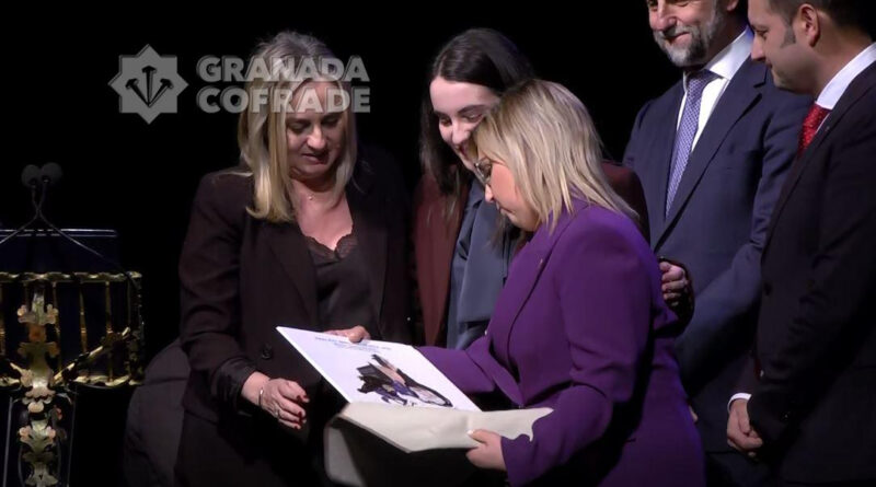 La música como homenaje a la pregonera de la Semana Santa de este año. Así resultó el concierto ofrecido ayer en el Municipal Isabel la Católica de nuestra ciudad a Mamen Sánchez quien subirá a esas mismas tablas para ofrecer su pieza literaria a la ciudad. El motivo de esta previa del pregón fue la entrega de las tapas a la pregonera en una ceremonia tradicional que respaldan desde hace unos años los pregoneros de la Semana Santa reunidos en la tertulia «El Atril». Pepe Espinel, pregonero del pasado año, impuso la insignia de plata a la pregonera y él mismo fue el encargado de llevar las cubiertas hasta las manos de la pregonera y de la alcaldesa Marifrán Carazo para que la regidora fuese quien las entregase de manera oficial. Estaba junto a ambas, la diseñadora Elena Fernández Santomé , quien las ha realizado con imprimación y diseño digital reproduciendo al Señor del Gran Poder y a Nuestra Señora de la Esperanza con la torre de San Gil y Santa Ana como vigía.