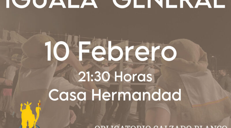 Los costaleros de la Hermandad Sacramental del Arcángel San Miguel y Nazarenos de Nuestro Señor de la Resurrección y Santa Maria del Triunfo están convocados a la «igualá» general, que se llevará a cabo el próximo Lunes 10 de Febrero. La cita es a las  21:30h en la Casa de Hermandad, situada en los bajos de la parroquia de San Miguel Arcángel. Deberán asistir con las zapatillas blancas de salida y están invitados todos aquellos aspirantes que deseen formar parte de nuestras cuadrillas de Costaleros.