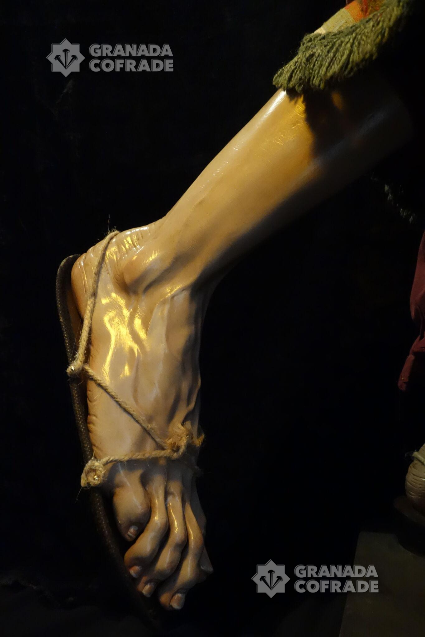 Es la imagen de San Bartolomé, talla que se nos muestra reclinada y apoyada sobre San Simón. Está realizada en madera de cedro y pino, policromada al óleo con ojos de cristal soplados artesanalmente y policromados por su cara interna como se hacía en el siglo XVII y XVIII. Se presenta con el pie derecho completamente suspendido en el aire y será ya en el paso procesional cuando mejor se aprecie este recurso que pretende invadir el espacio del espectador, siendo éste un recurso plenamente barroco.