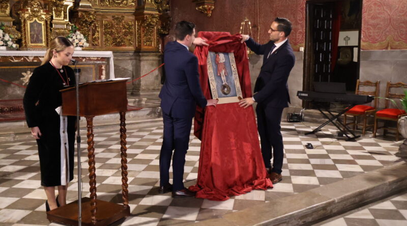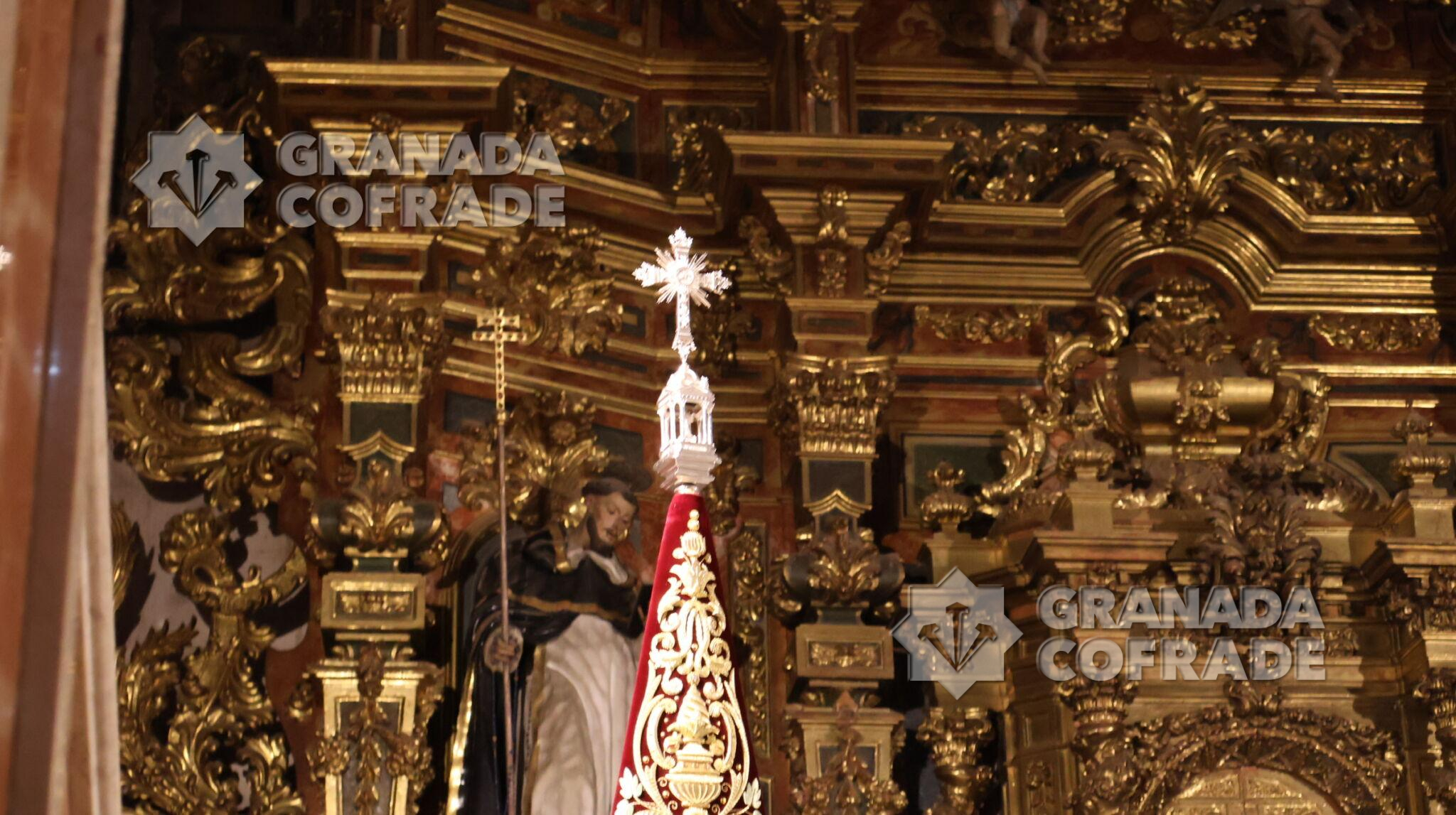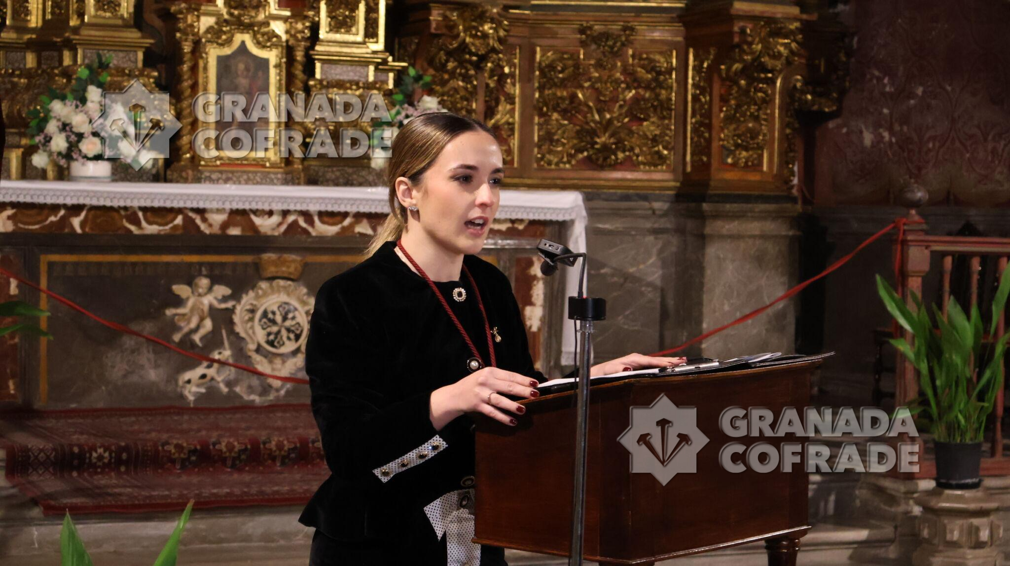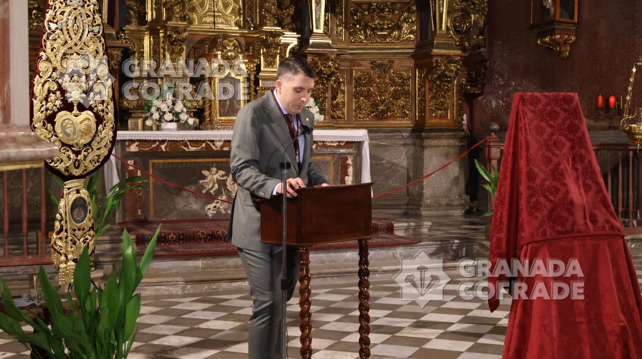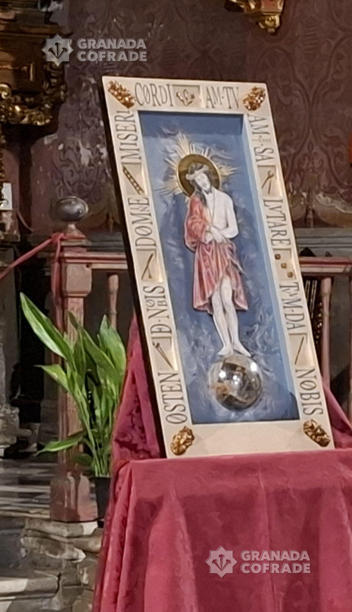 Lleno en la capilla de la iglesia conventual de la comunidad de religiosas de Santa Catalina de Siena para ver el cartel, «una creación artística que lejos de ser una simple obra pictórica cobra vida en la tridimensionalidad en un humilde homenaje a la escultura del gran imaginero José de Mora», como indicó la presentadora. Habló de «quien dio vida al Señor de la Sentencia y es por ello por lo que se rematan en las esquinas con los mascarones pétreos que custodian el carmen albaicinero, donde al volver a Granada habitó el escultor» recordó la presentadora. En un toto sereno y reflexivo Marta Alejandra Jiménez transcribió el el salmo 84 en latín que significa «Muéstranos Señor tu Misericordia y danos tu Salvación». «He aquí el que quita los pecados del mundo, así nos muestra Pablo Fernández Hurtado al Señor de la Sentencia en un relicario de compleja sencillez donde la tradición de los óleos, pigmentos, lápices pastel, arcilla y madera se funden con la modernidad de un papel impreso o un acetato de polivinilo a modo de orbe mundial sobre el que se refleja la figura del Señor de la Sentencia. Marta Alejandra Jiménez refirió del cartel que recoge «un mundo conformado tanto por escenas del arte clásico en el que se representan las capacidades humanas así como por noticias actuales que nos hacen reflexionar en si a pesar del paso de los siglos la humanidad sigue inmersa en los mismos pecados primitivos» indicó la presentadora de esta original obra de arte. Estaba el hermano mayor de la corporación y presidente de la Federación de Cofradías, Armando Ortiz, y miembros de su junta de gobierno, acompañados por los directores espirituales de la cofradía, los párrocos Manuel García Gálvez y José Gabriel Martín.
