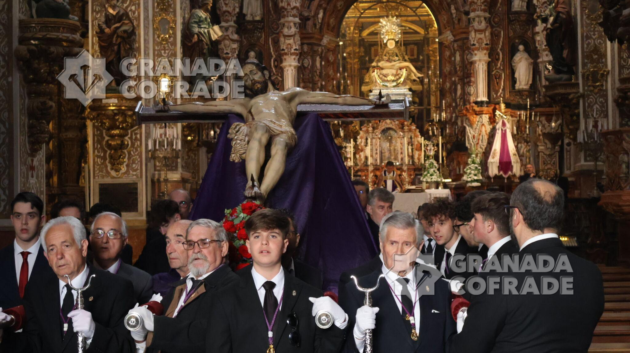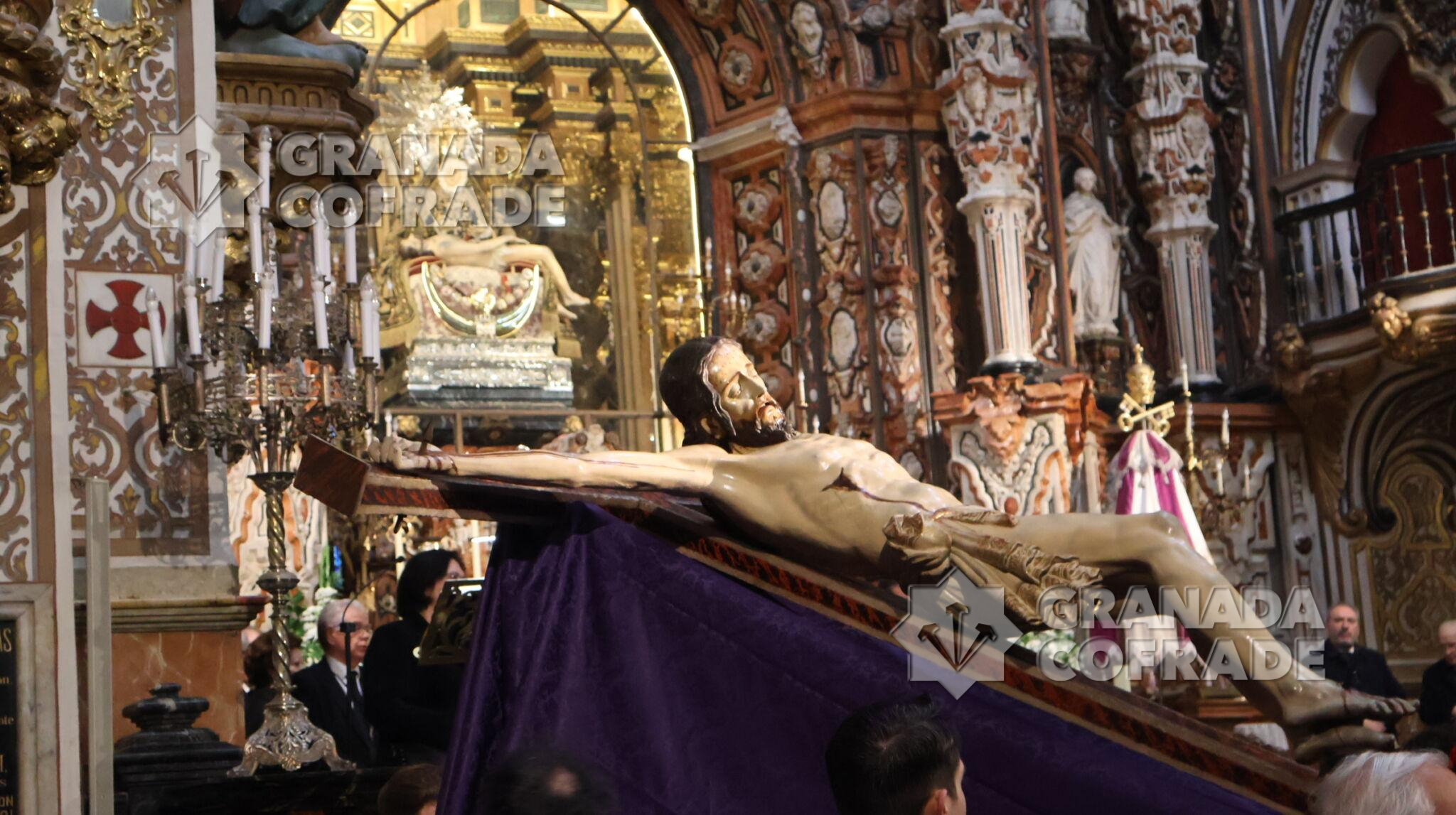 Conforme iba avanzando la comitiva más fieles y granadinos acompañaron al Crucificado de Pablo de Rojas uniéndose al rezo de las estaciones de esta acto penitencial.
