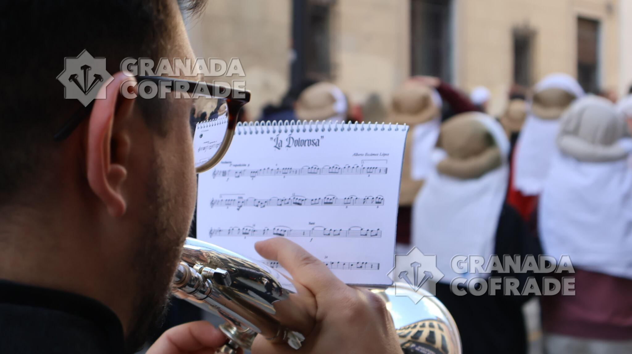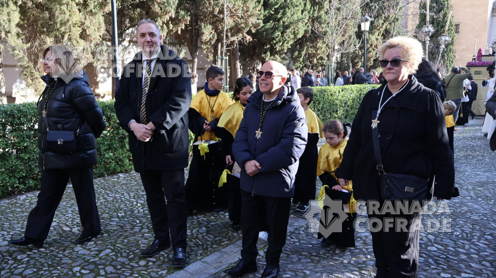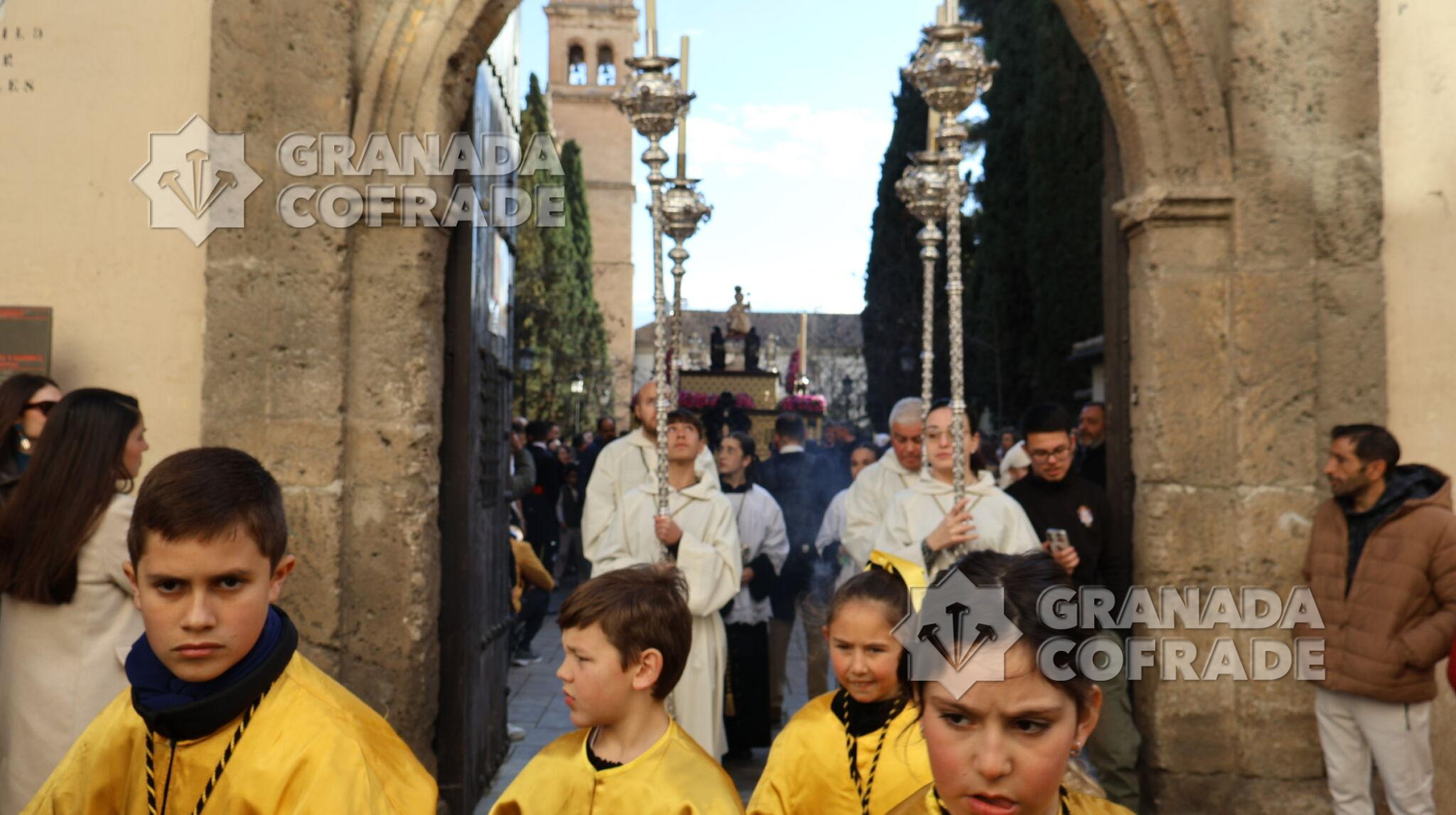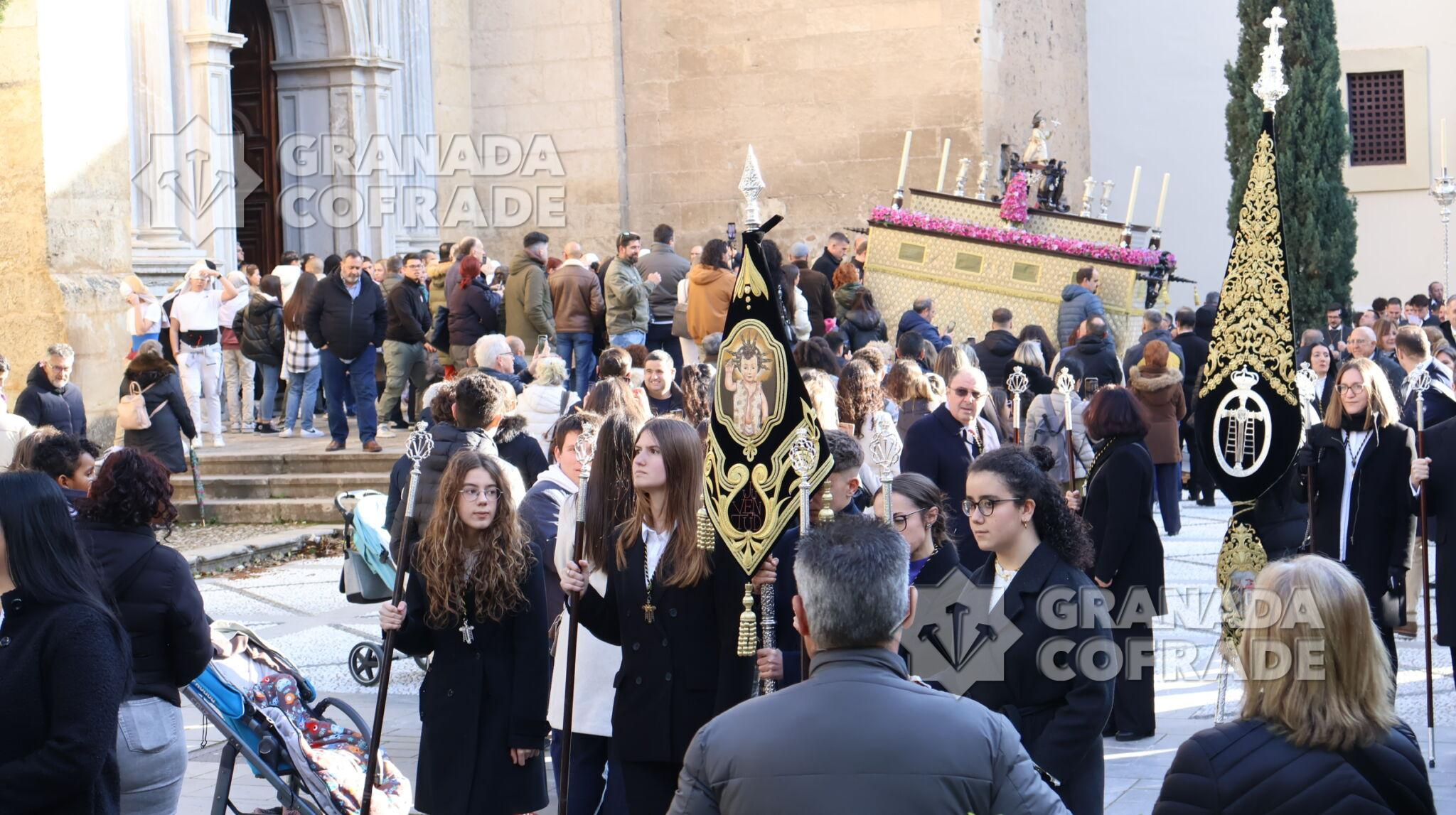 La imagen del Divino Redentor del monasterio de San Jerónimo, cedido a la hermandad de Nuestra Señora de la Soledad y Descendimiento del Señor por la comunidad de religiosas que regentan el referido templo contemplativo, presidió ayer tarde la procesión juvenil de esta corporación nazarena por las calles del centro de Granada. Partió desde el monasterio renacentista con un cortejo integrado por hermanos veteranos de la hermandad y miembros de la junta de gobierno. Ciriales precediendo el paso procesional realizado para esta salida de los costaleros que son cantera del futuro para esta cofradía.